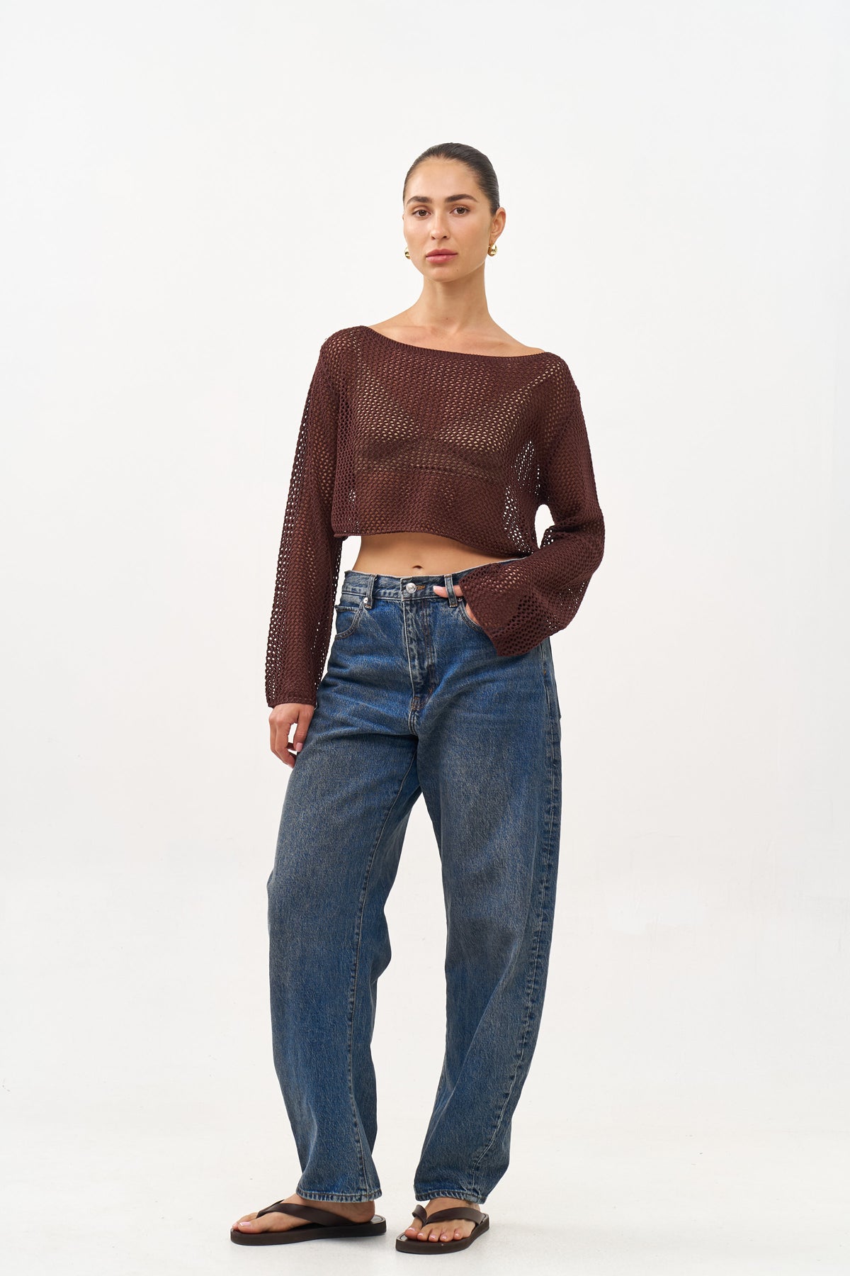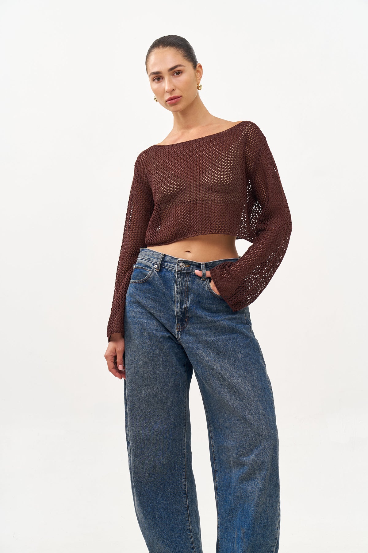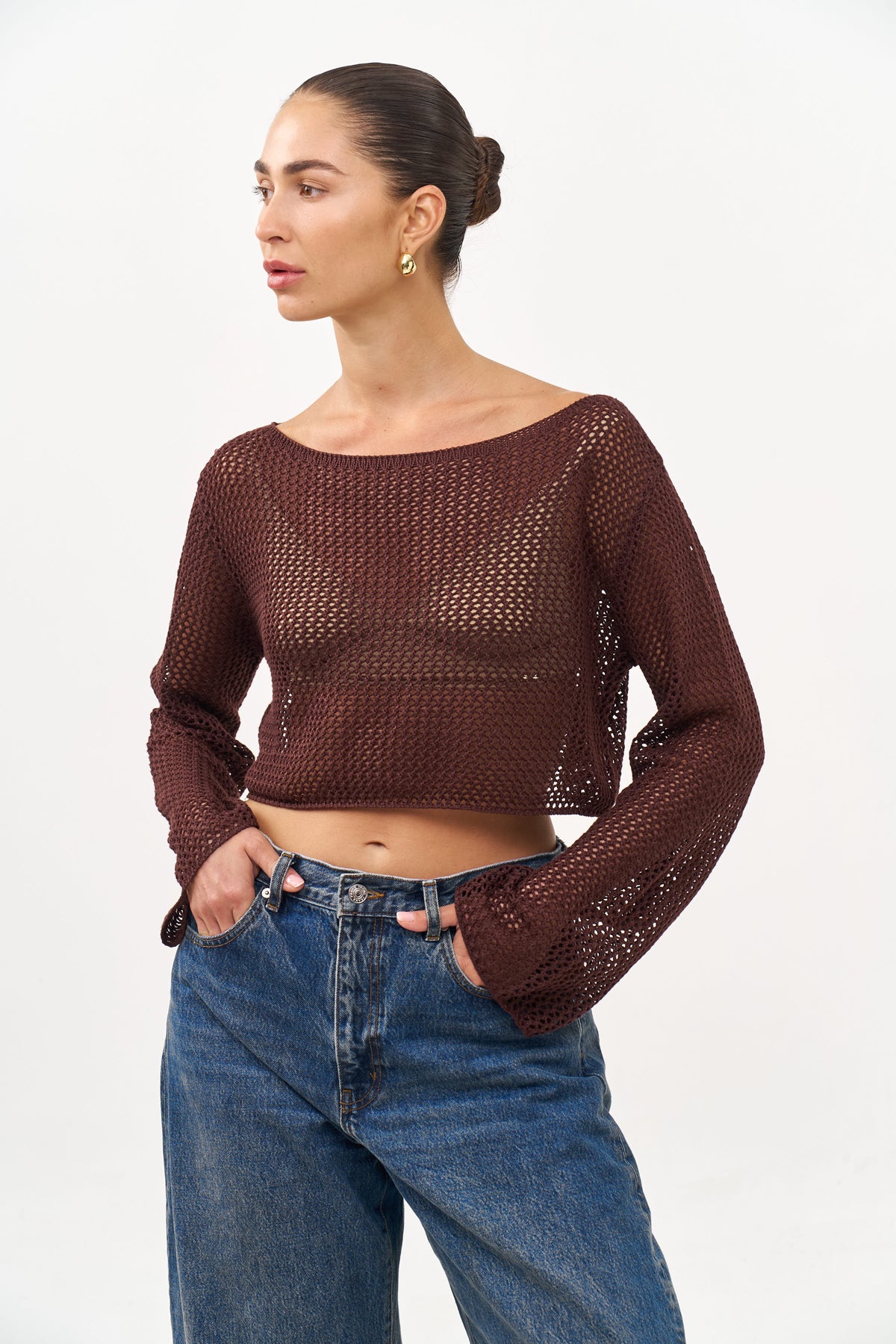 קרופ טופ מבד קרושה עם שרוולים ארוכים.