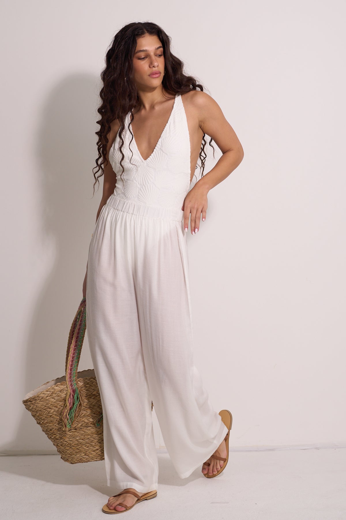 מכנסי חוף בגזרה רחבה עם גומי במותן