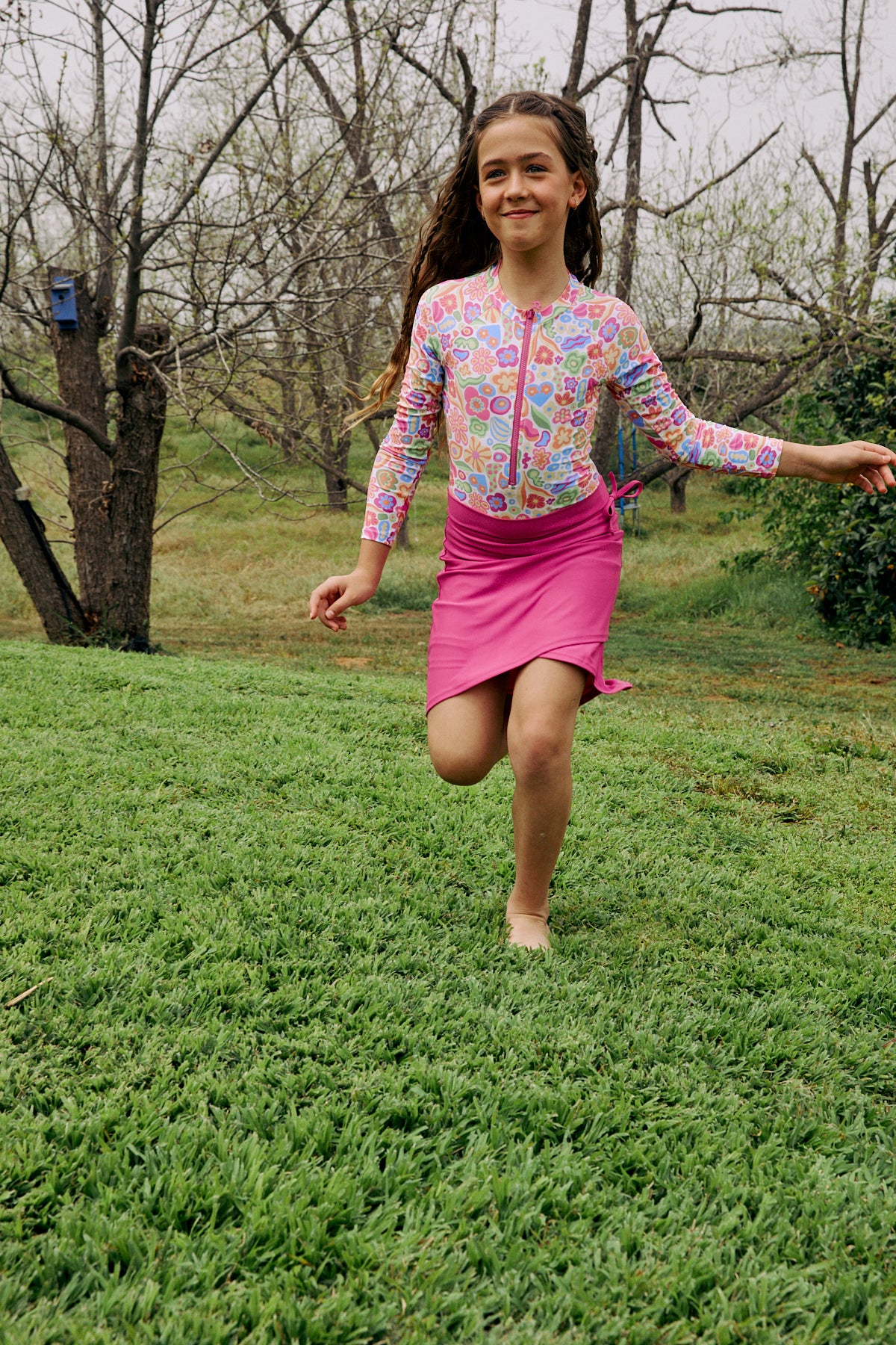 בגד ים שלם לילדות שרוול ארוך פרחוני