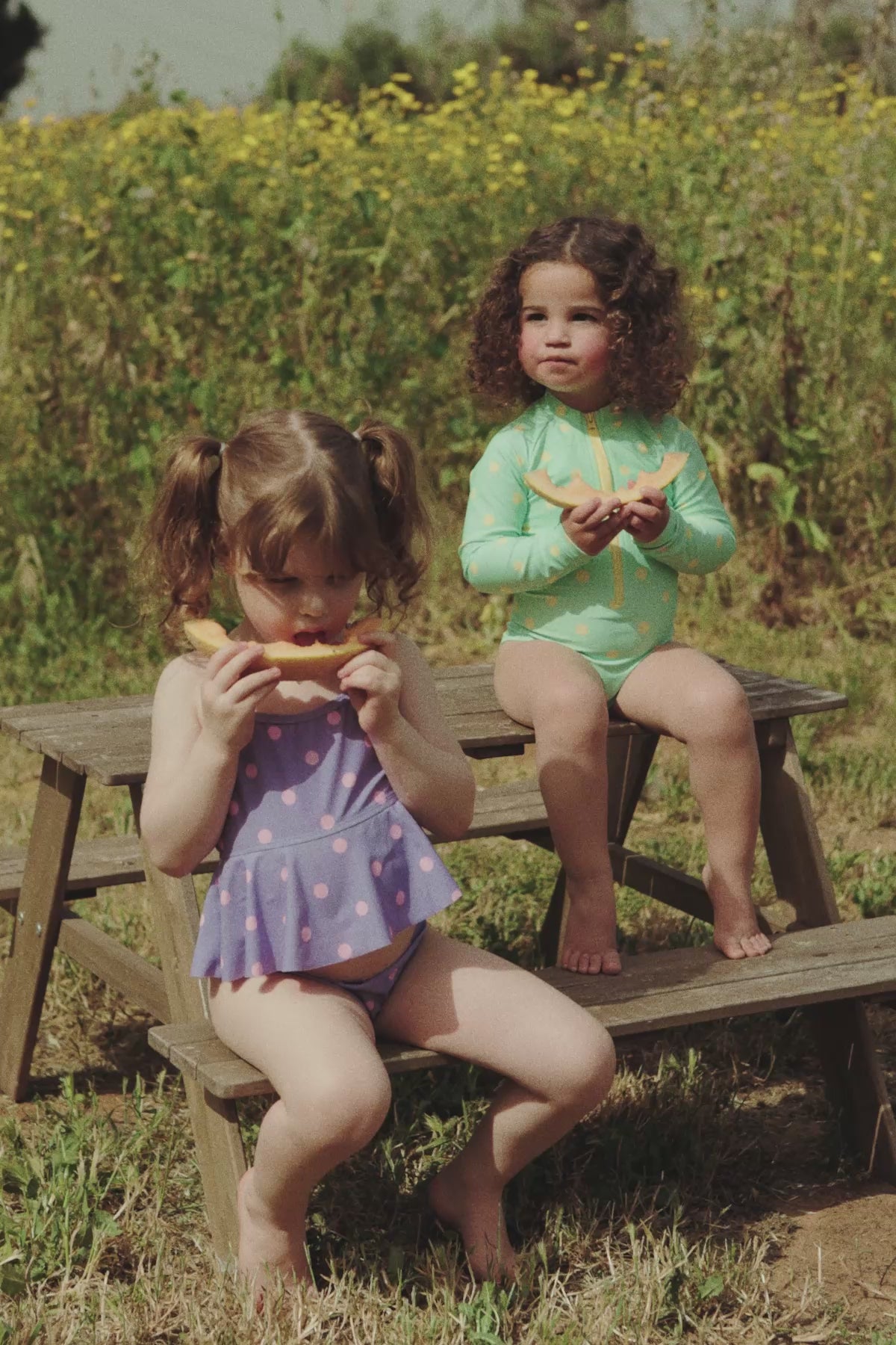 סט ביקיני לילדות הכולל שני חלקים בהדפס נקודות.