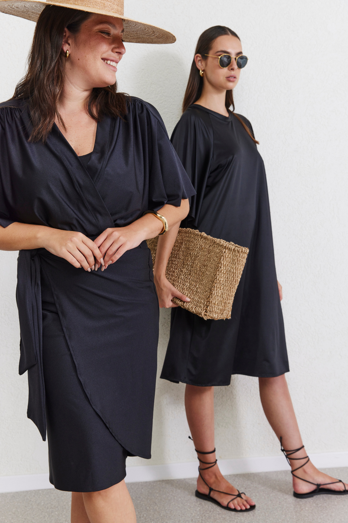 בגד ים צנוע שלם מעטפת שחור מבריק
