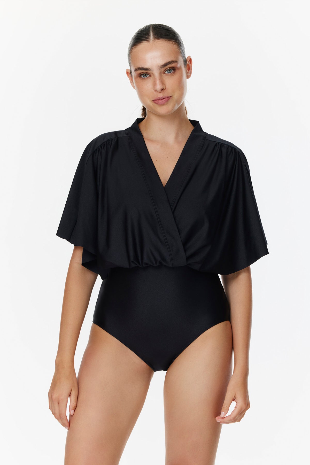בגד ים שלם בגזרת מעטפת עם שרוולים קצרים נופלים