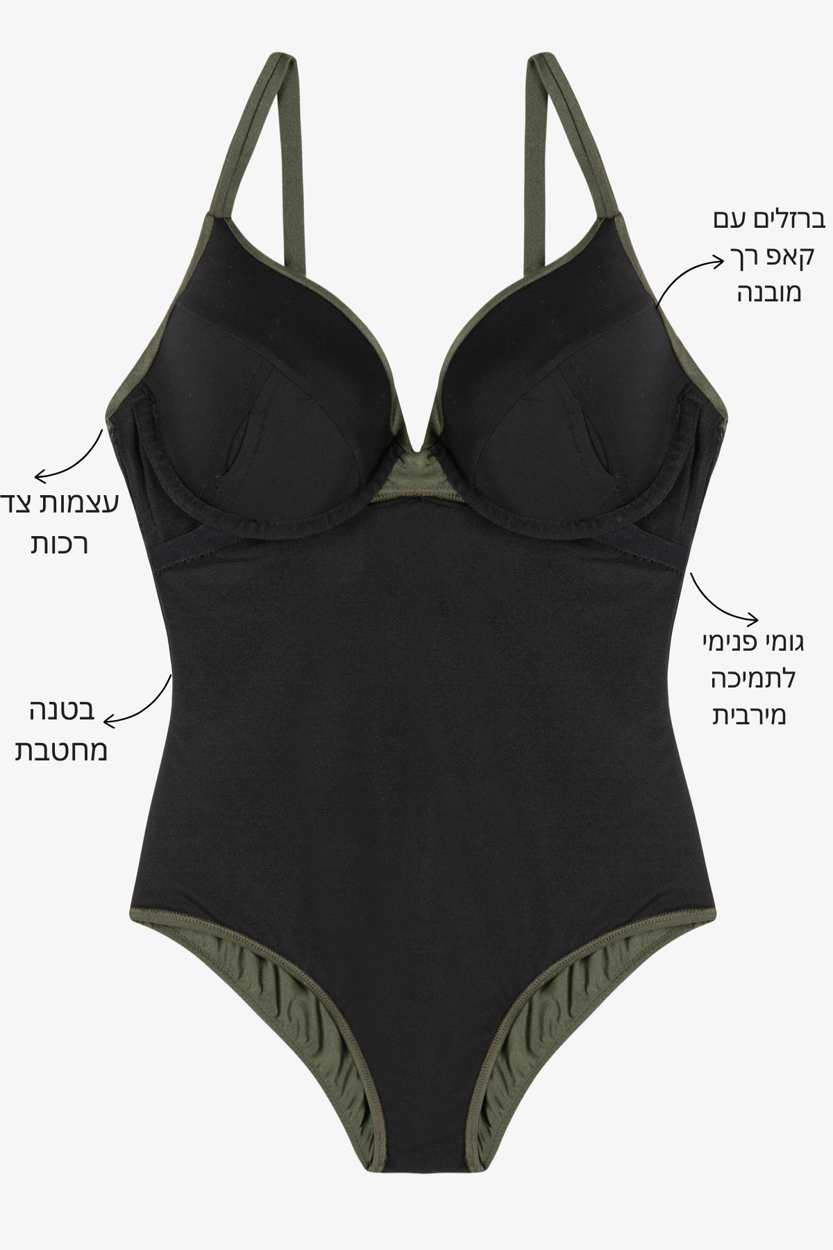 בגד ים שלם בצבע חאקי עם מחשוף וי