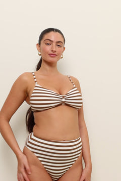 טופ ביקיני עם טקסטורת פסים סרוגה מובנית בבד ועיטור קשירה