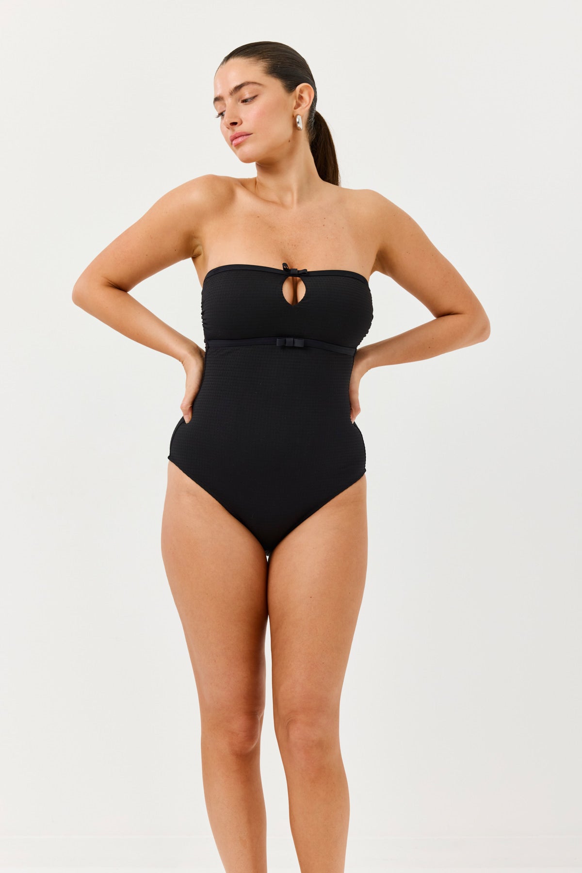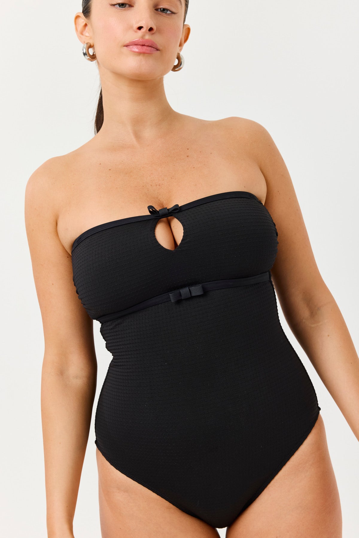 בגד ים שלם עם טקסטורה מנוקדת מבד ממוחזר איכותי