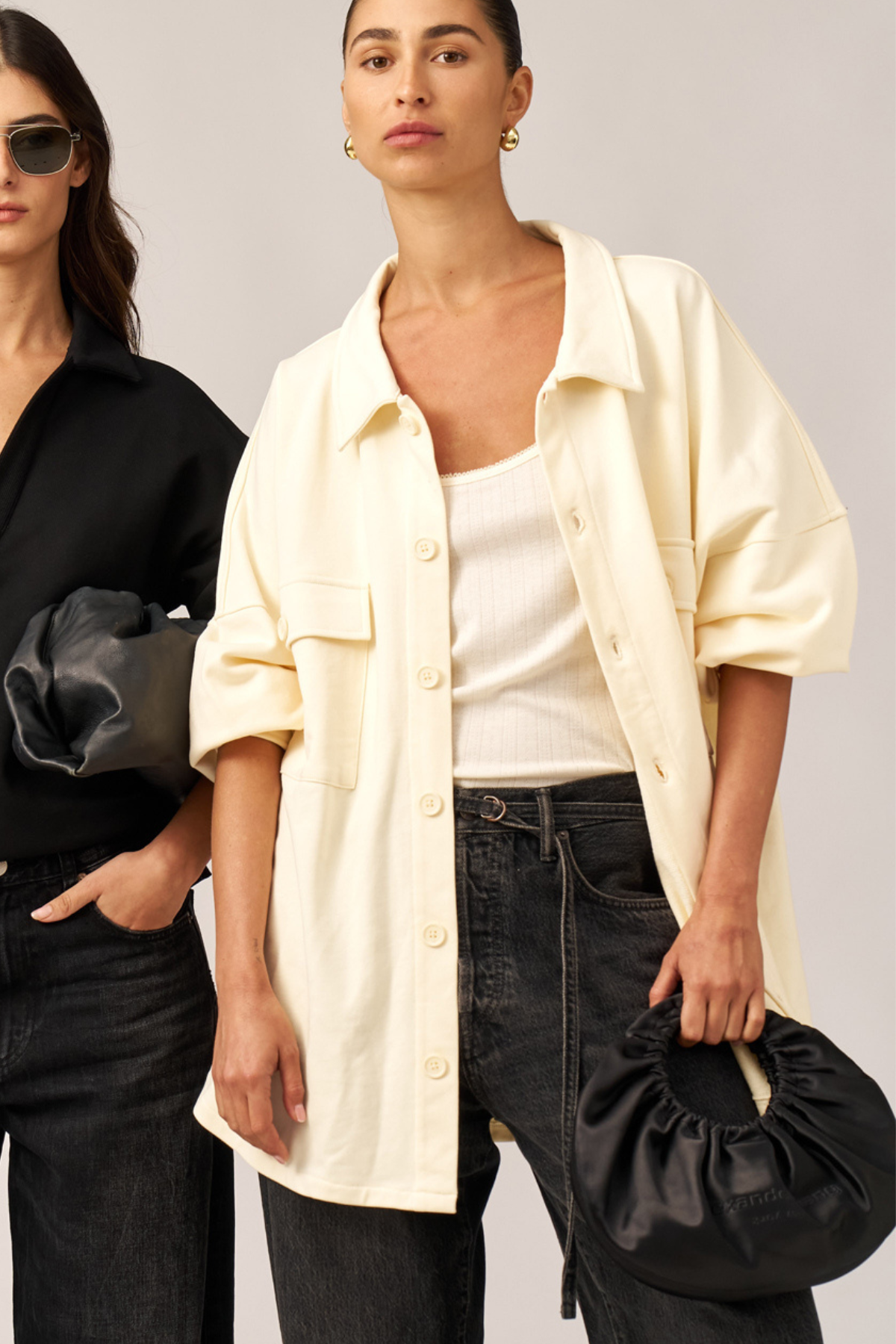 ג׳קט פרנץ' טרי בגזרת אוברסייז, עם סגירת כפתורים וכיסים גדולים בחזית