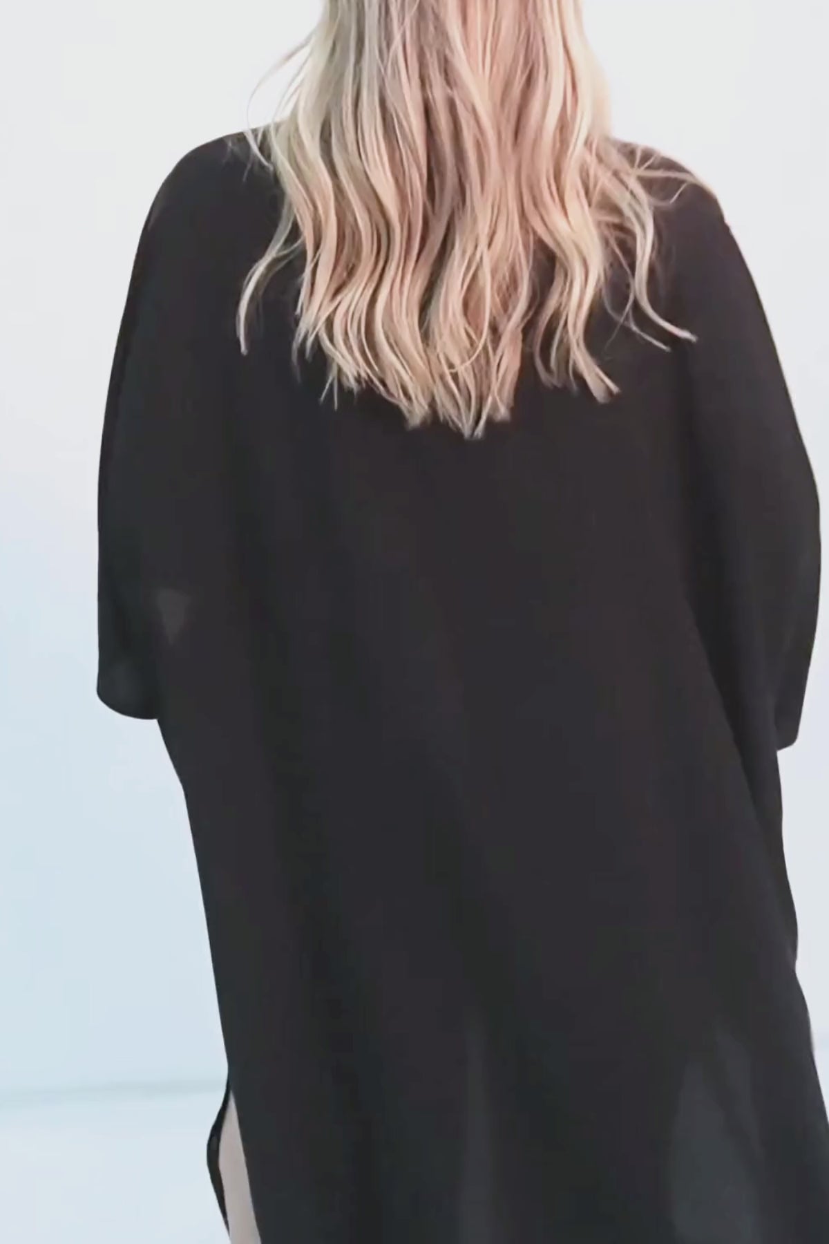 קימונו פתוח בשילוב רקמה וחגורת קשירה מבד תואם