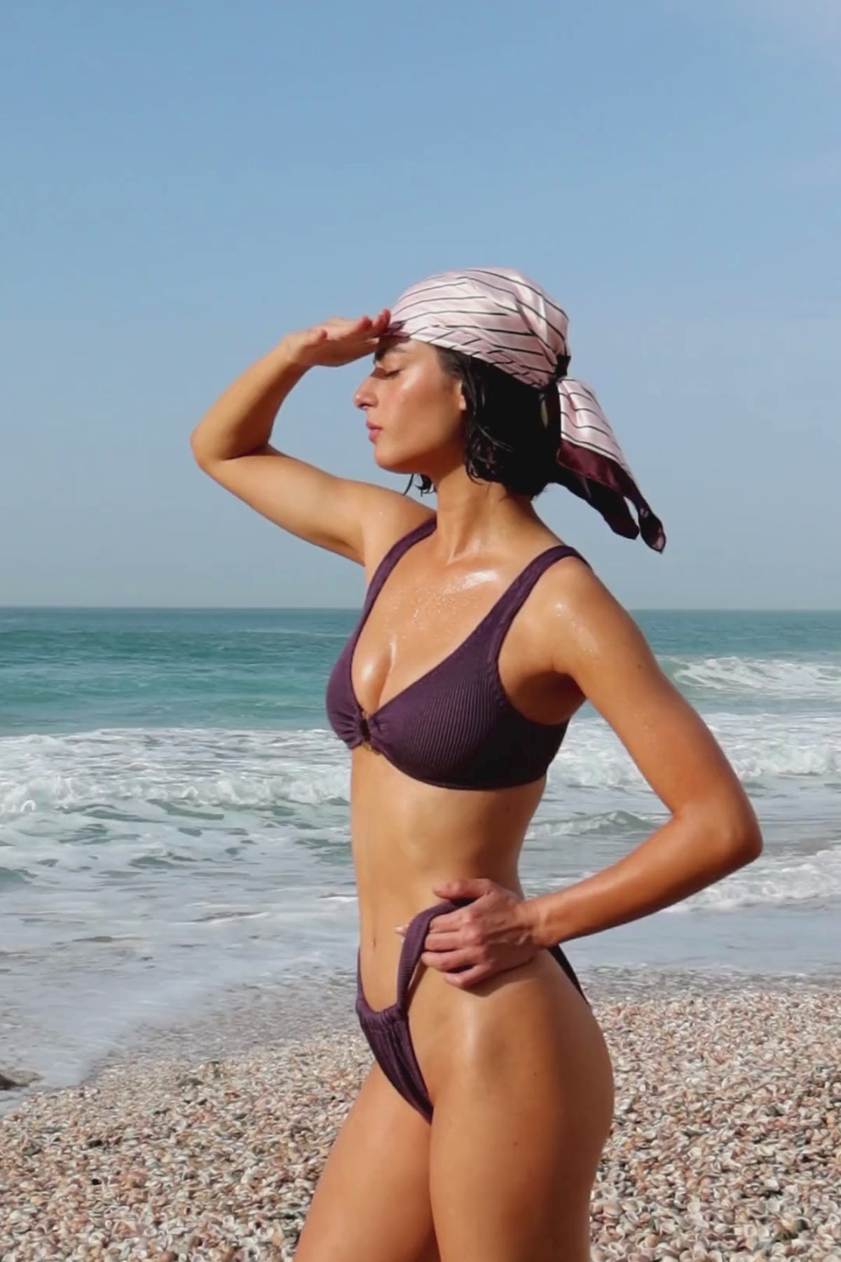 תחתון ביקיני בגזרה גבוהה מבד טקסטורה גומי נמתח, סימלס, ללא תפרים.