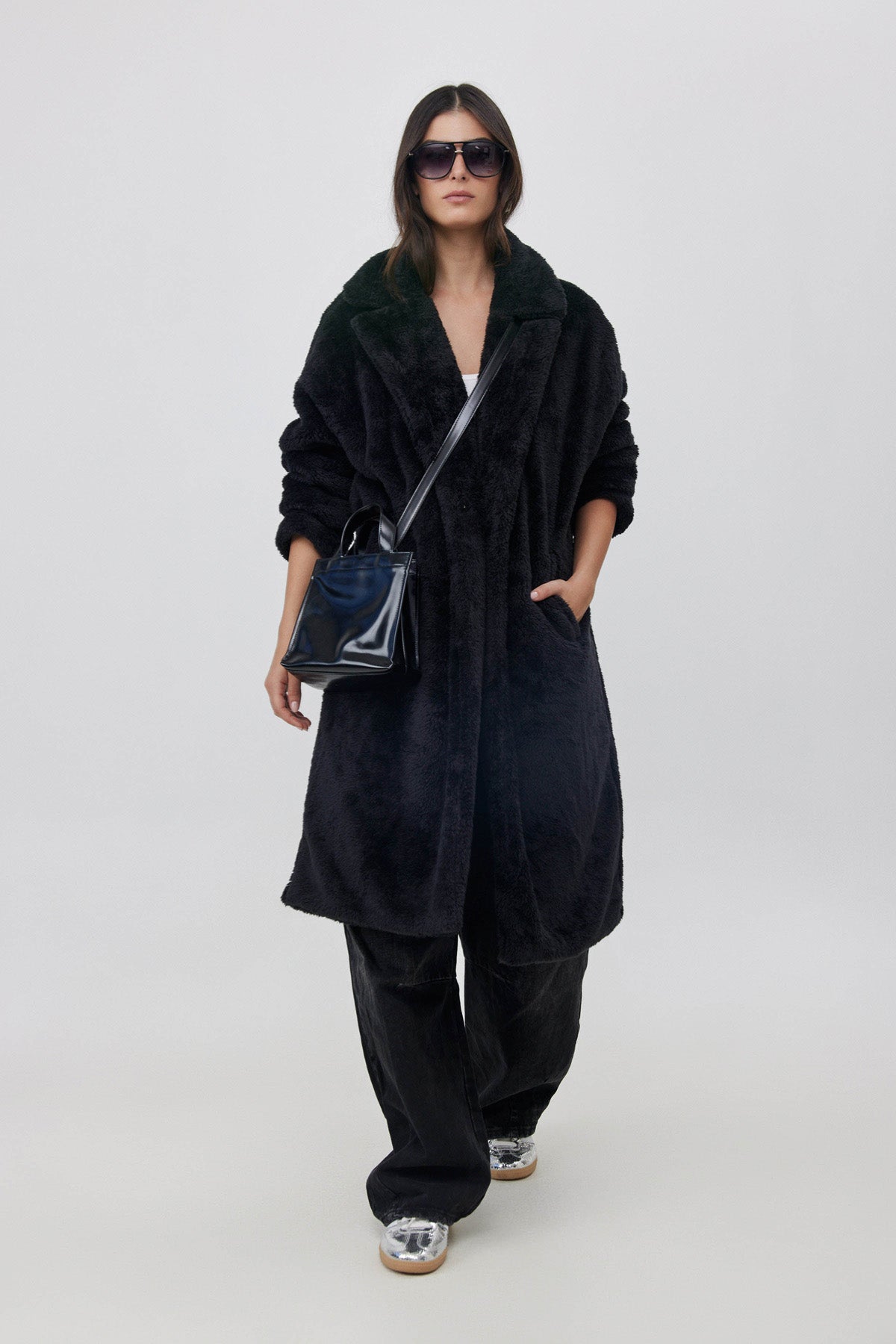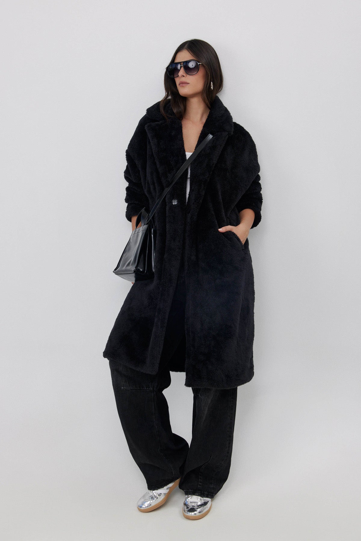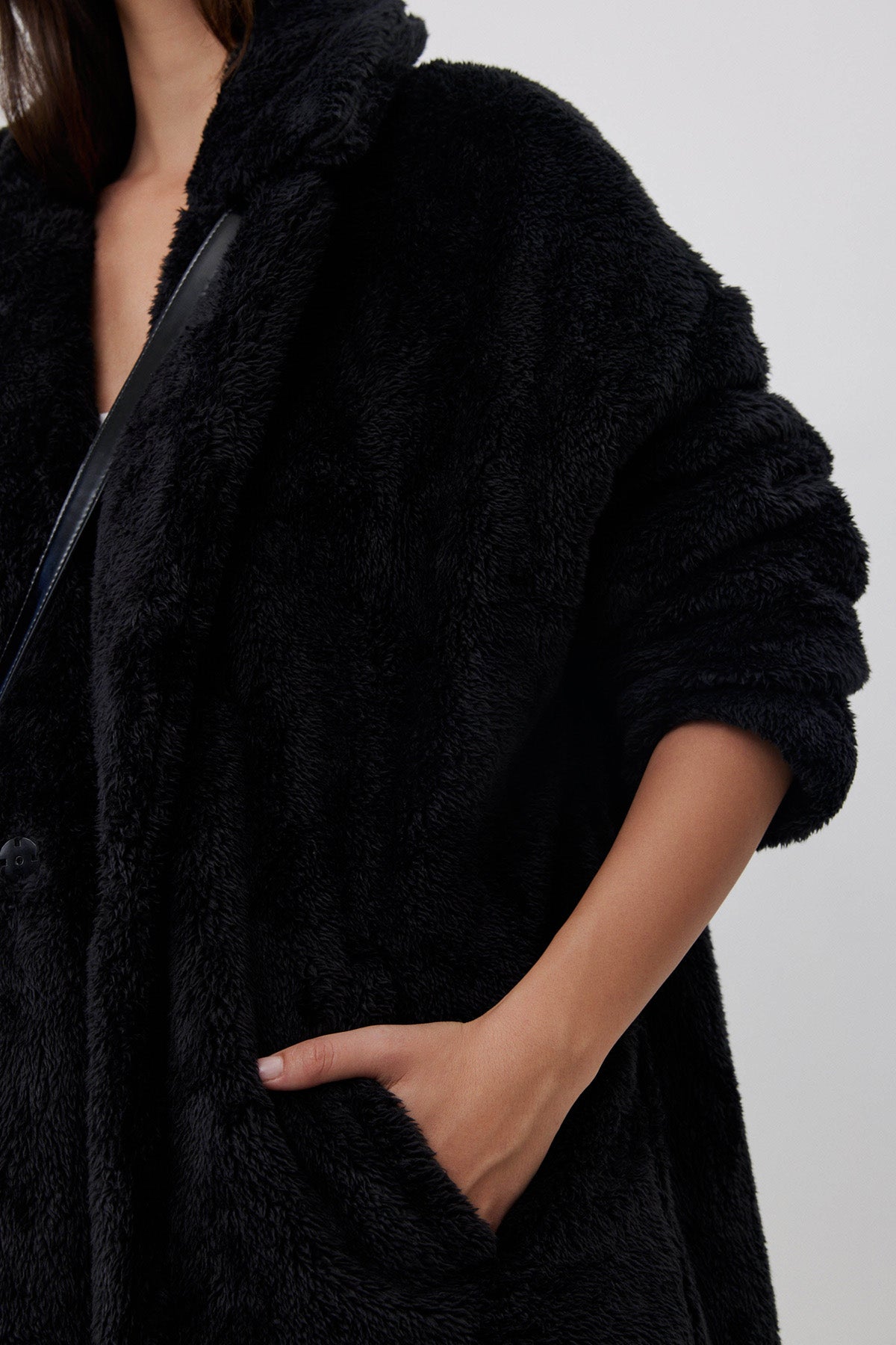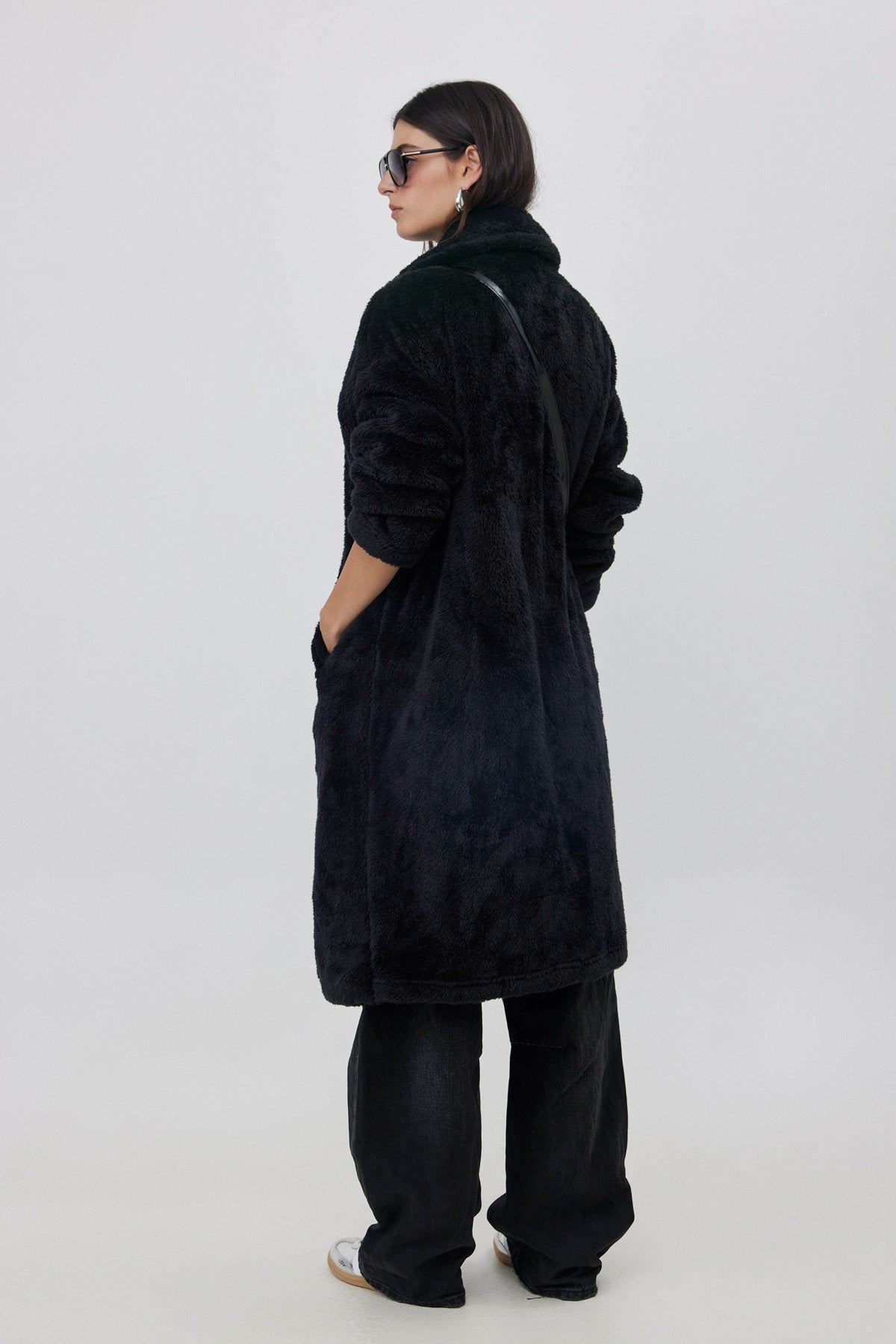מעיל פליז ארוך שחור