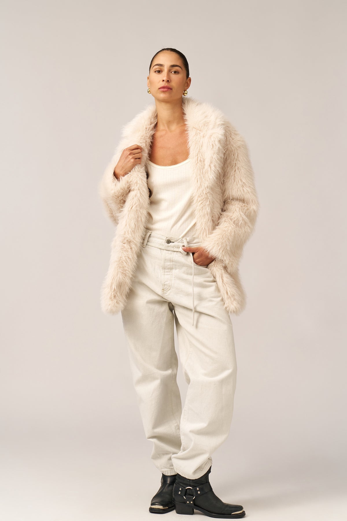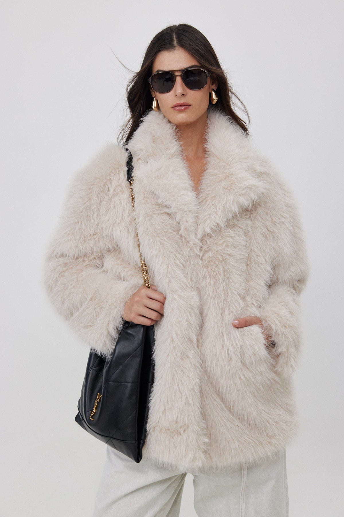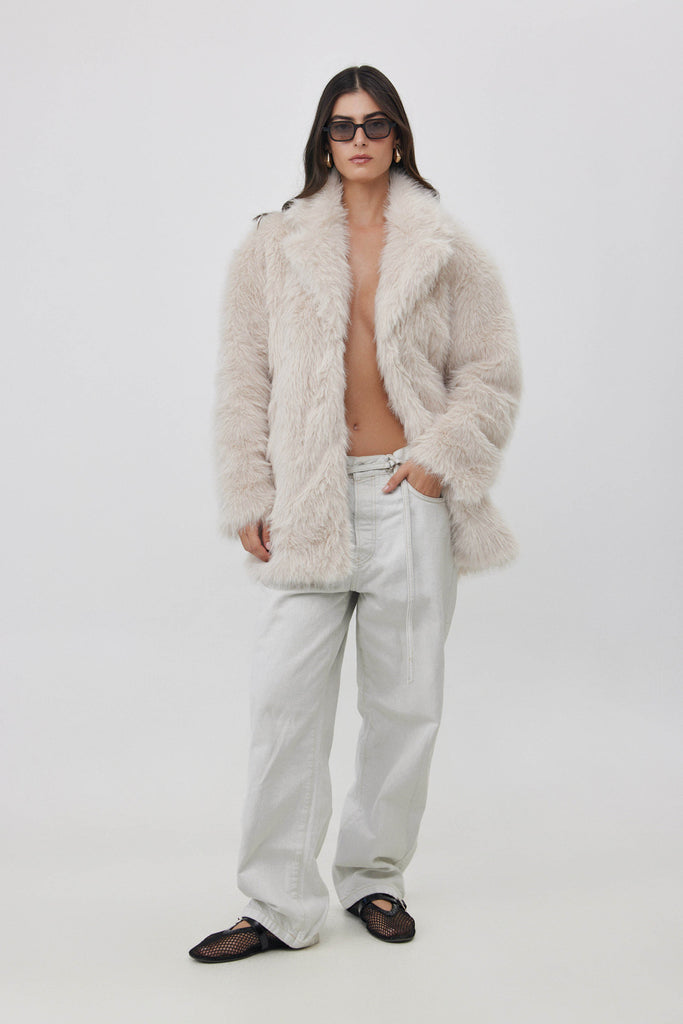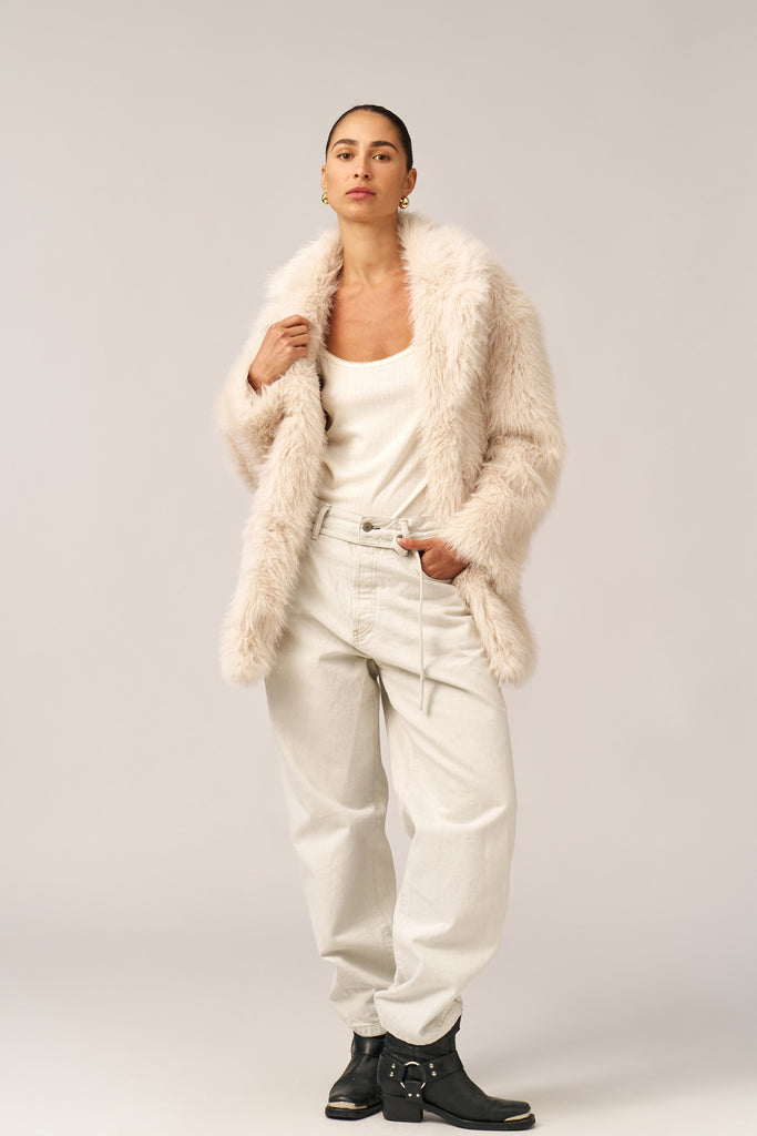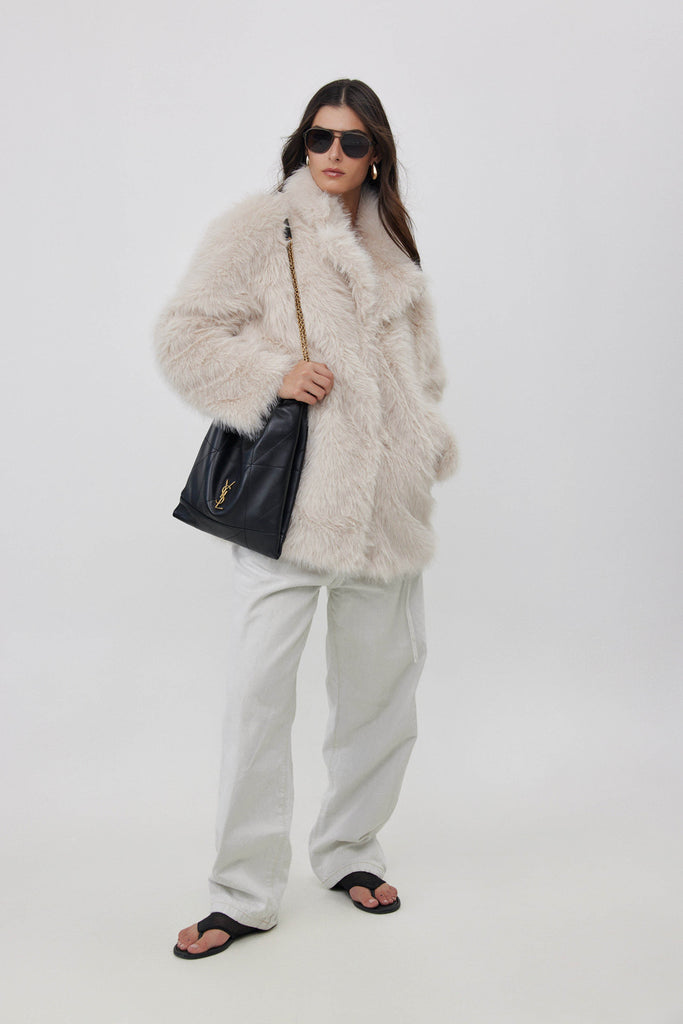 מעיל דמוי פרווה שמנת