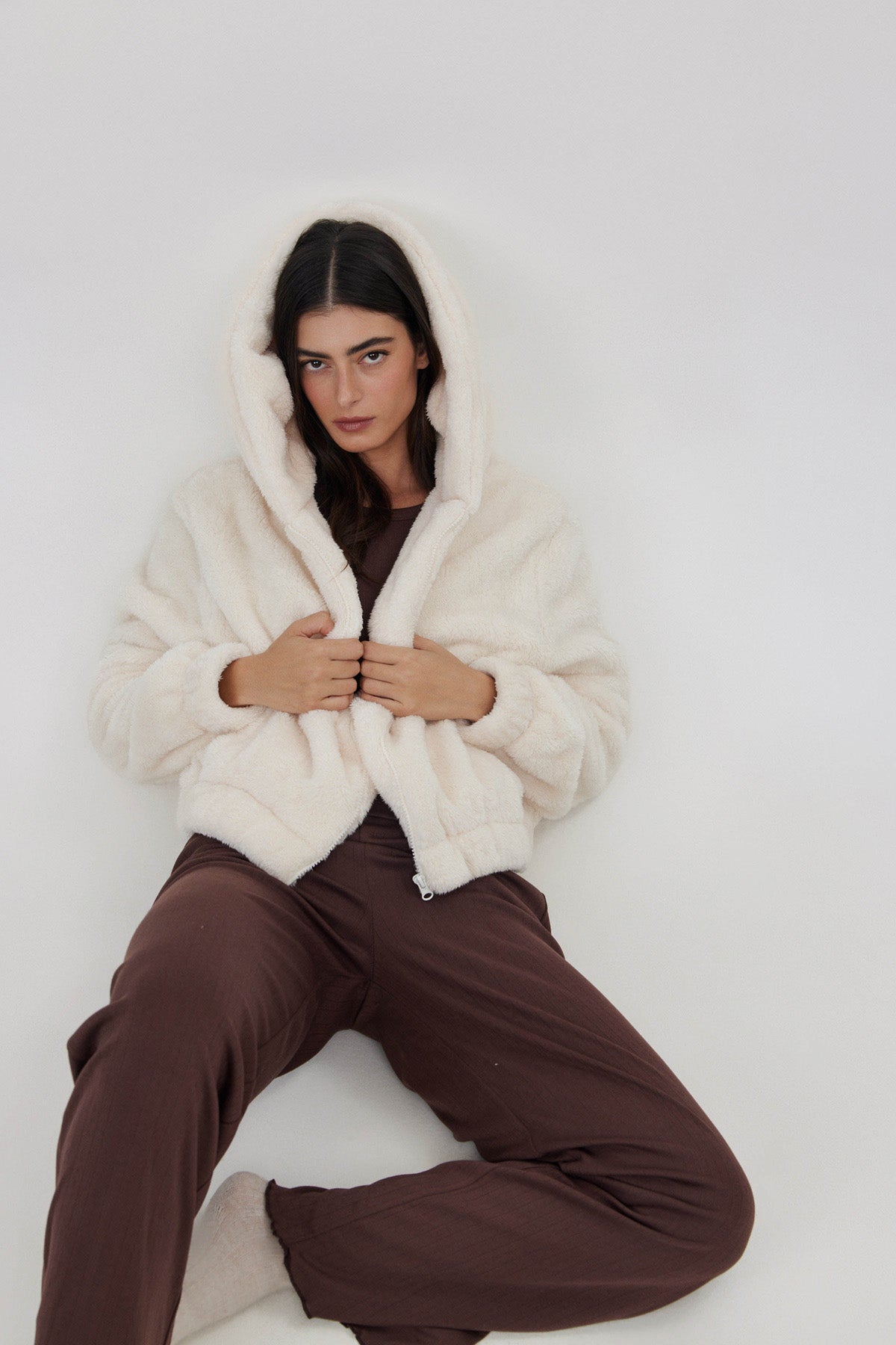ג'קט פלאפי מפנק מבד נעים ומחמם במיוחד עם כובע.