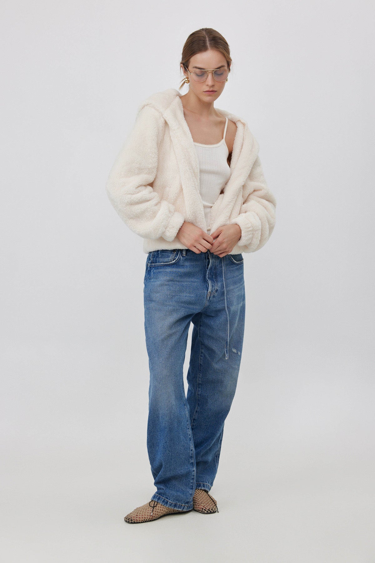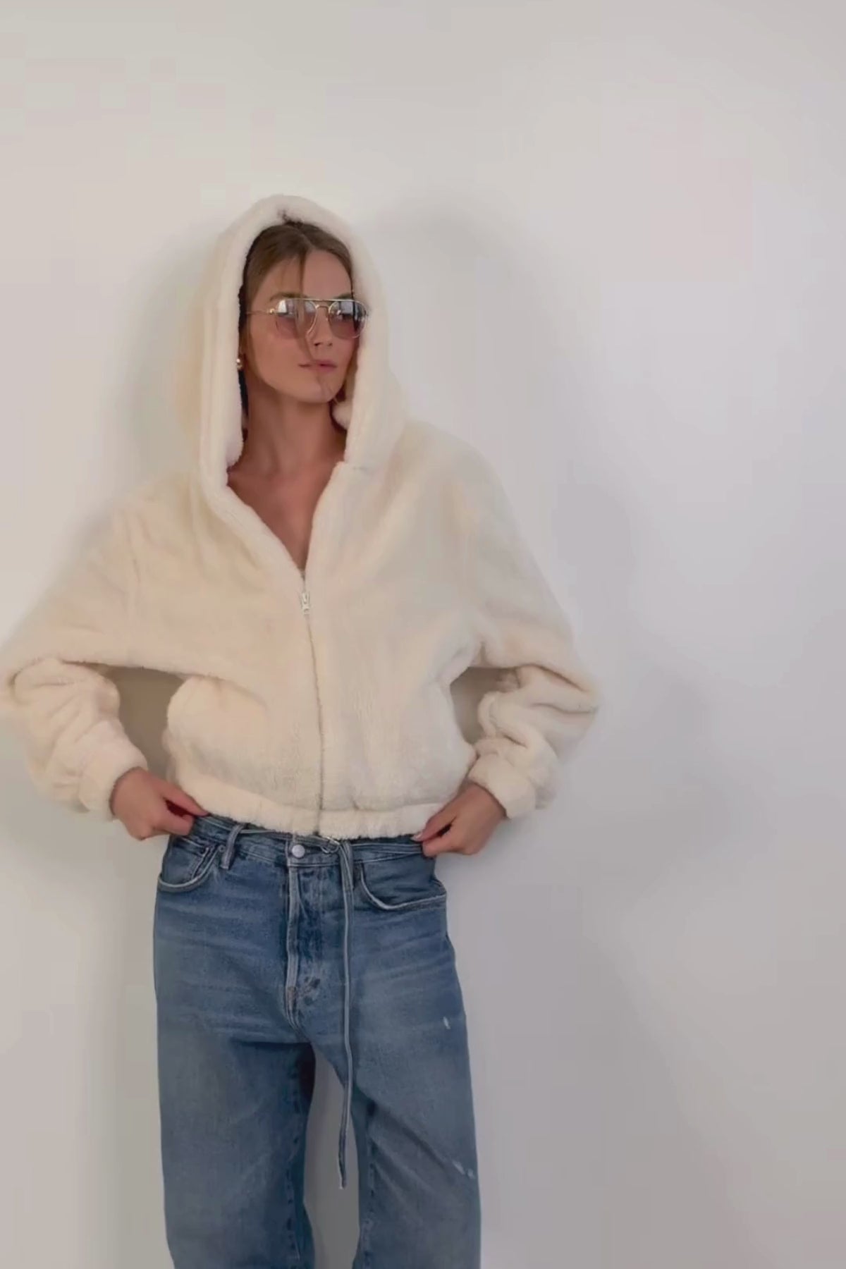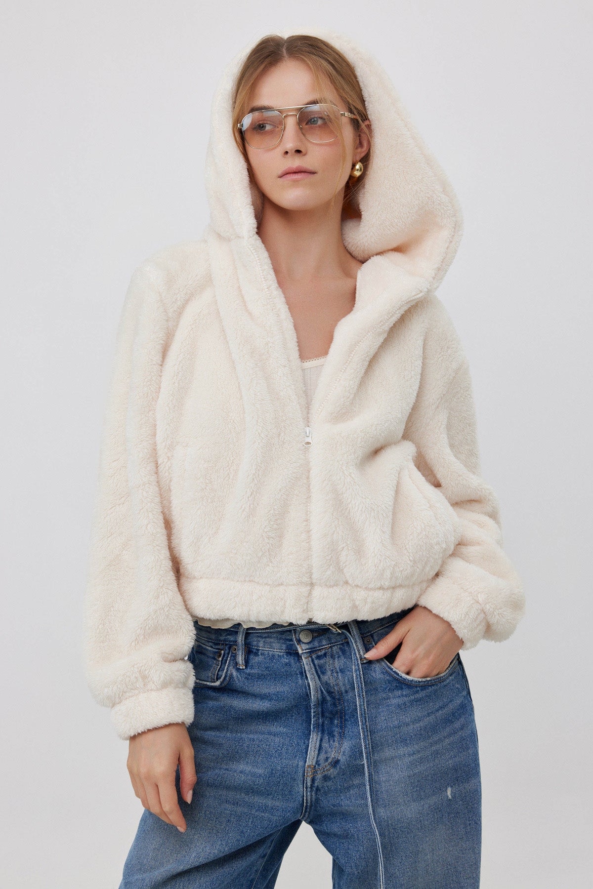 ג'קט פליז עם רוכסן שמנת