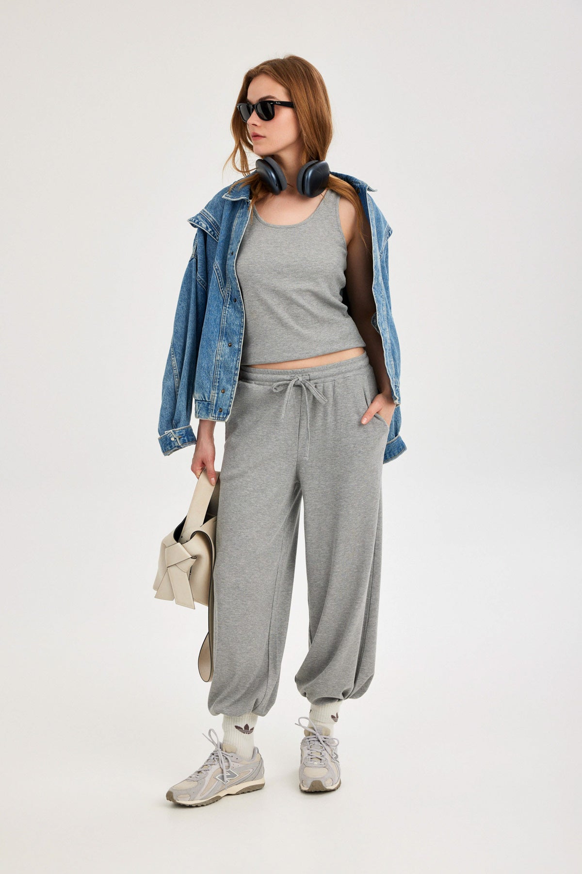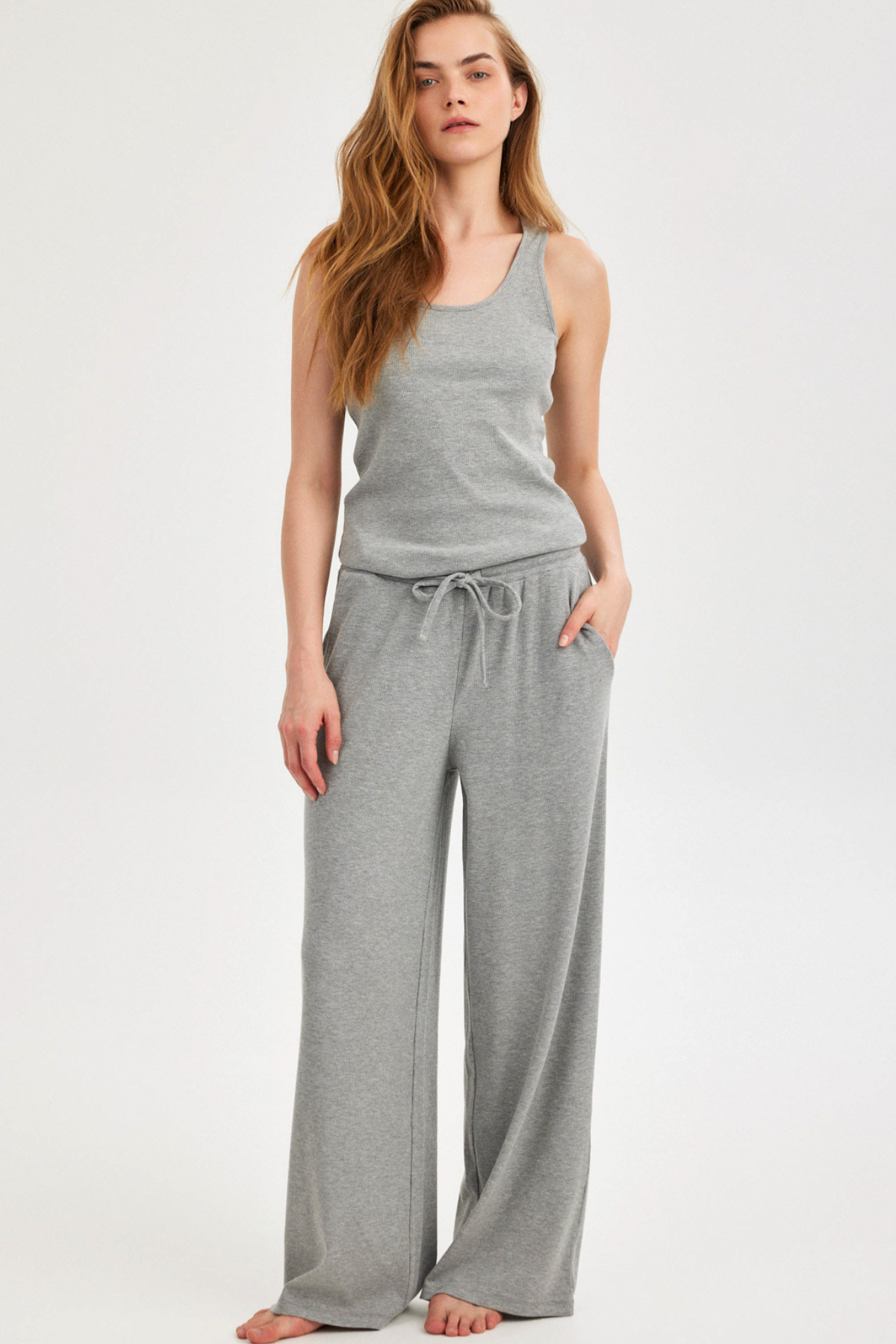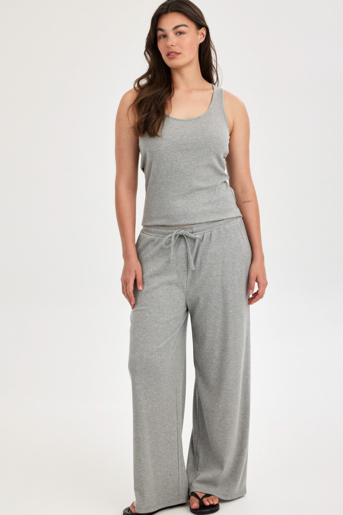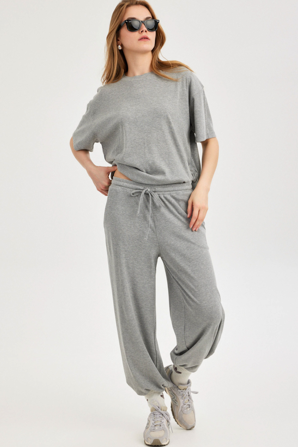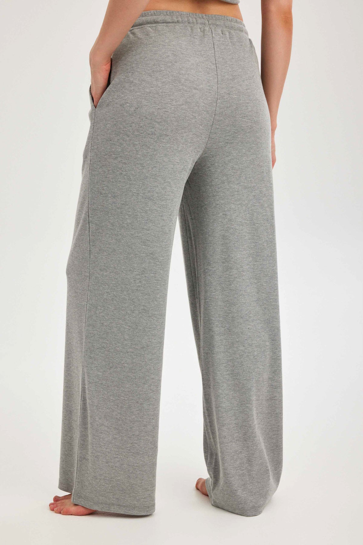מכנסיים ארוכים רחבים אפור ריב