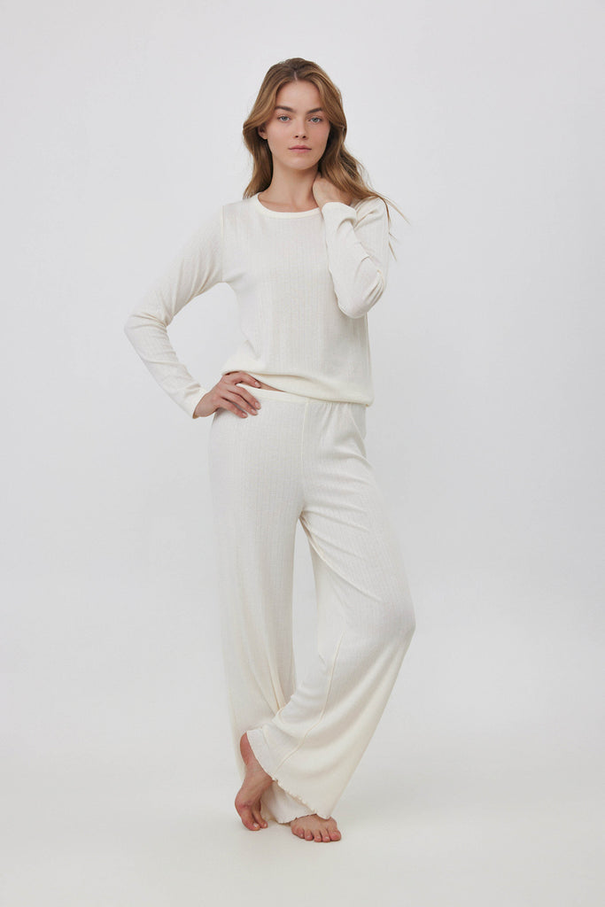 מכנסיים ארוכים בגזרה ישרה מבד רך בסריגת פויינטל.