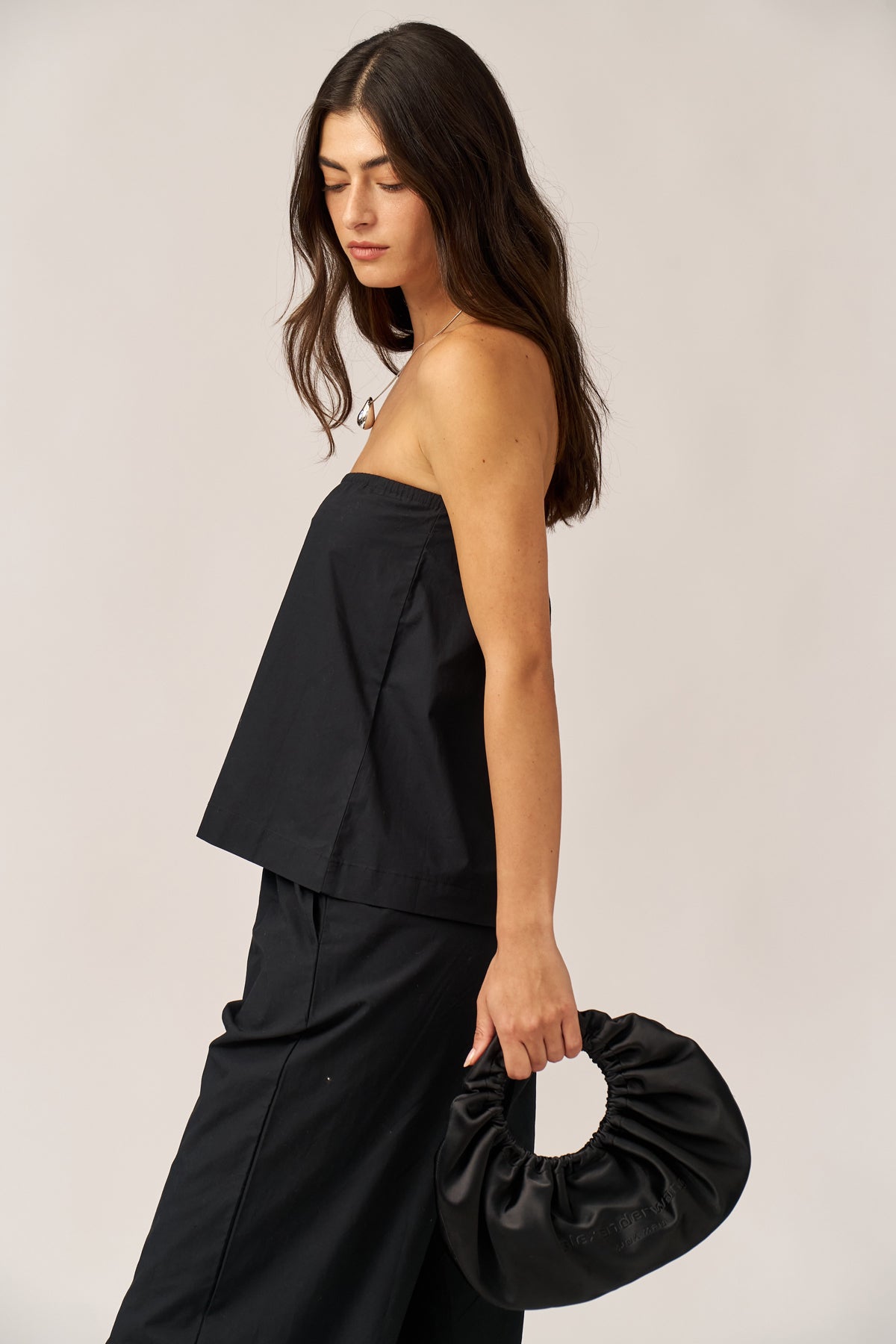 סטרפלס / חצאית קצרה פופלין שחור