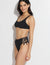 טופ ביקיני שחור בגזרת גוזיה מבד טקסטורת וופל , ברזלים לתמיכה בחזה, כתפיות דקות מתכוננות, קשירה בגב וקאפים רכים נשלפים