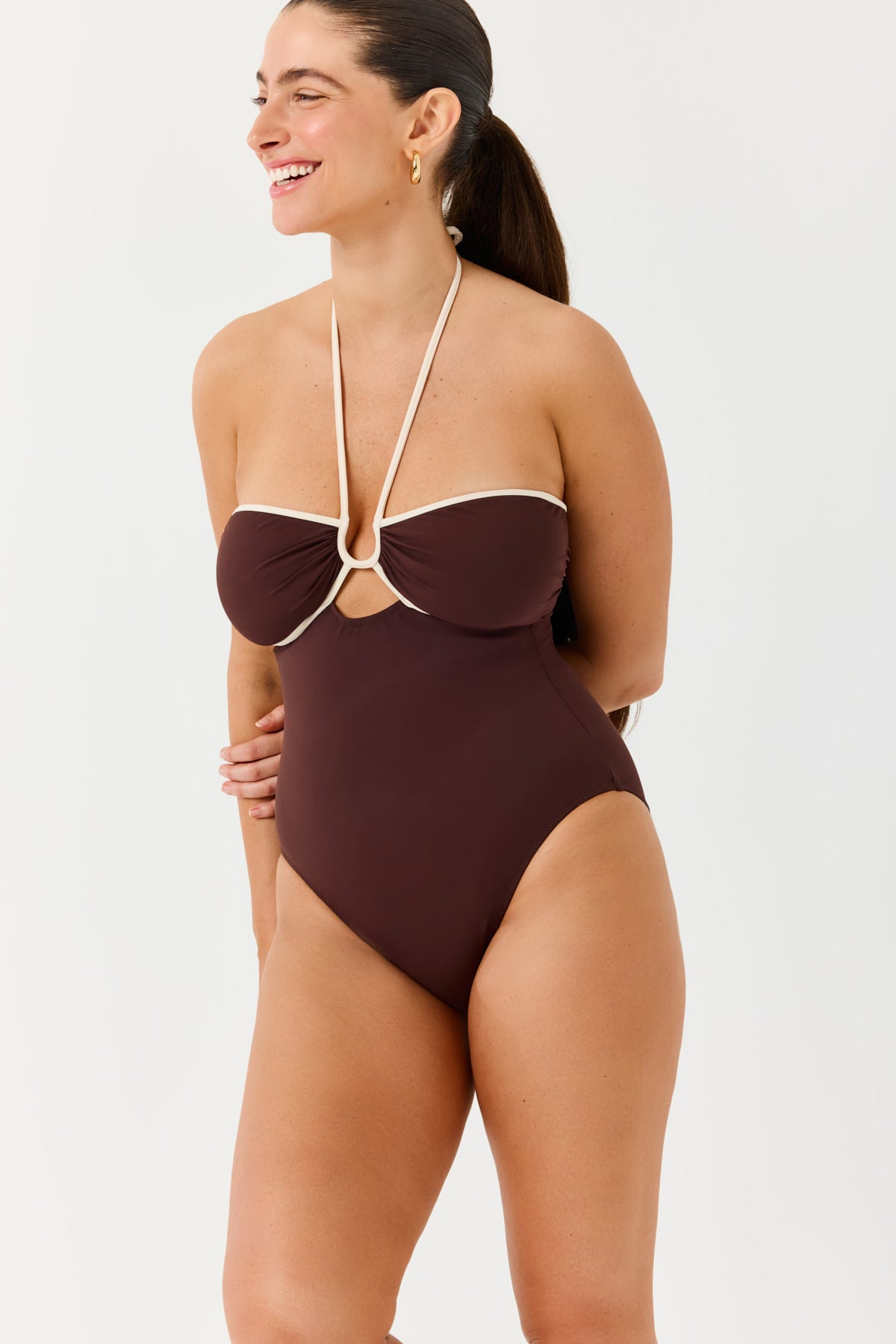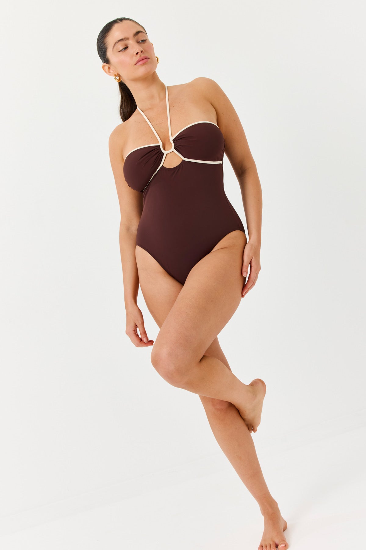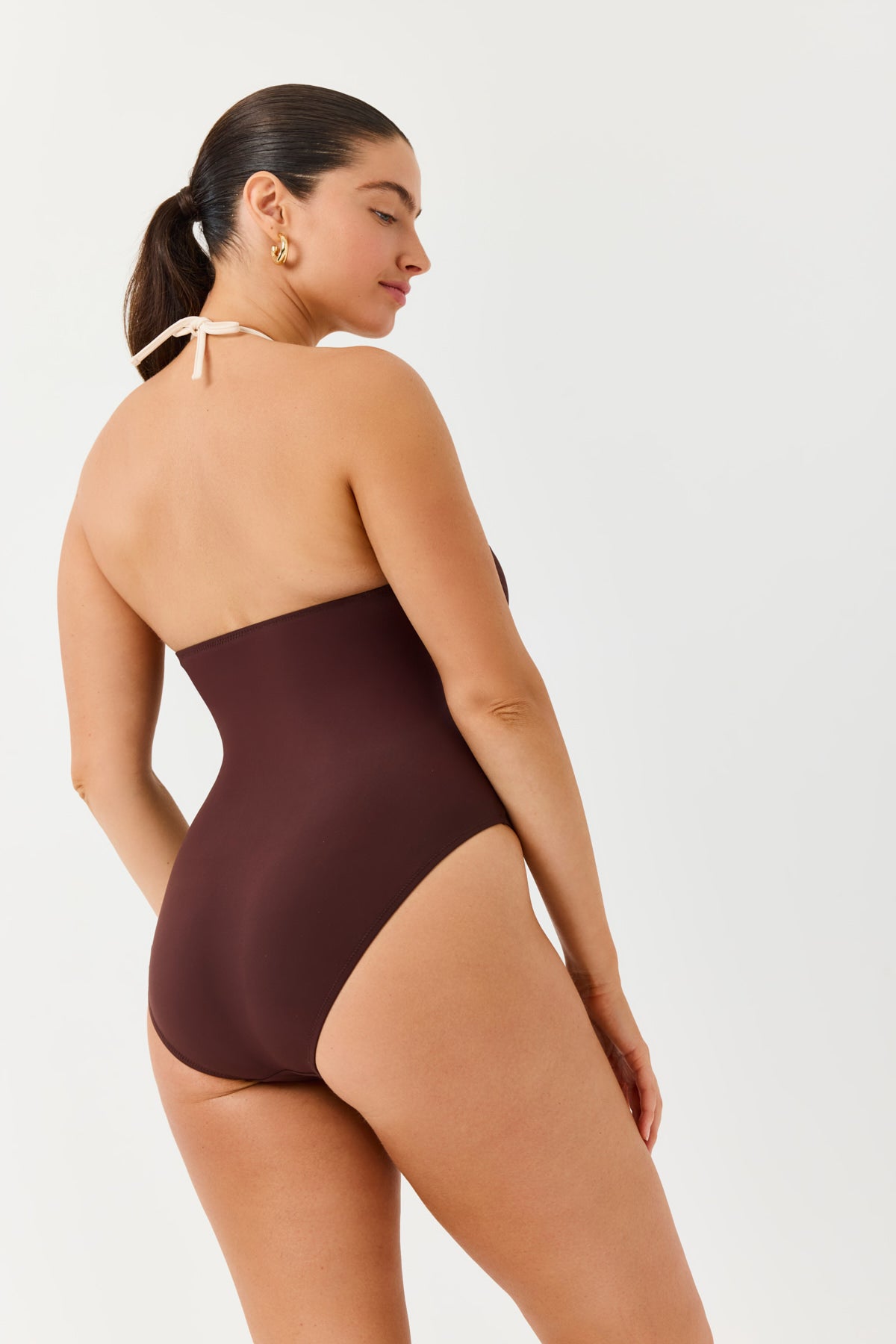 בגד ים שלם קשירה חום