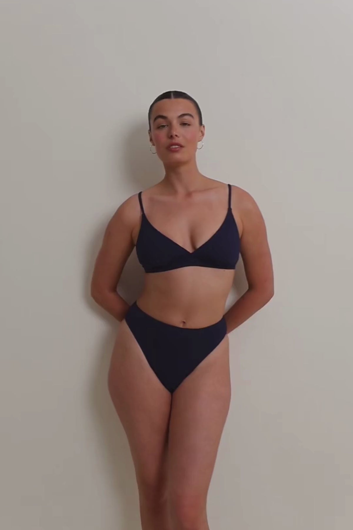 טופ ביקיני בצבע כחול נייבי מבד טקסטורה עם מחשוף וי
