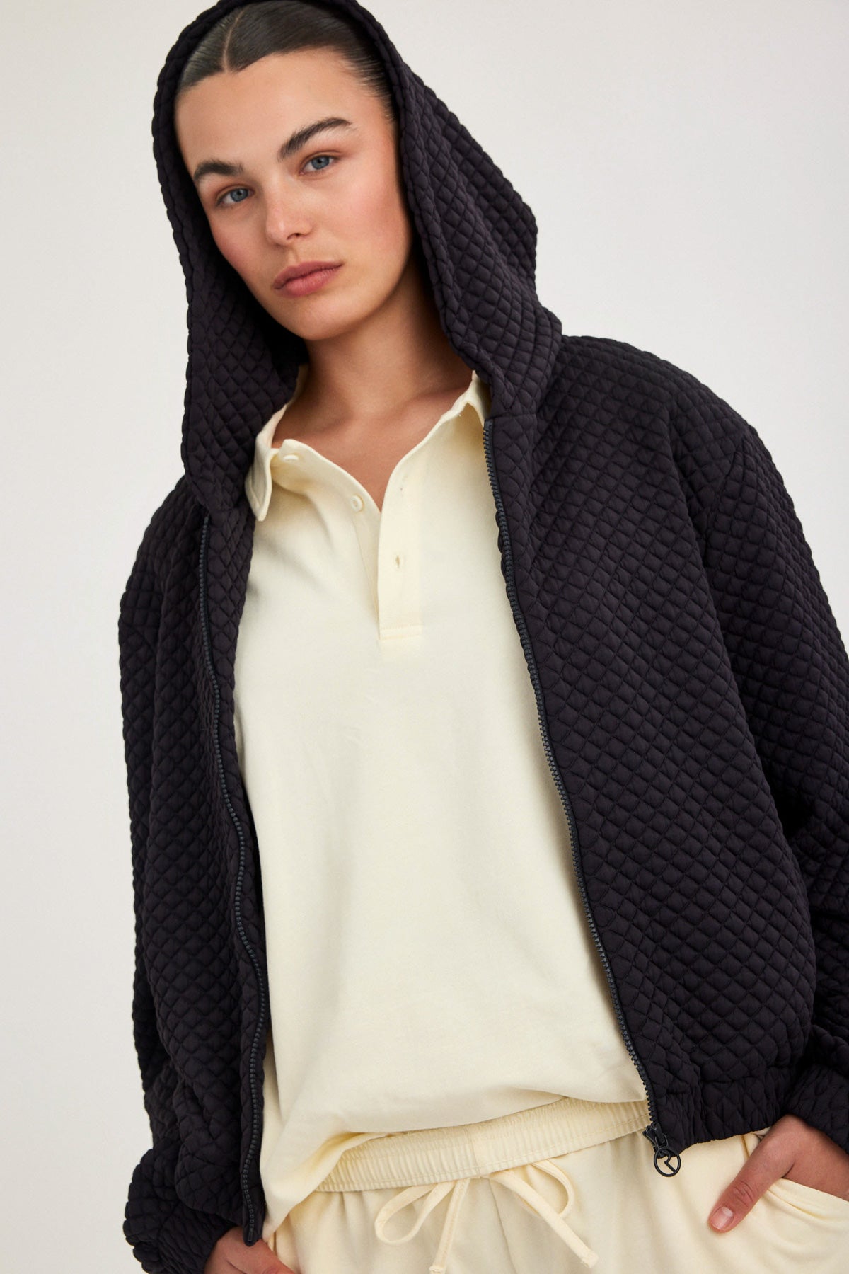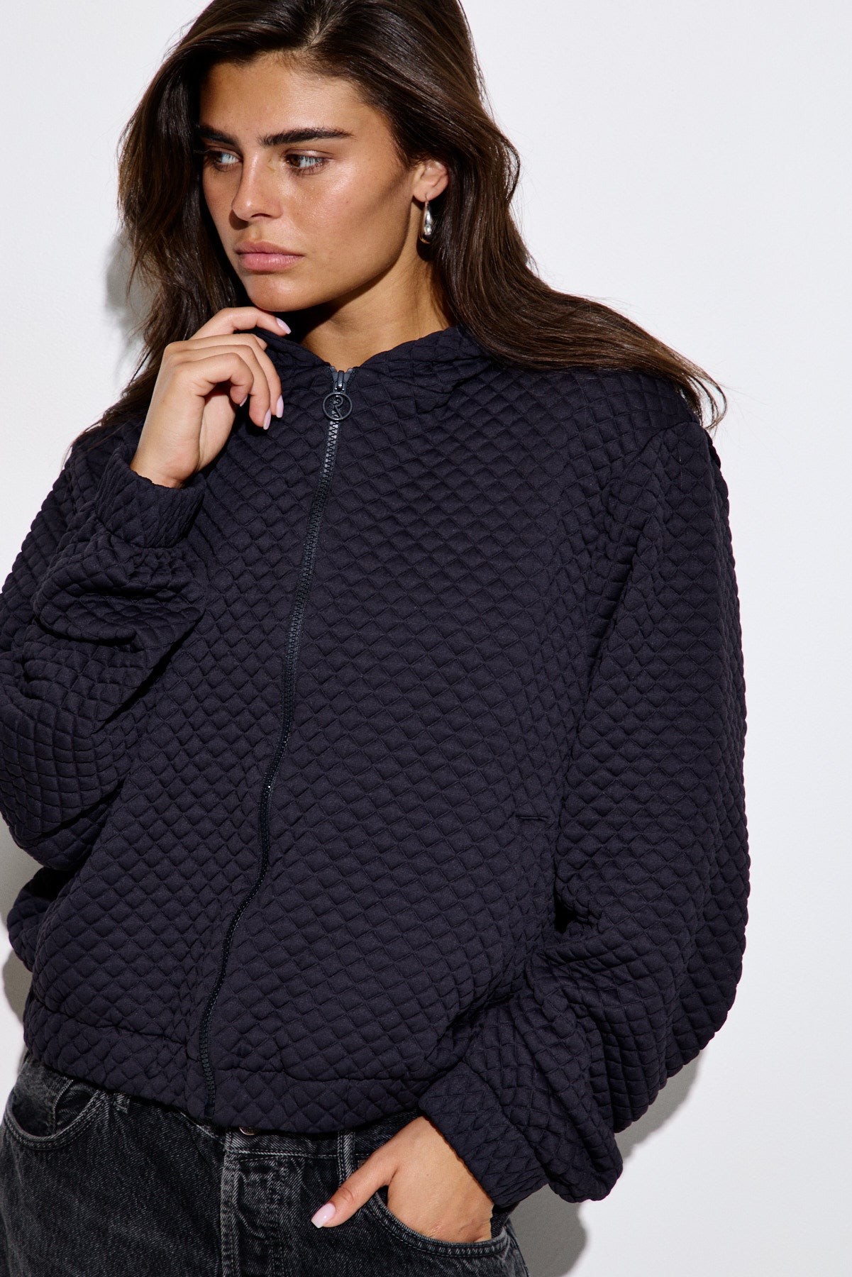 ג'קט ספורט טקסטורה קווילט עם רוכסן בגזרת בומבר