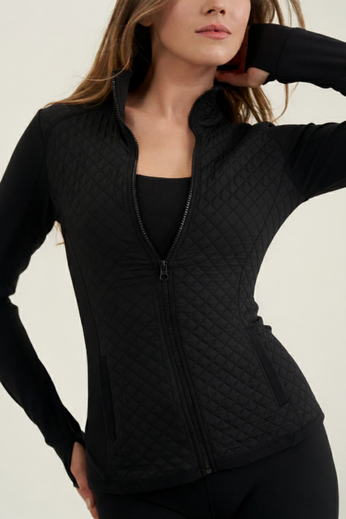 ג'קט ספורט טקסטורה קווילט עם רוכסן בגזרה צמודה לגוף