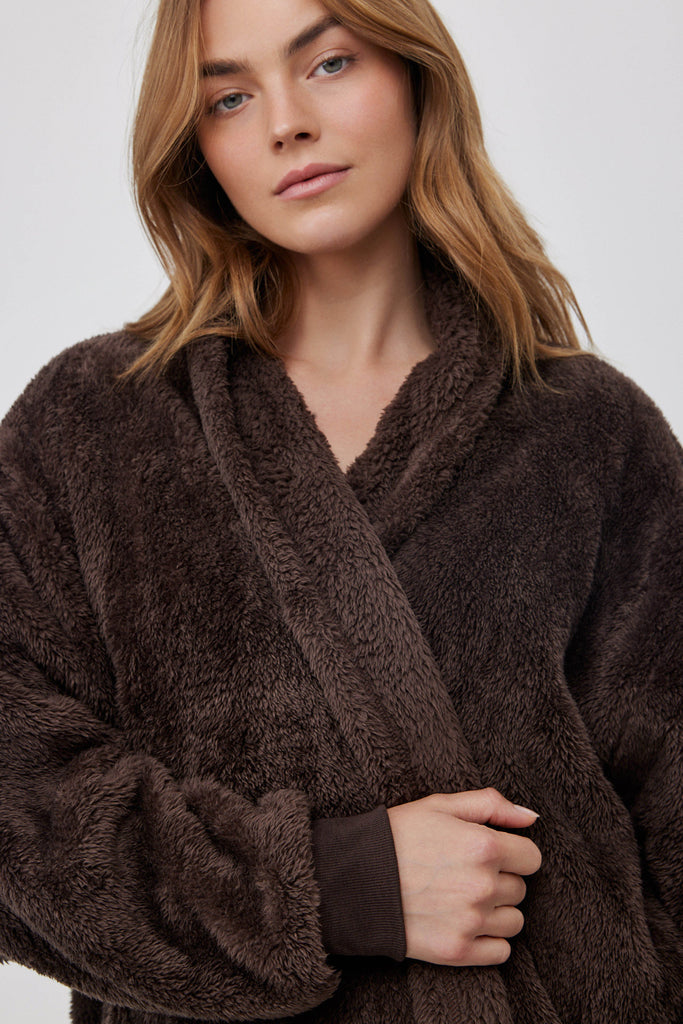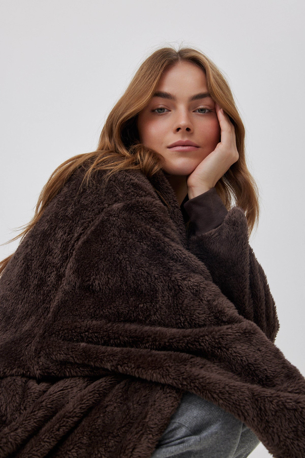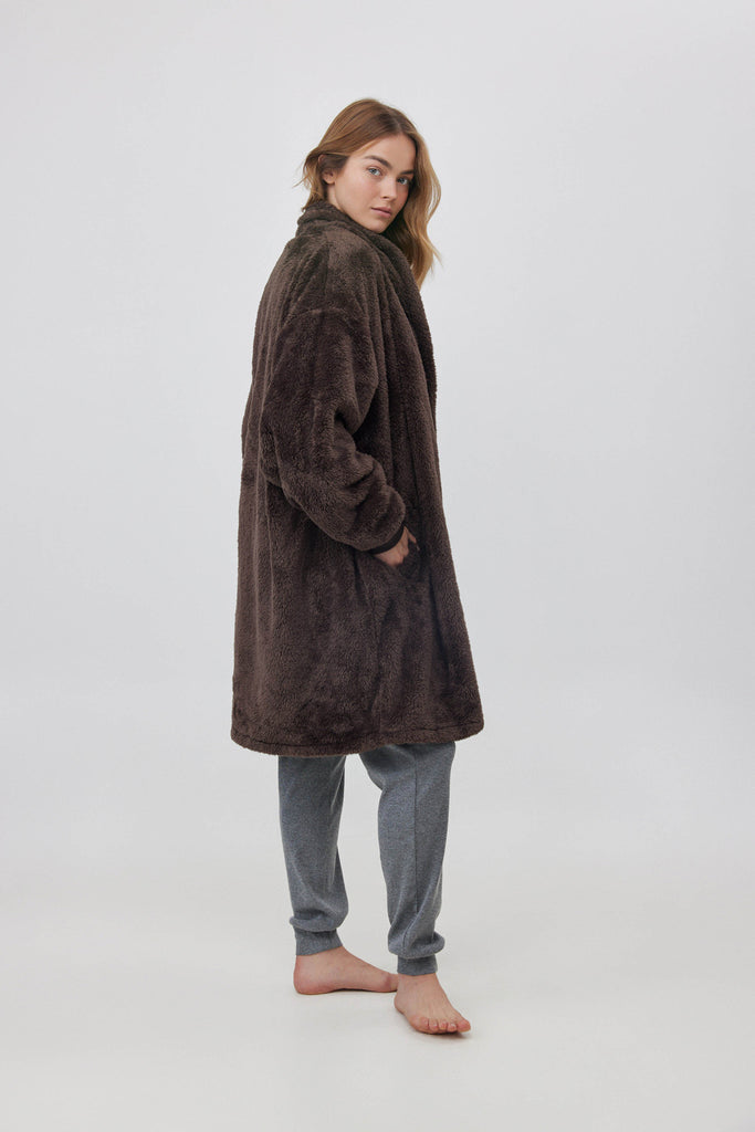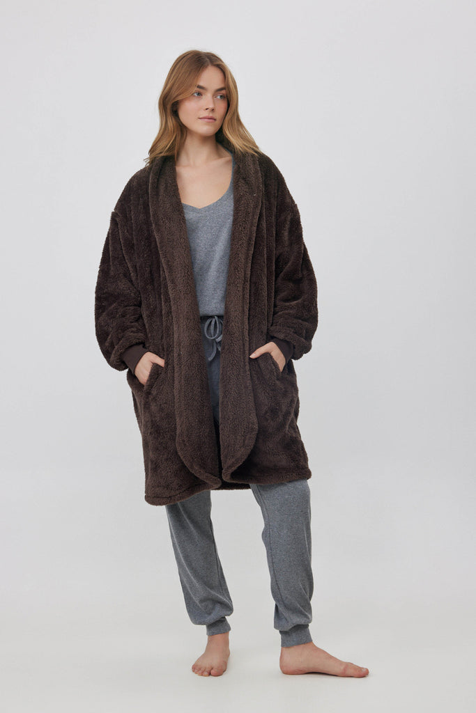 ג'קט פלאפי מפנק מבד נעים ומחמם במיוחד, עם כובע וכיסים בצדדים.