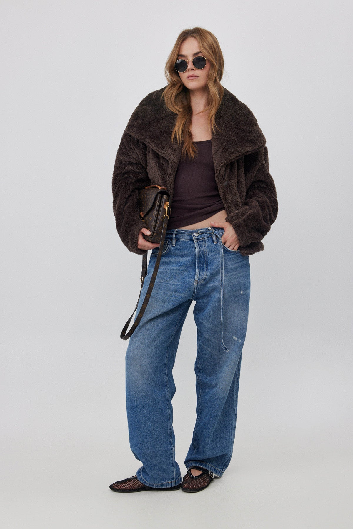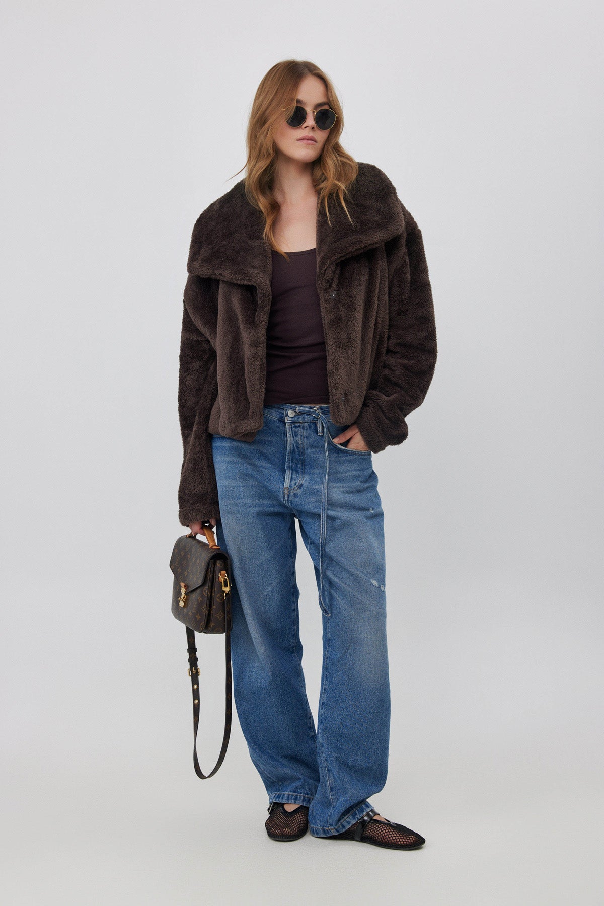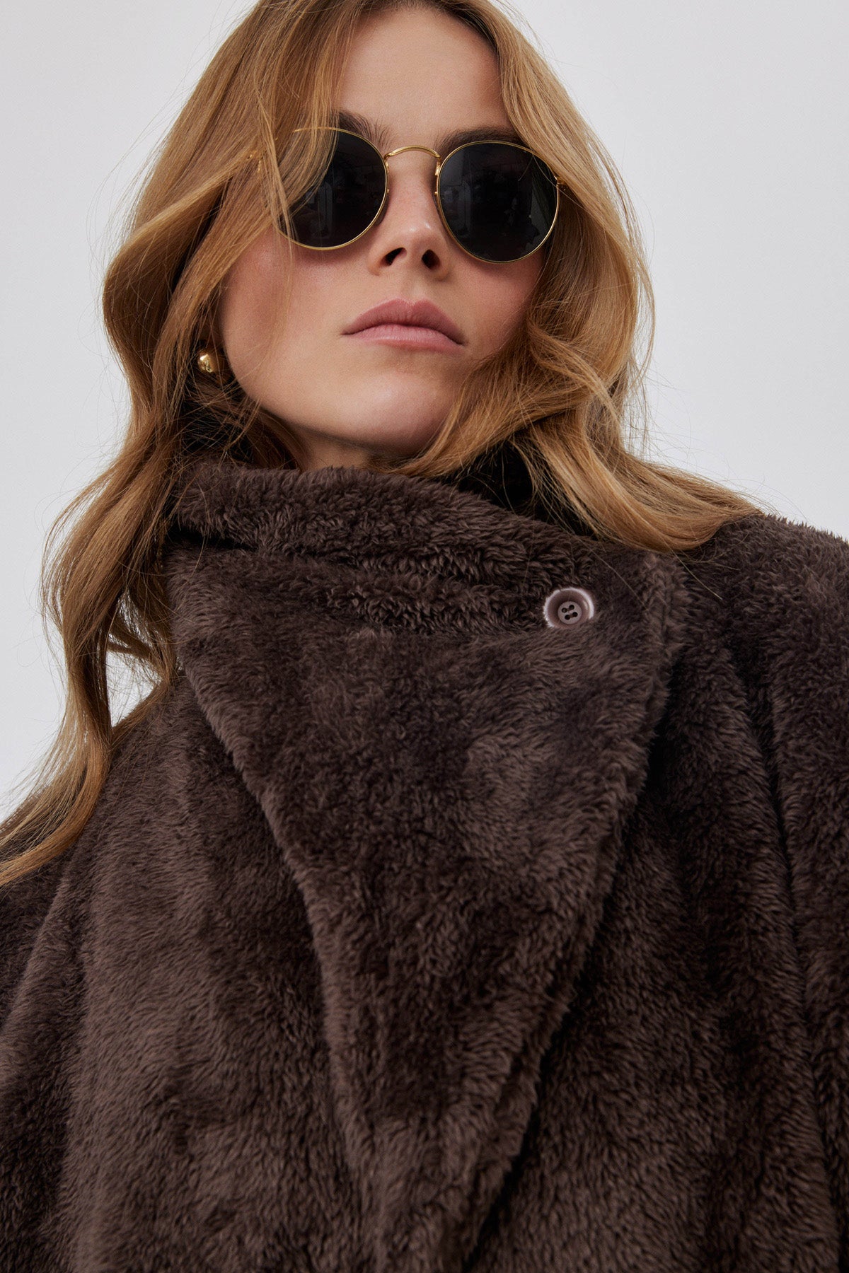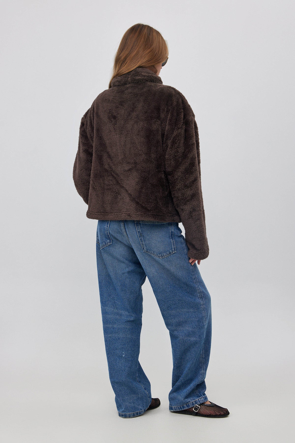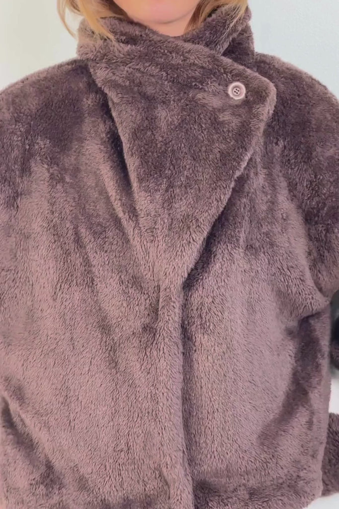 ג'קט פליז קצר בעל צווארון רחב , ניתן ללבוש גם כמעטפת סביב הצוואר עם סגירת כפתור