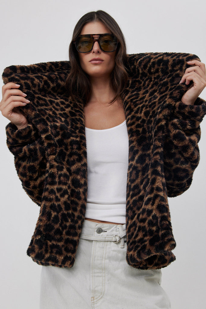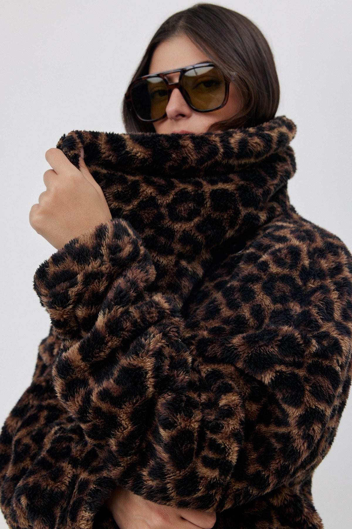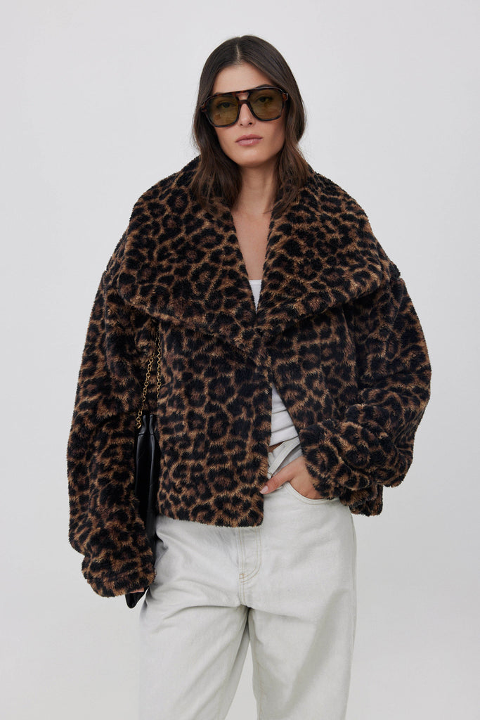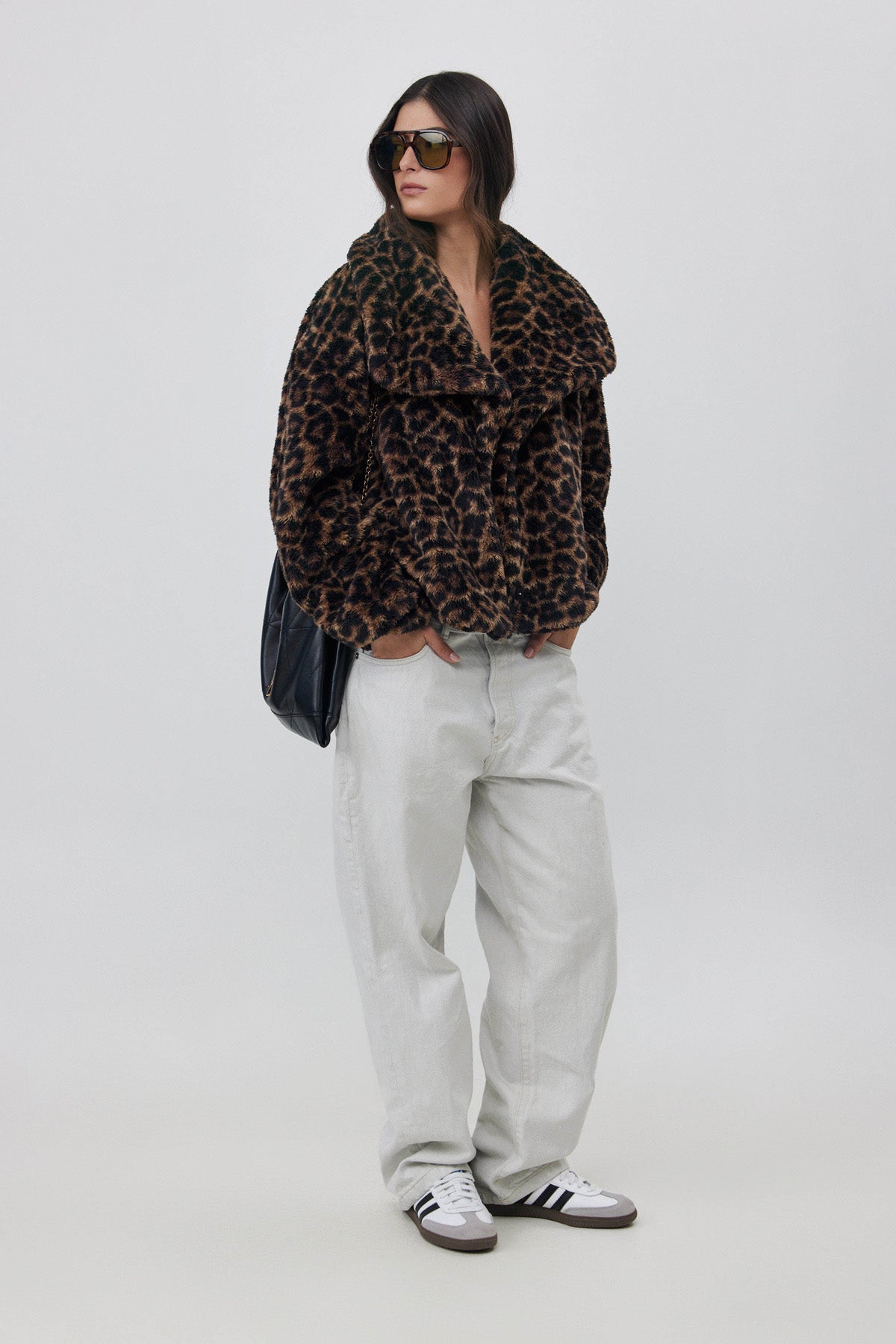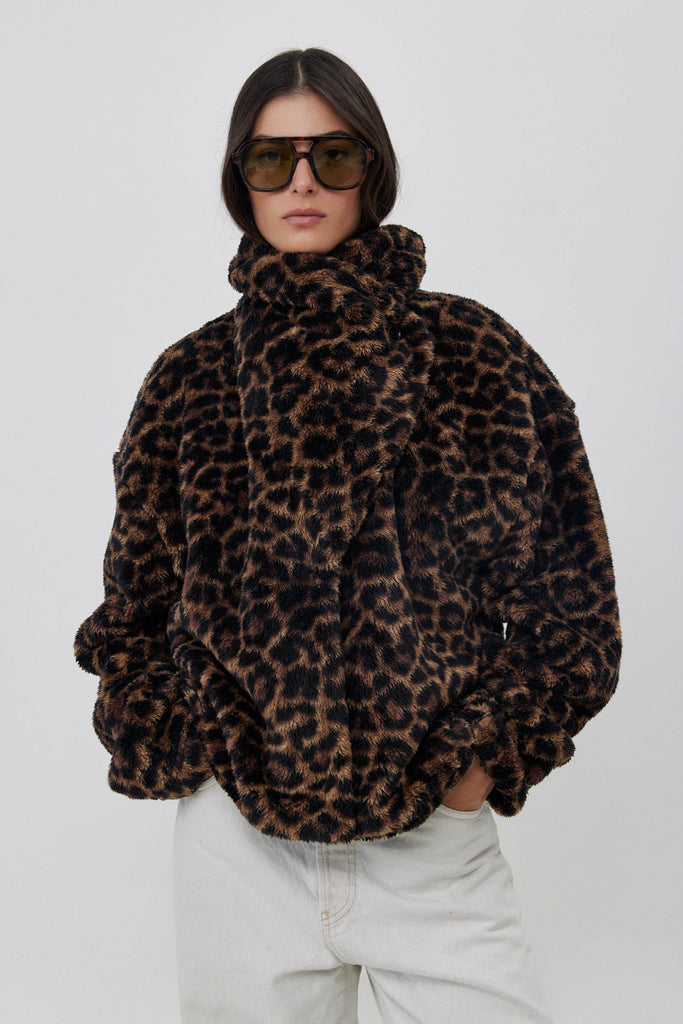 ג'קט פליז קצר בעל צווארון רחב , ניתן ללבוש גם כמעטפת סביב הצוואר עם סגירת כפתור