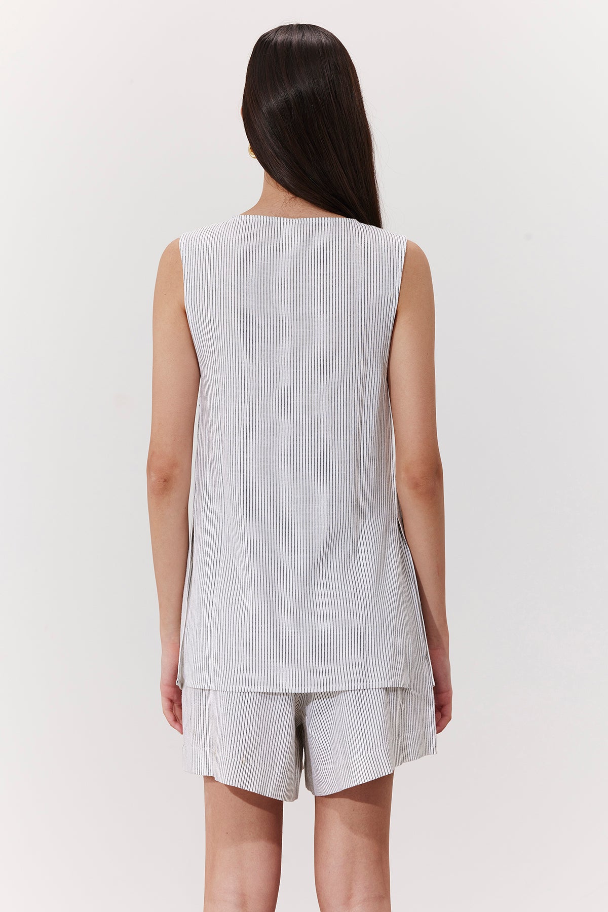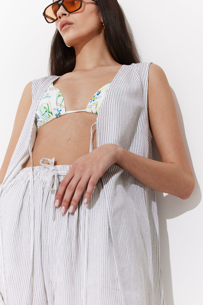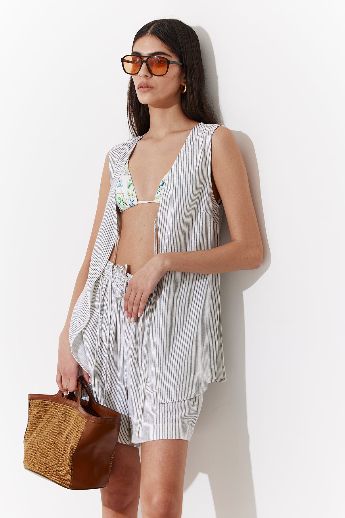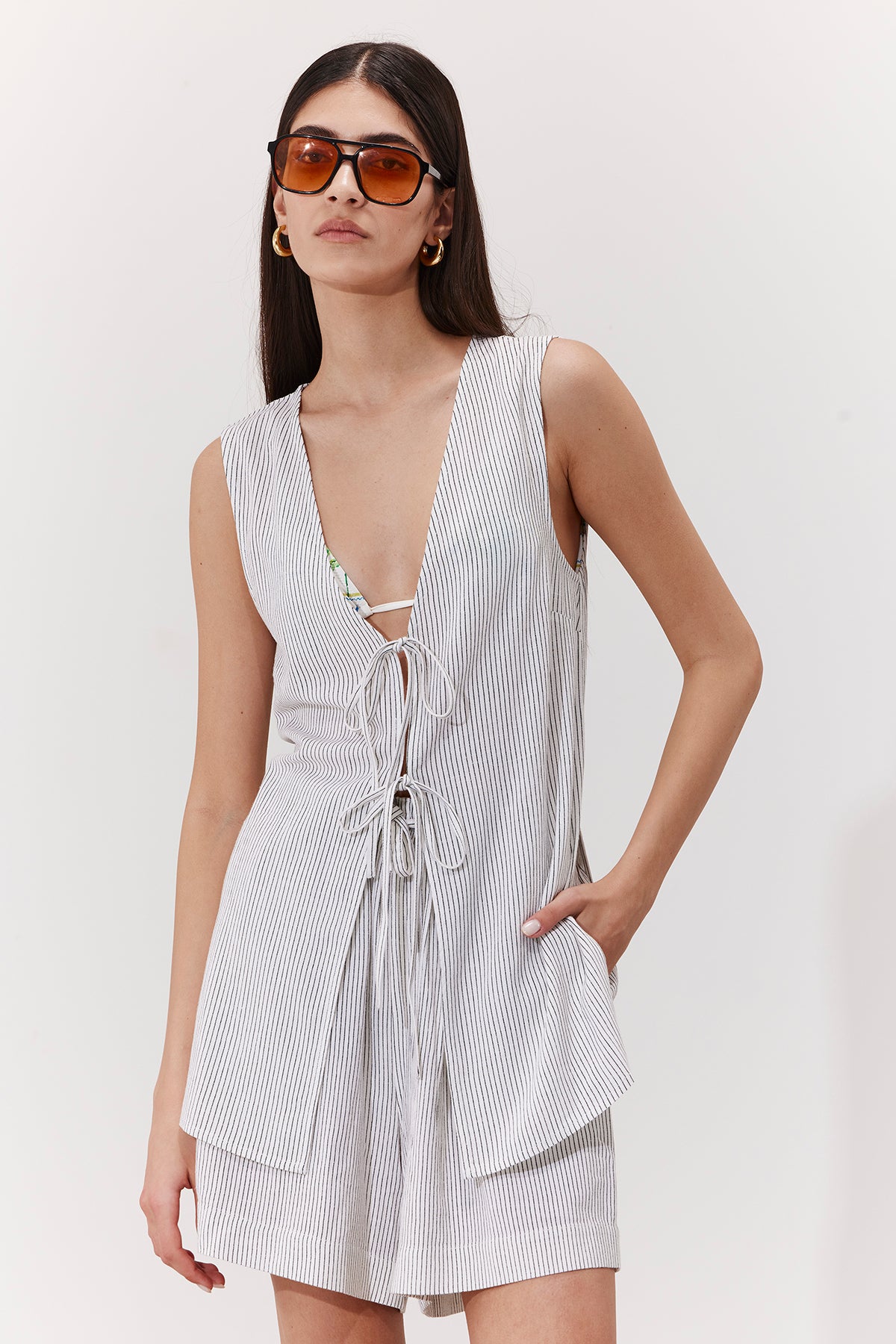 וסט פסים בגזרה ישרה עם שרוכי קשירה בחזית