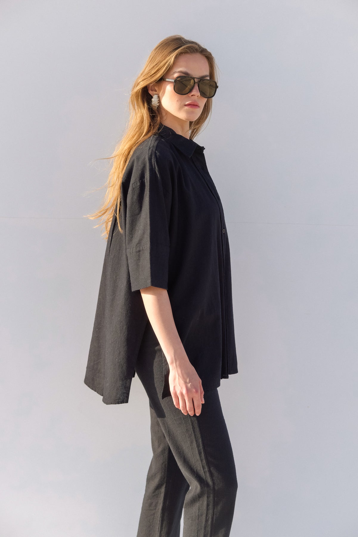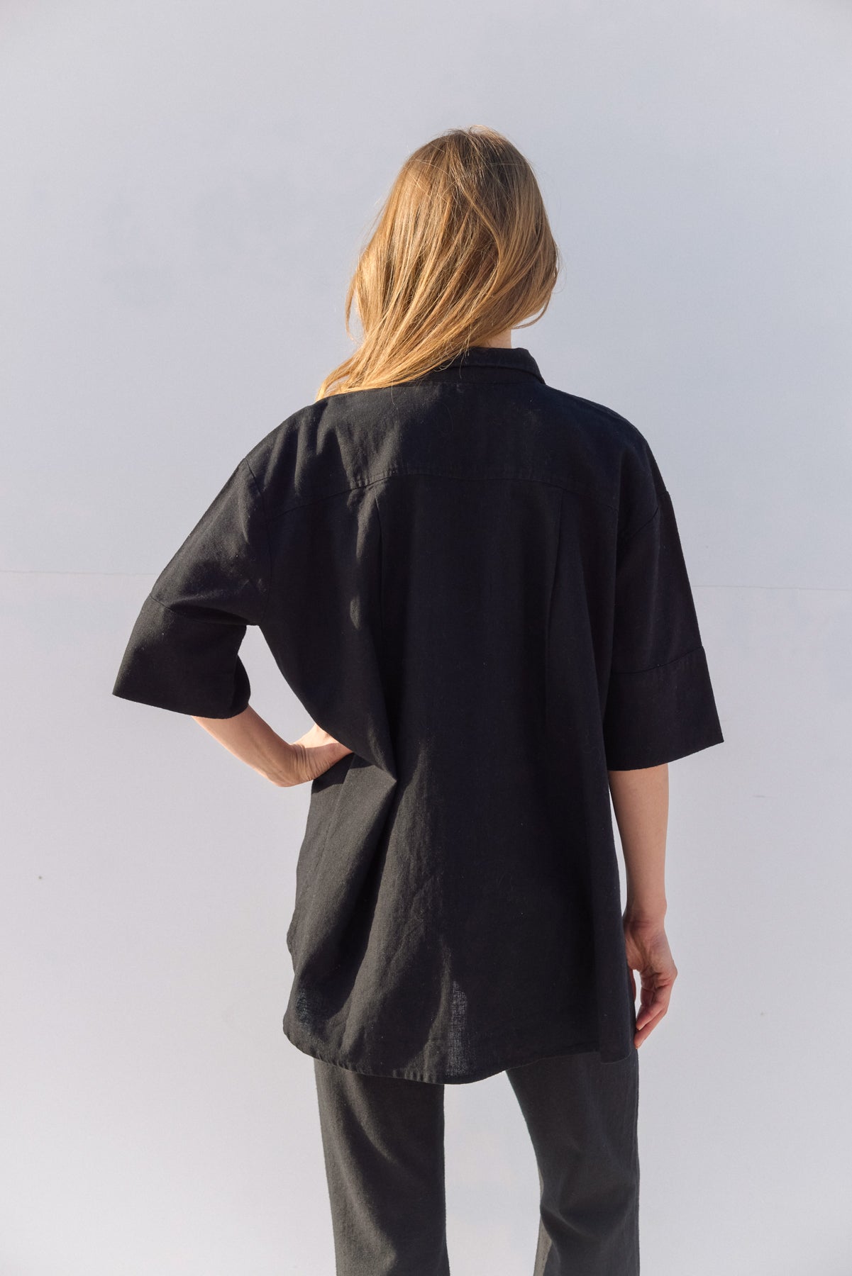 חולצה מכופתרת בגזרת אוברסייז מבד תערובת פשתן
