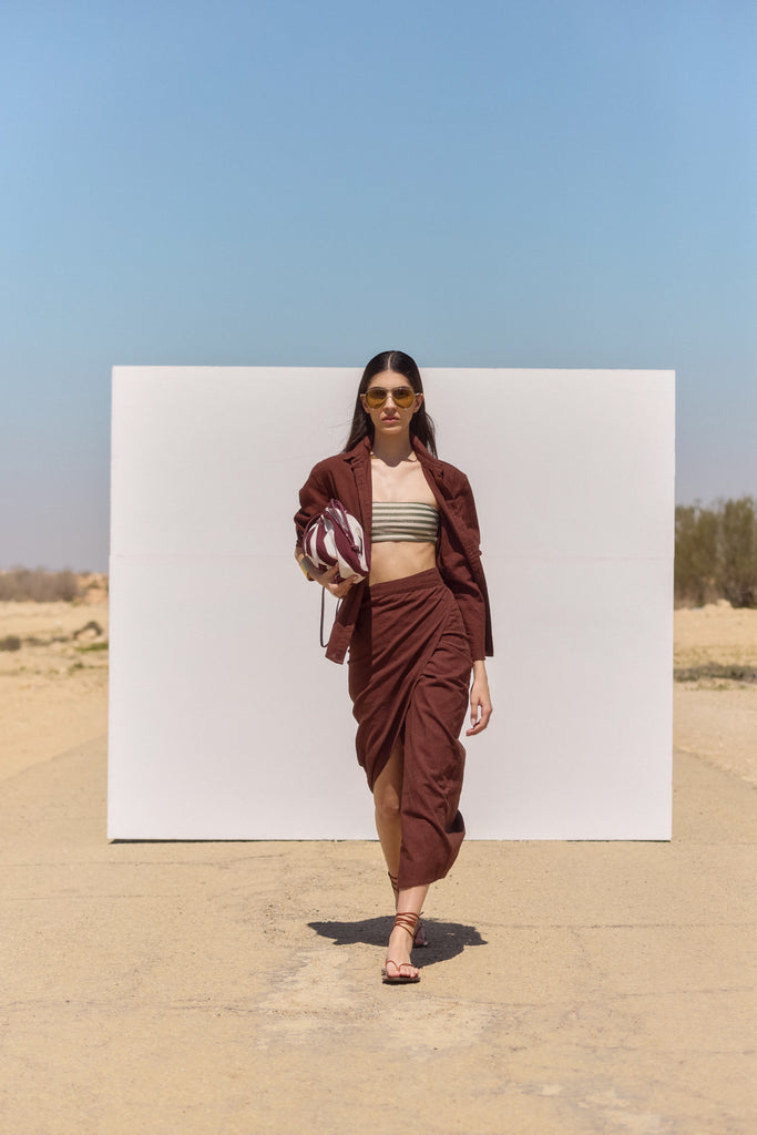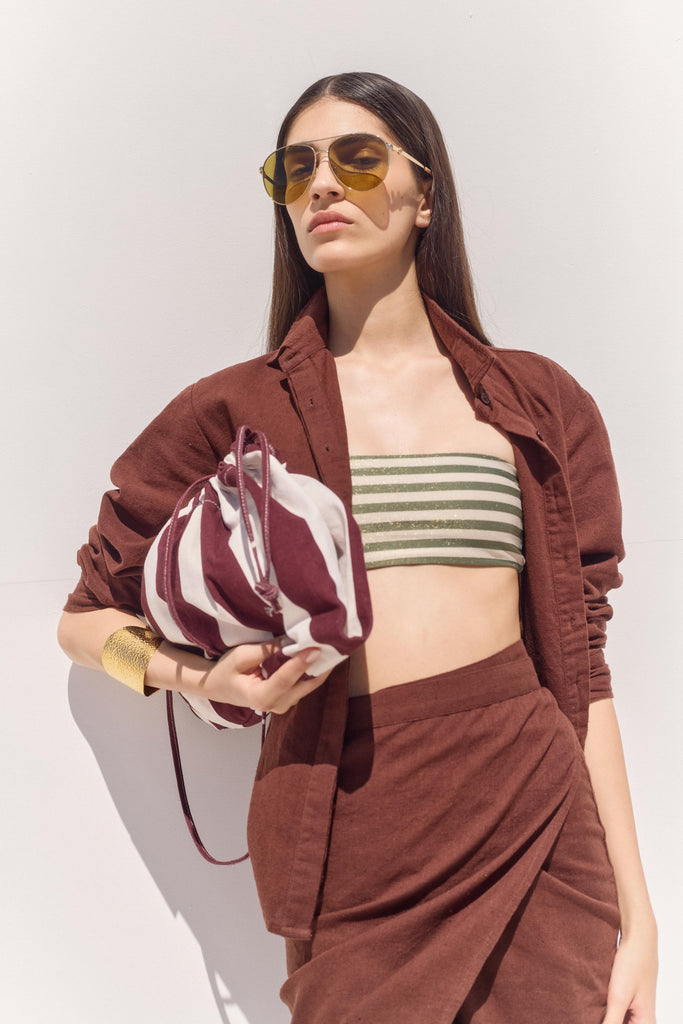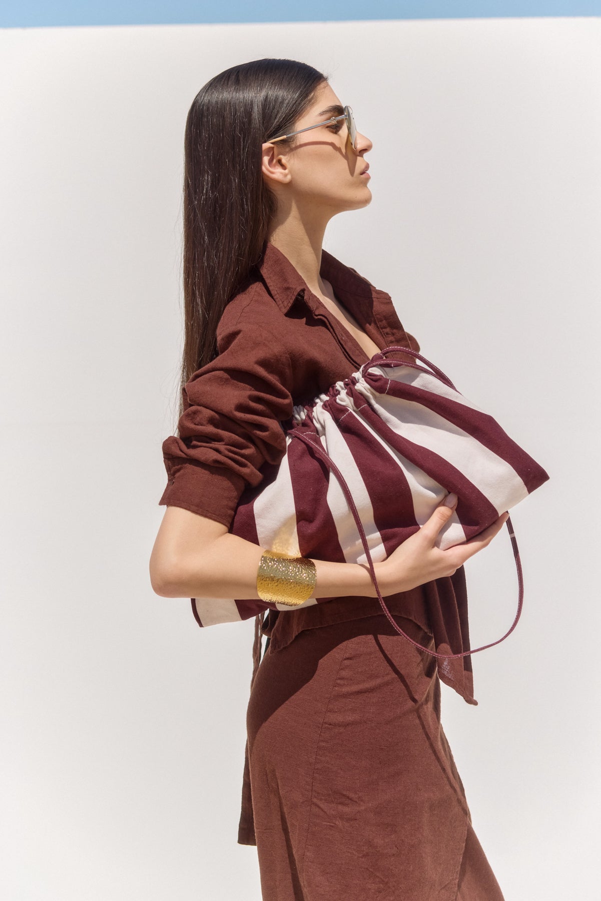 גזרת שק עם סגירת כיווץ ורצועה דקה ארוכה