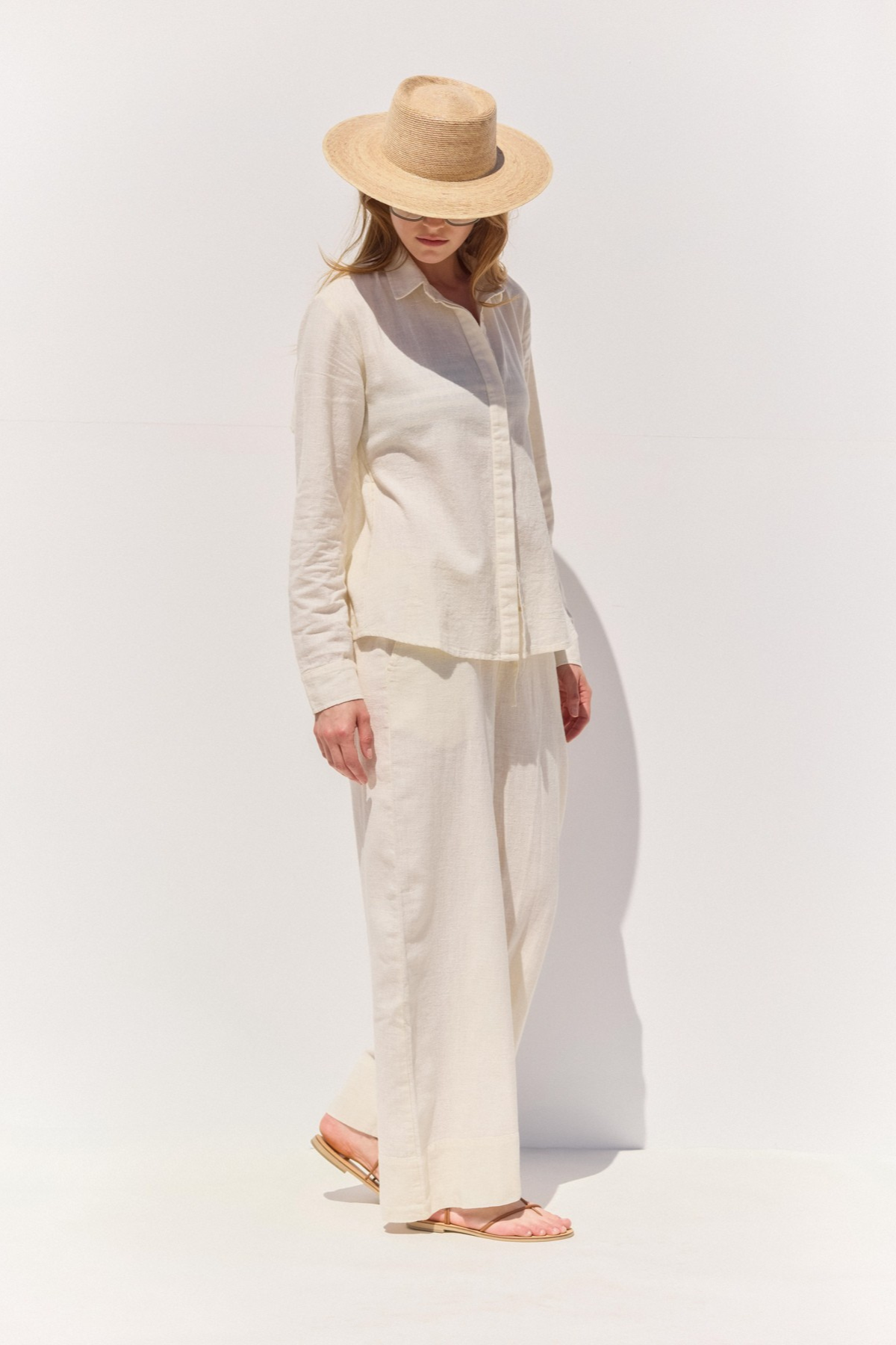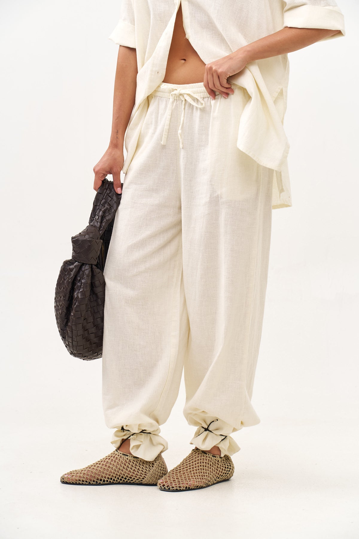 מכנסיים ארוכים בגזרה רחבה מבד תערובת פשתן