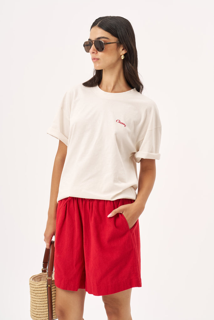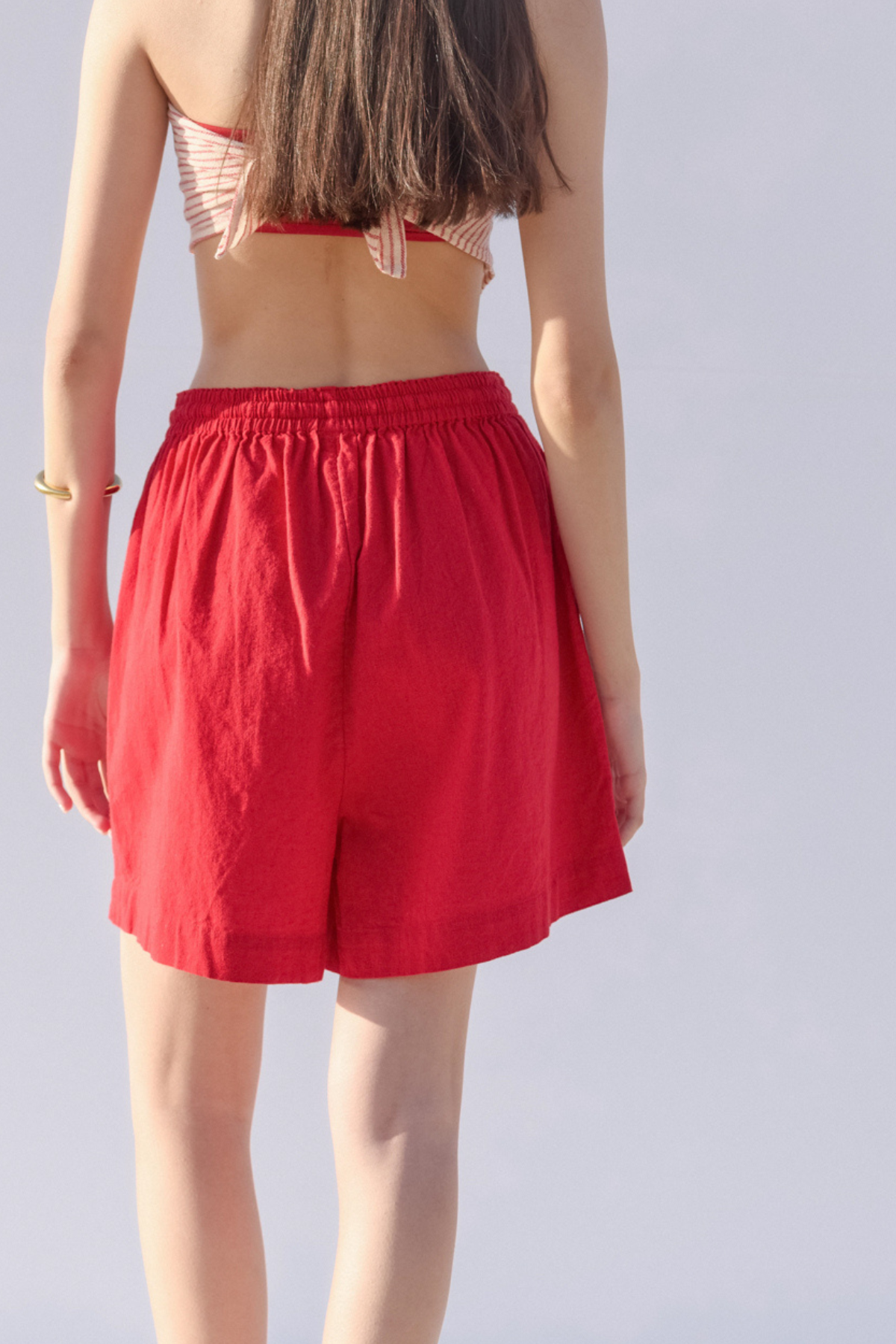 מכנסי ברמודה קצרים מבד תערובת פשתן