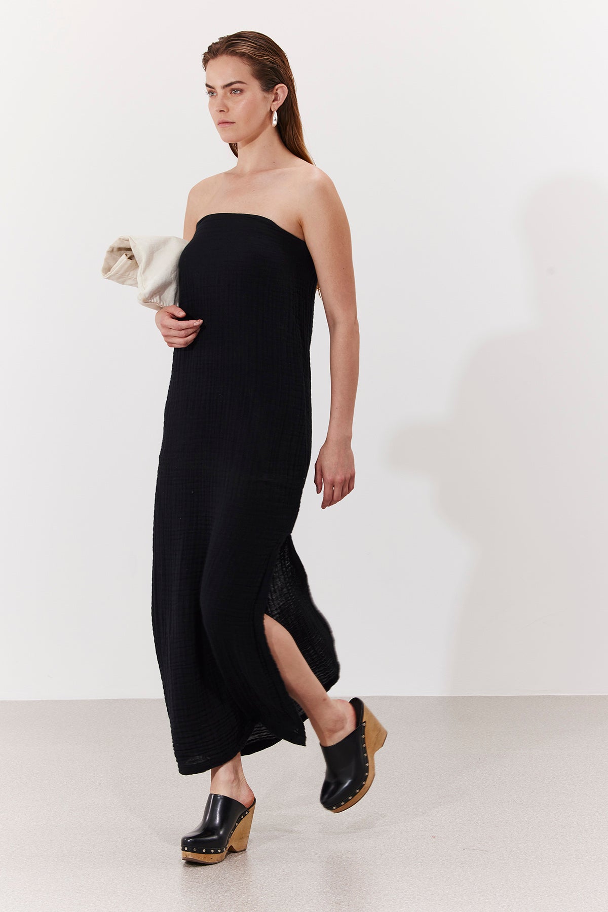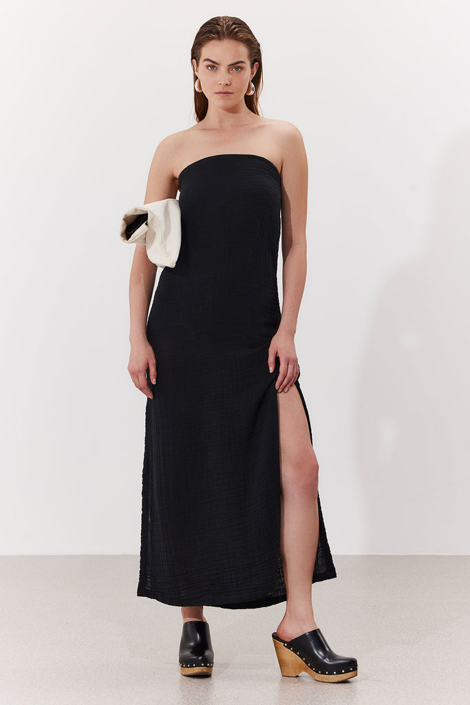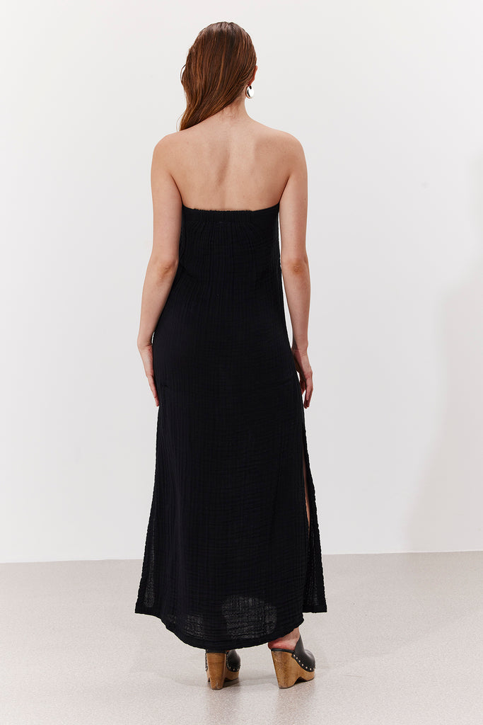 שמלת סטרפלס מבד טטרה באורך מקסי
