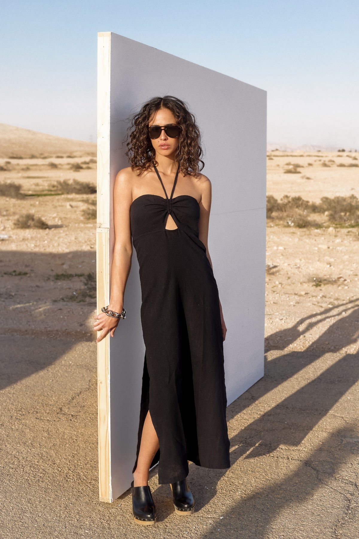 שמלת מקסי בגזרת סטרפלס עם כיווץ בחזה ופס סיליקון בחלקו העליון