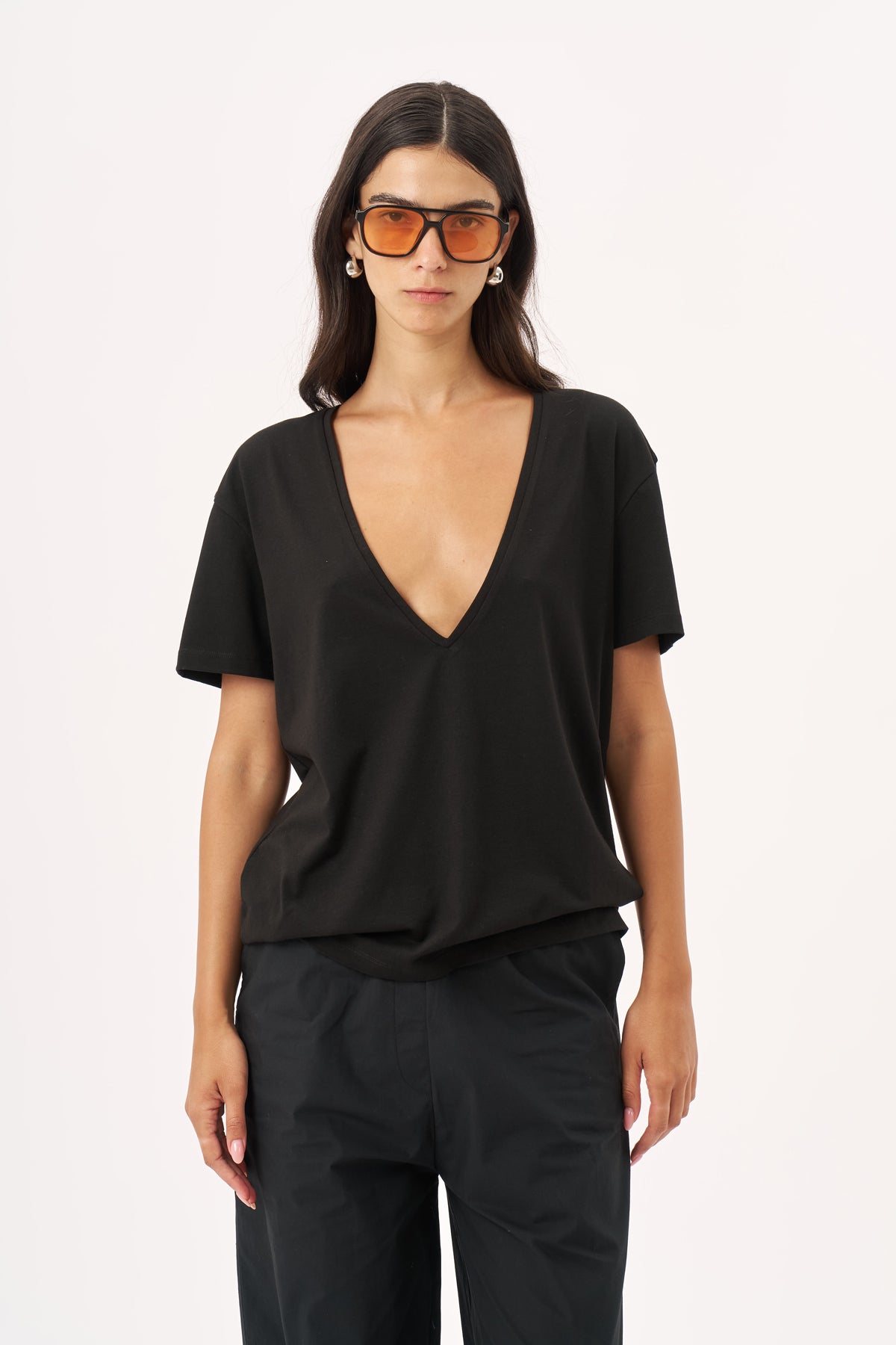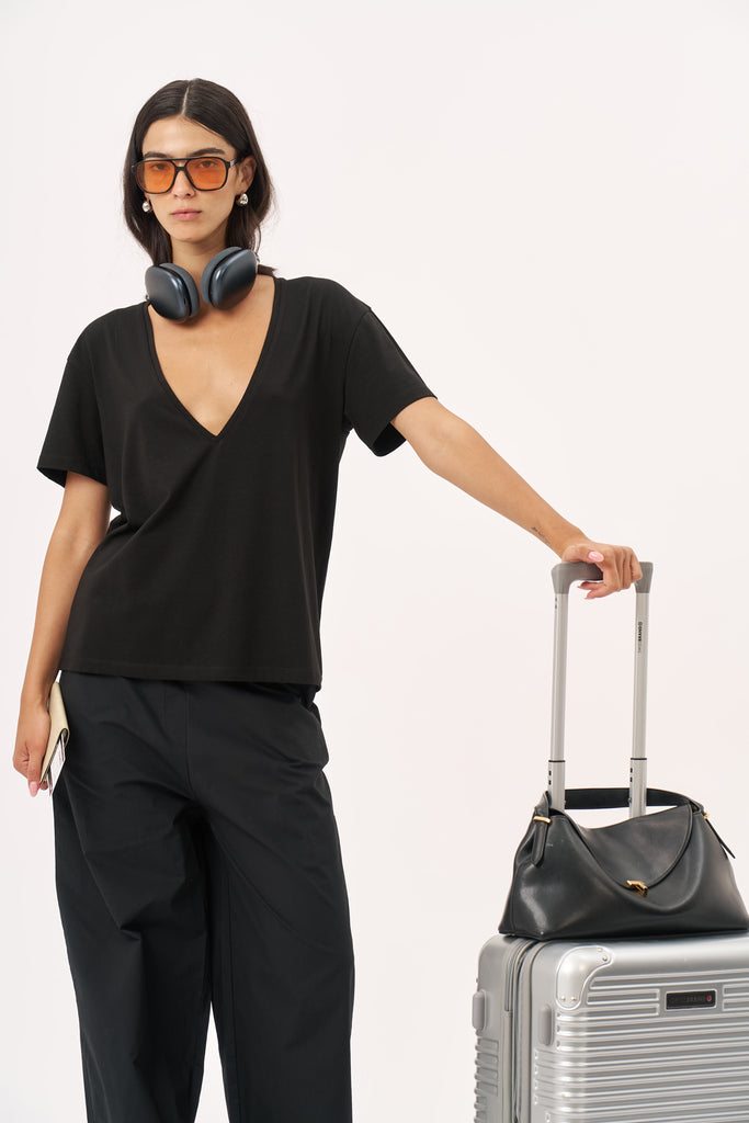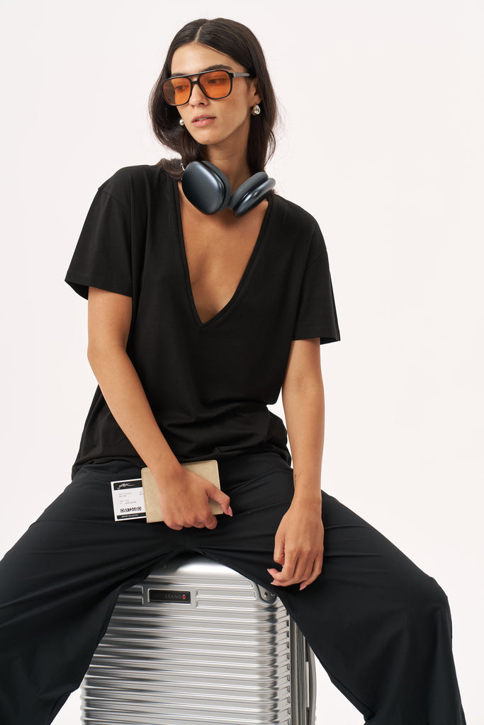 חולצת וי קצרה שחור