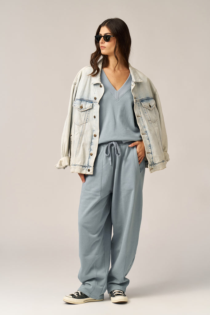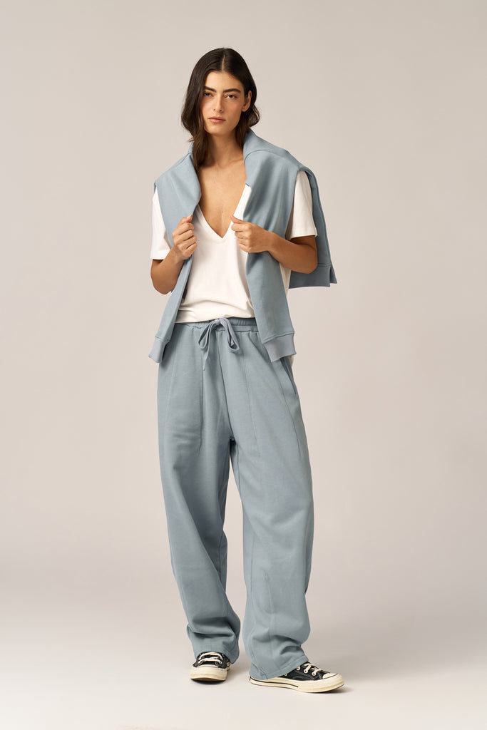 מכנסיים ארוכים גזרת בלון פרנץ' טרי תכלת
