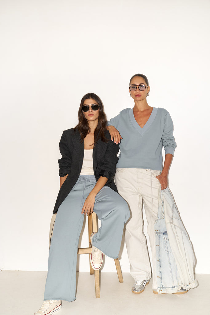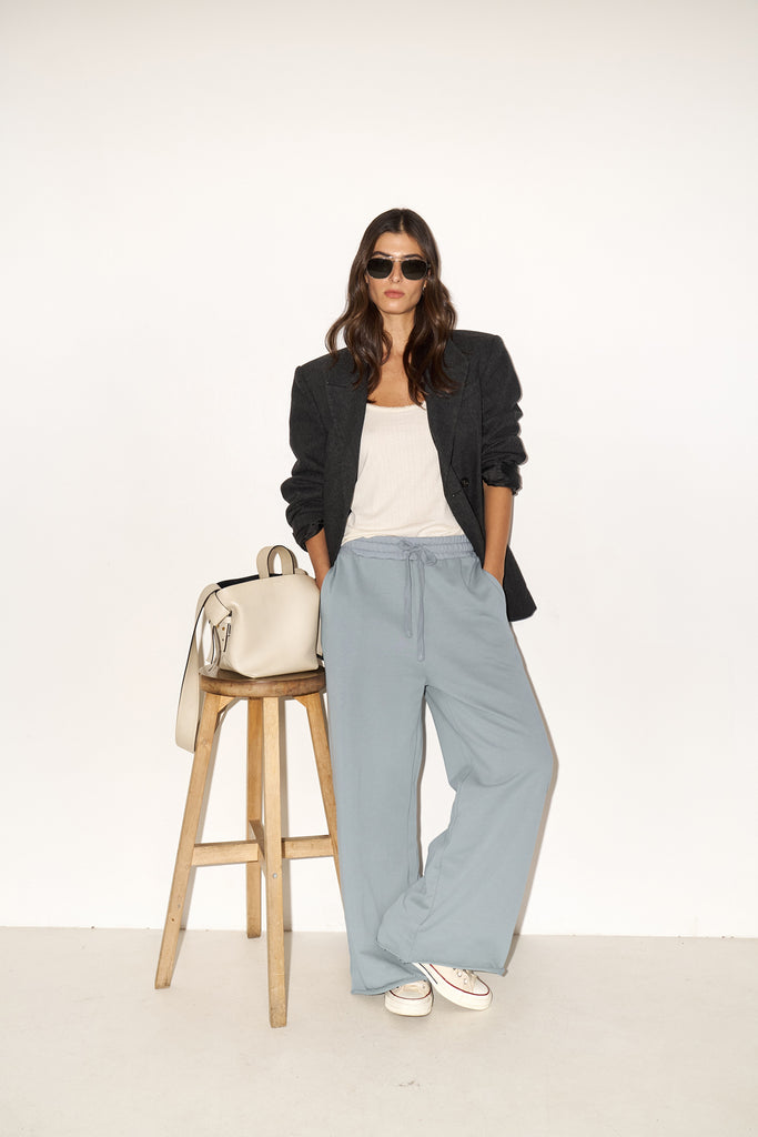 מכנסיים ארוכים גזרה רחבה פרנץ' טרי תכלת