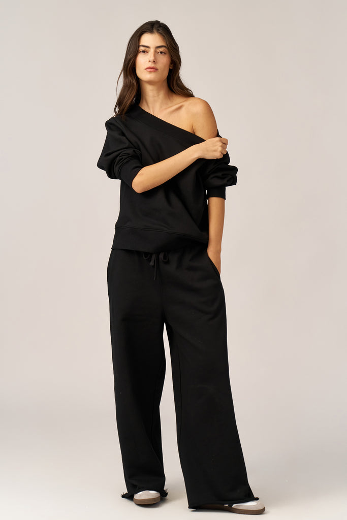 חולצת אוף שולדר פרנץ' טרי שחור