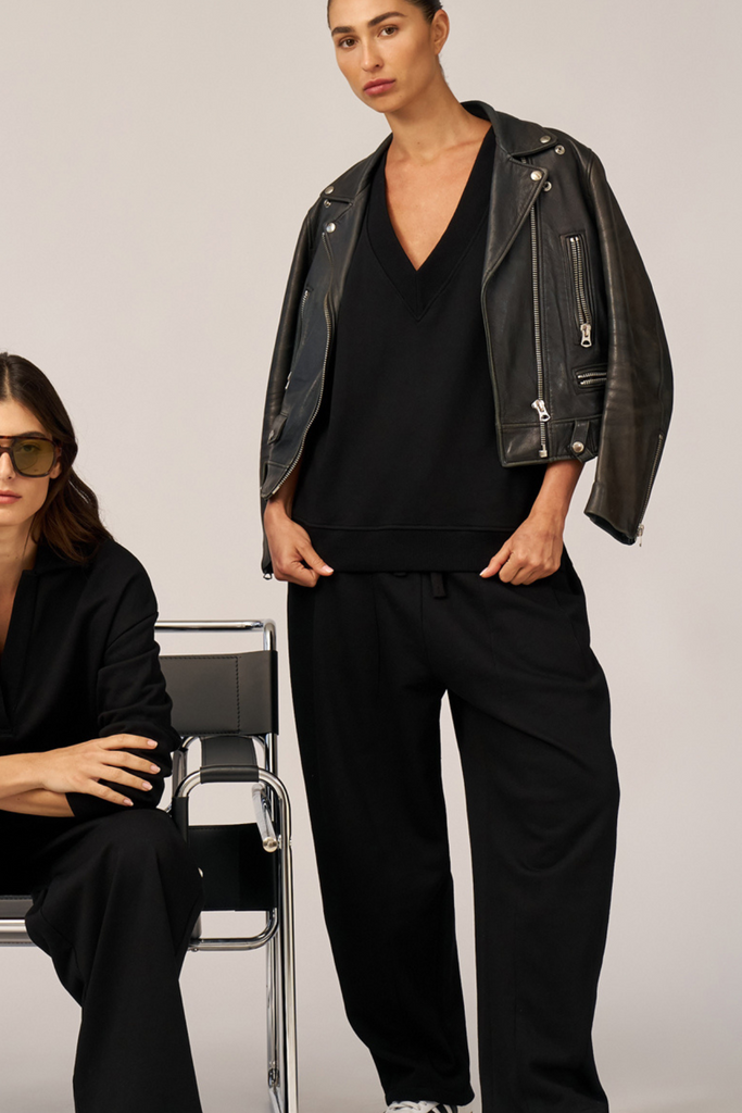 חולצה מבד פרנץ' טרי , מפתח וי עמוק בשילוב ריב
