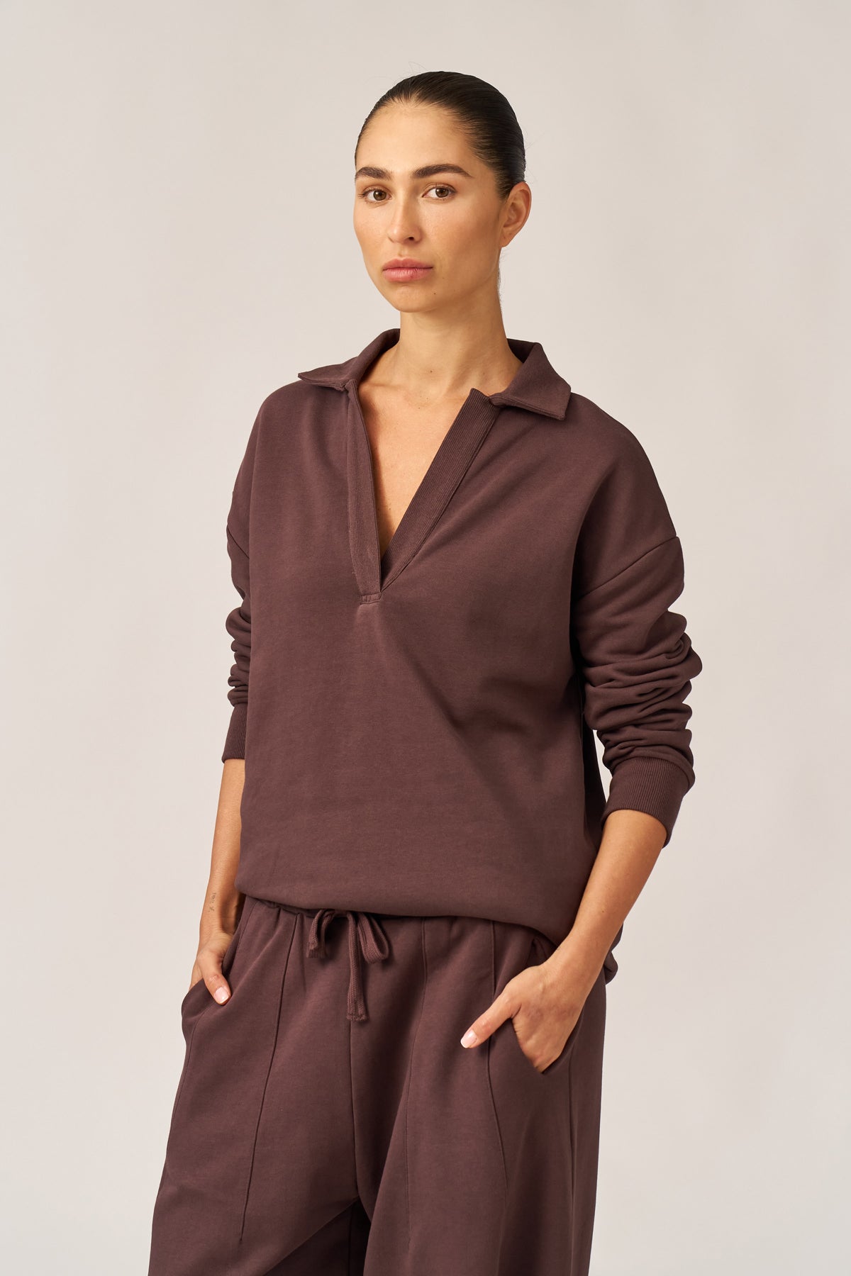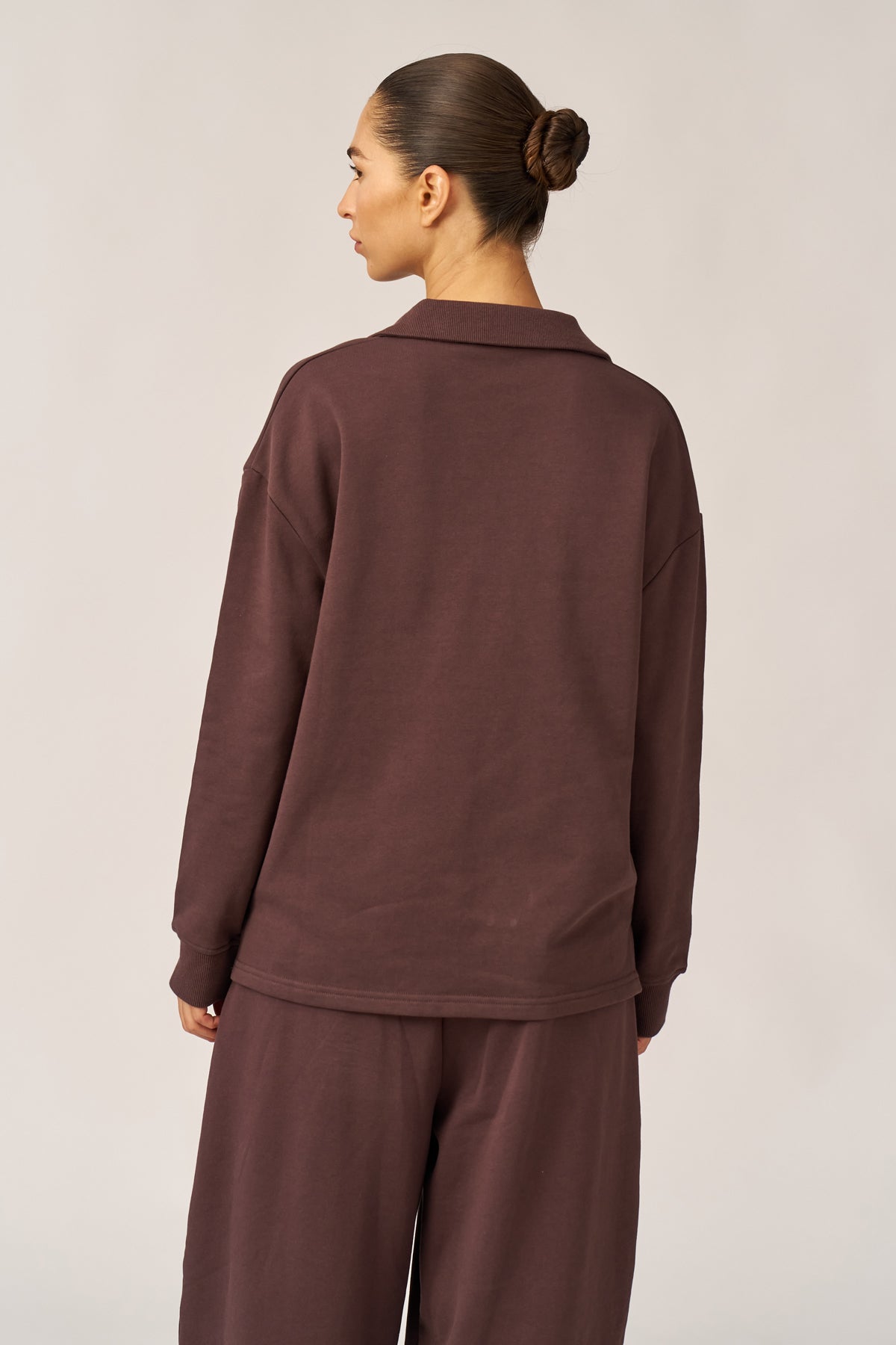 חולצת פולו מבד פרנץ' טרי בשילוב ריב