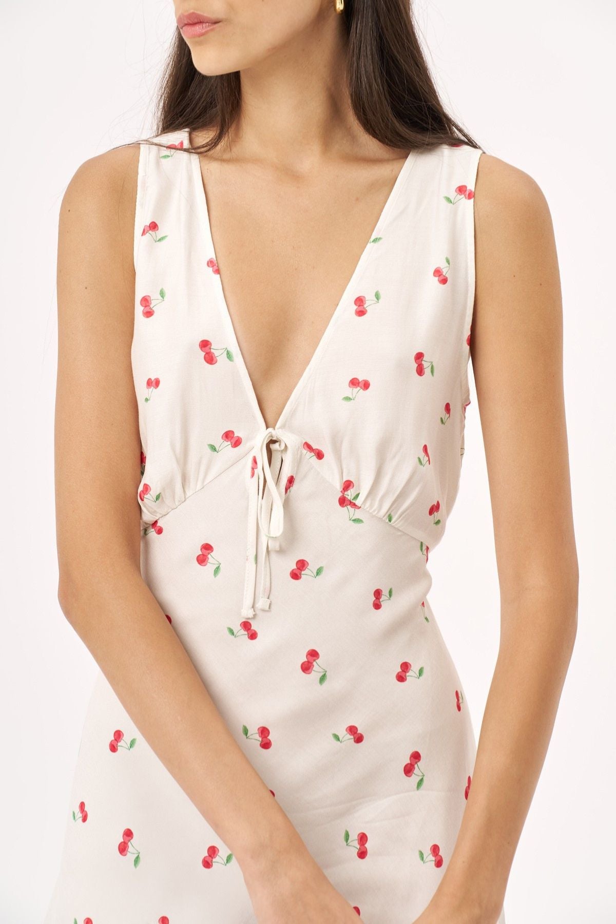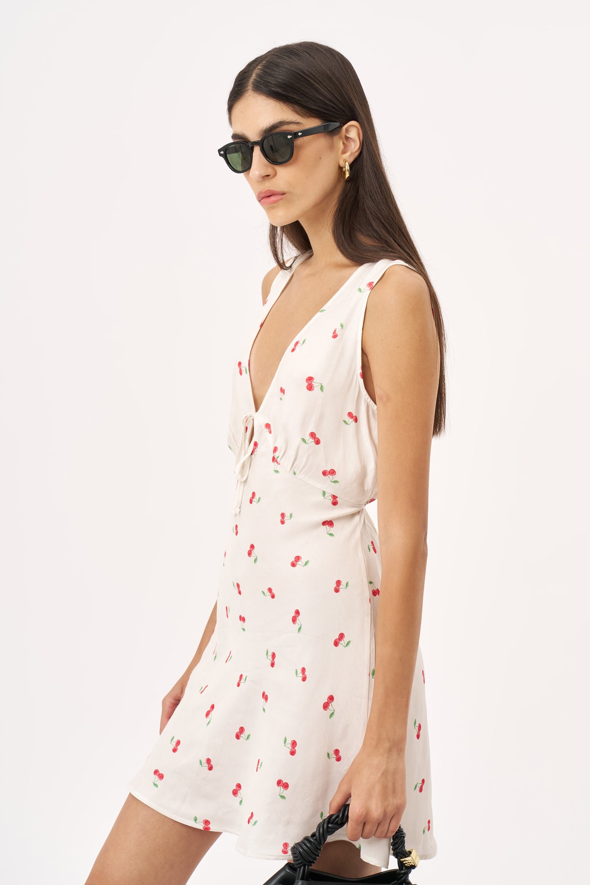 שמלה קצרה בהדפס דובדבנים רקע קרם
