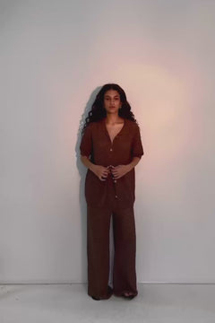 מכנסיים ארוכים בגזרה משוחררת מבד קרושה עם גומי במותן