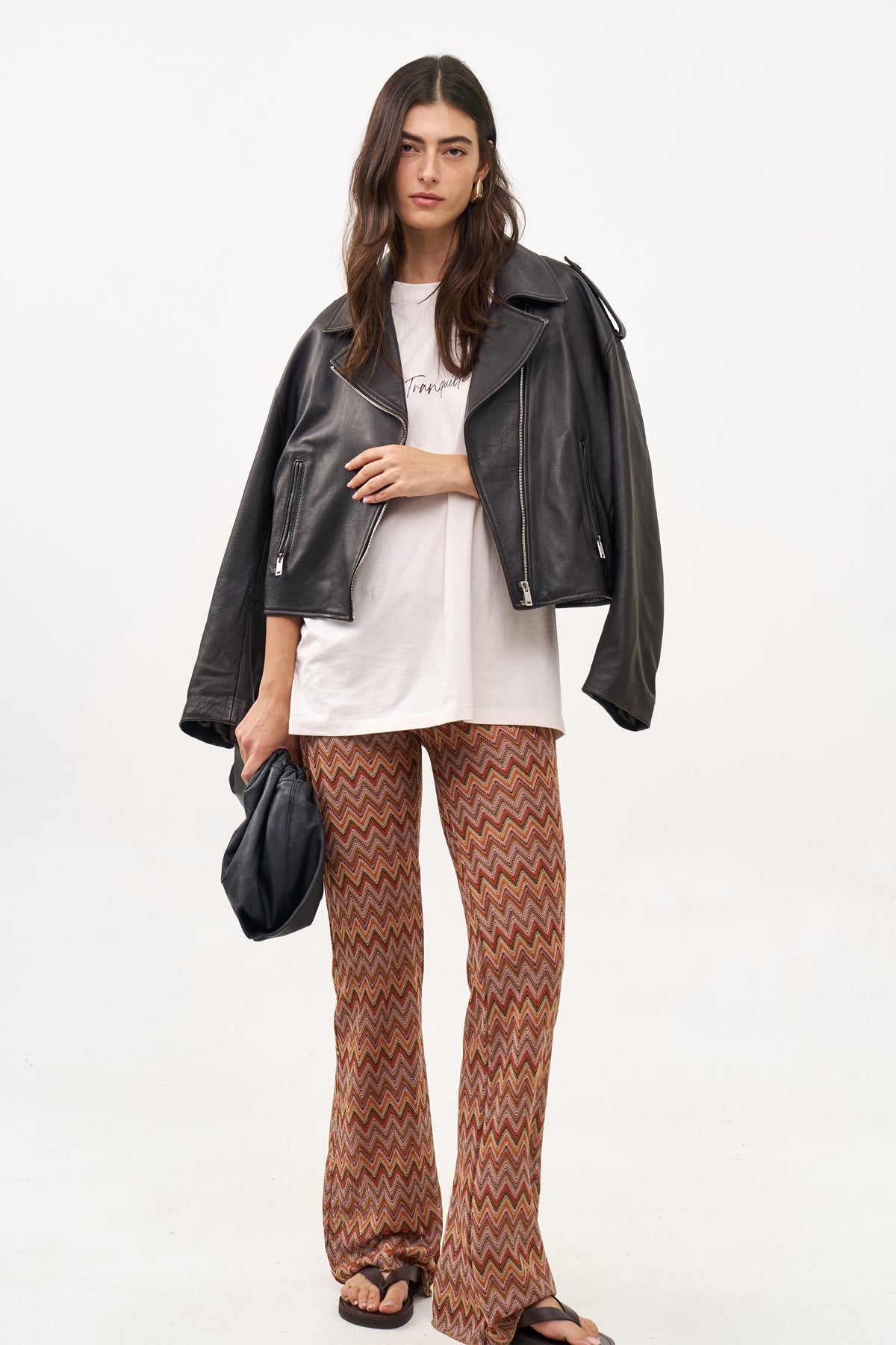 מכנסיים מתרחבים זיגזג חום