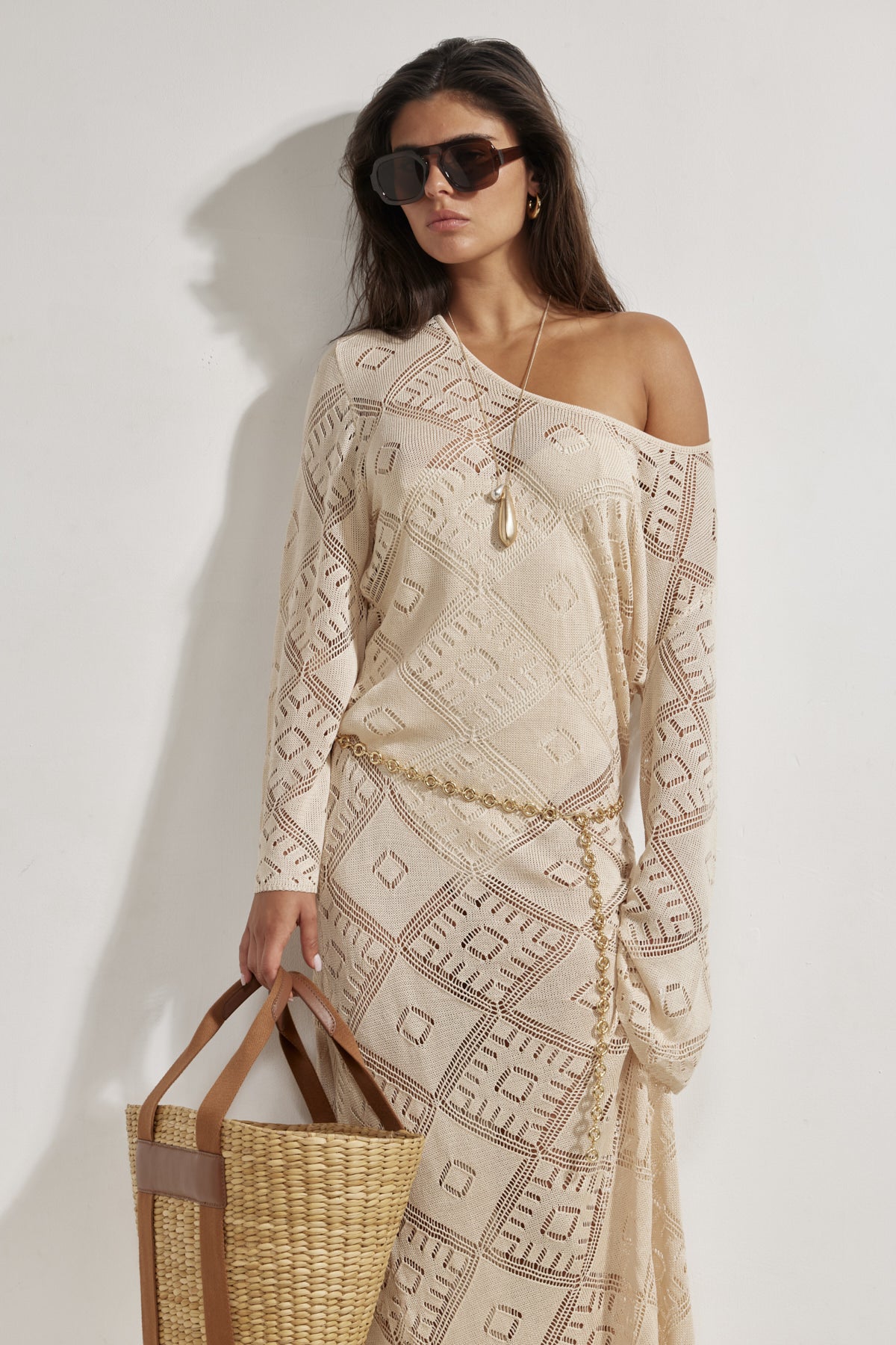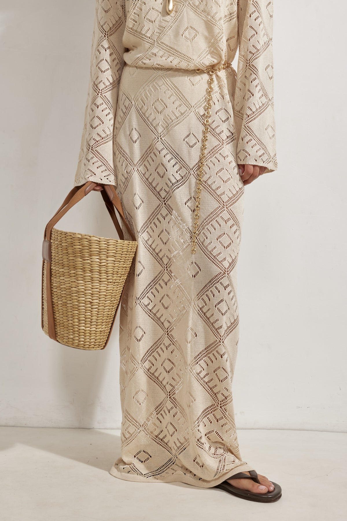 בגד חוף שמלה קרושה מקסי בז'