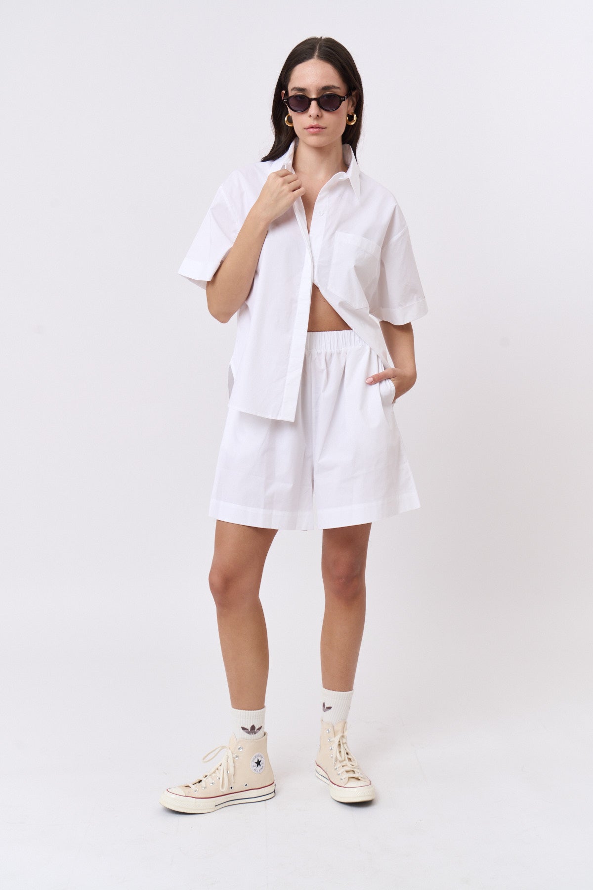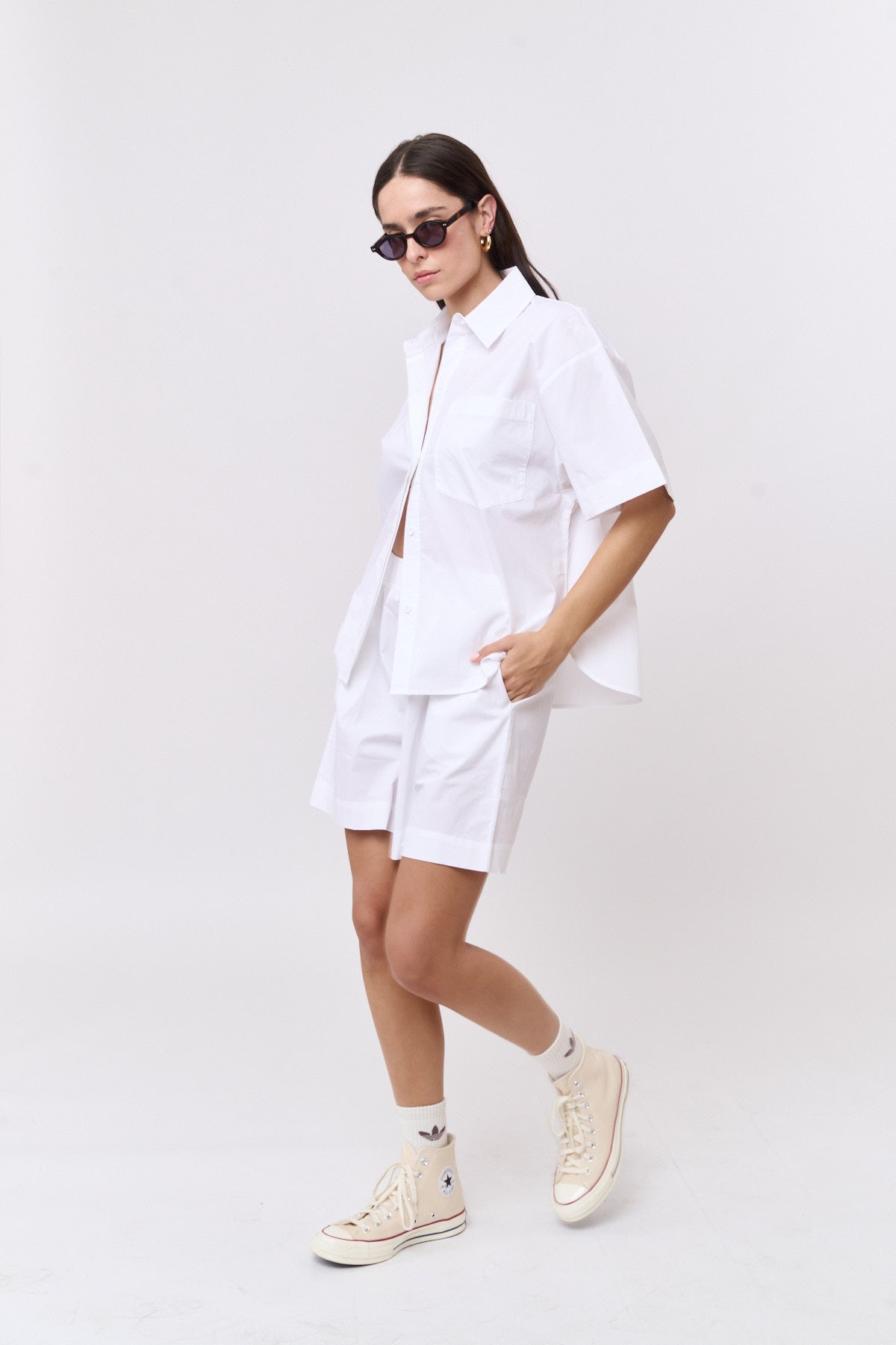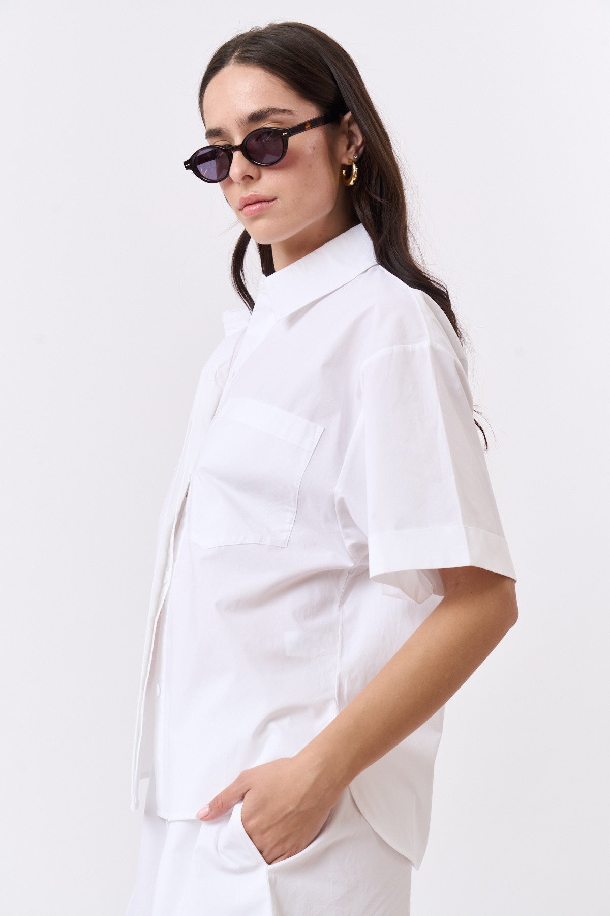 חולצה מכופתרת פופלין לבן