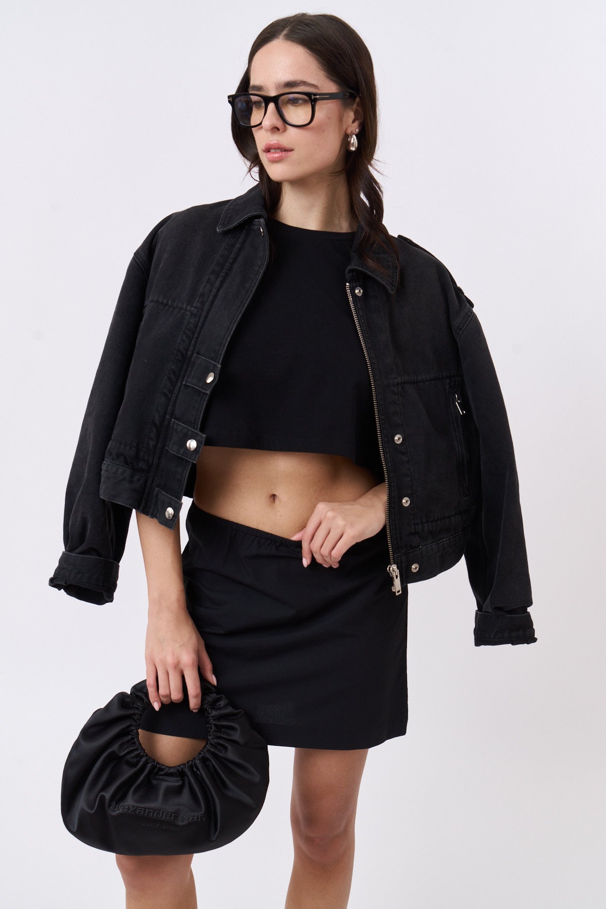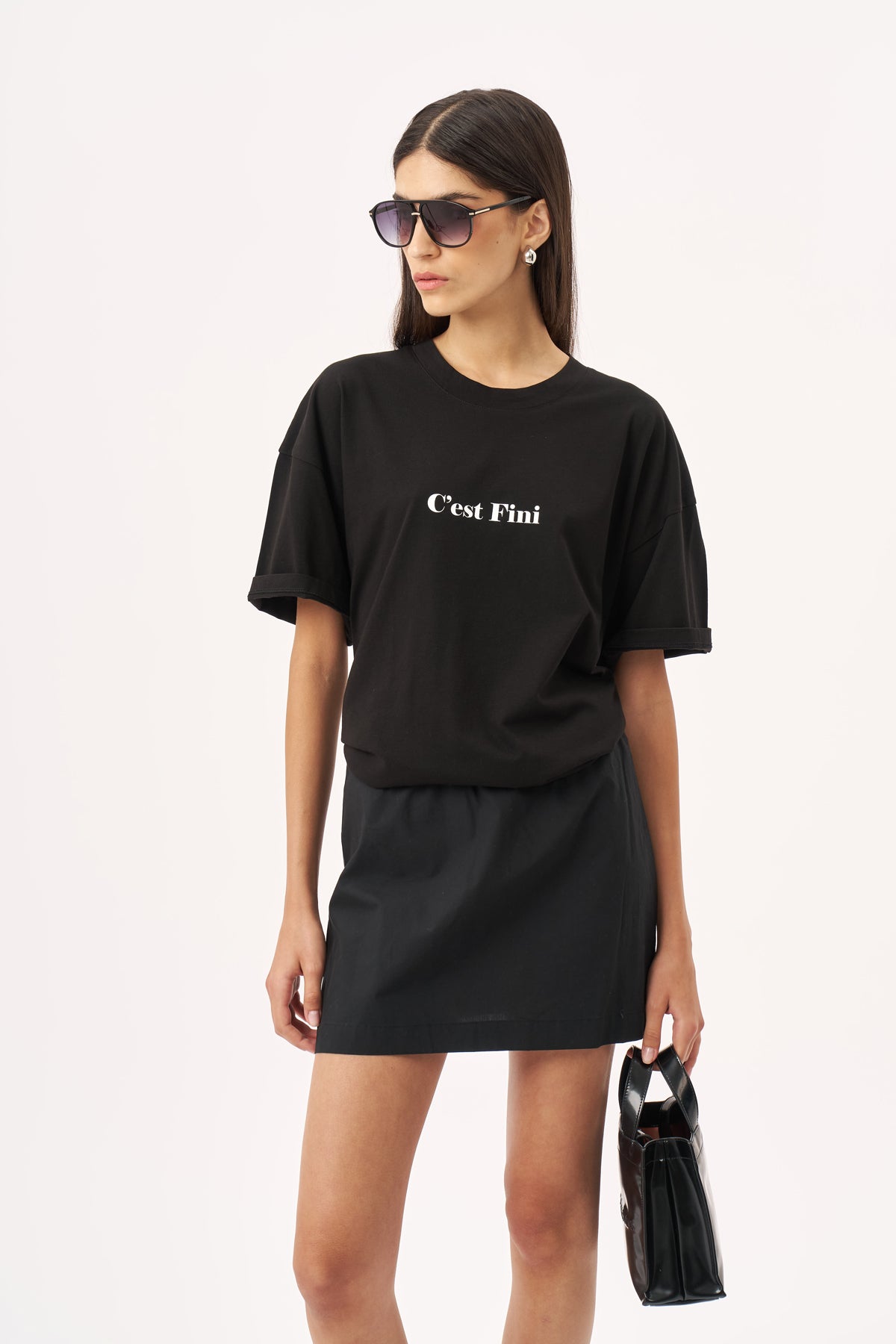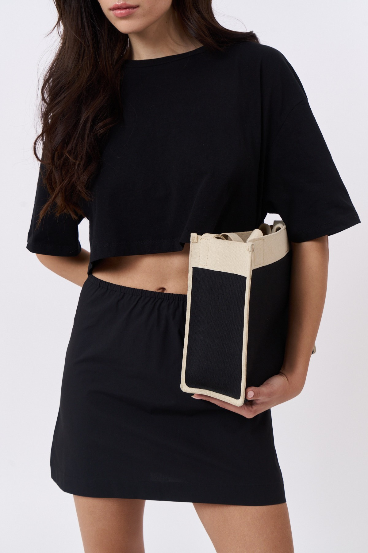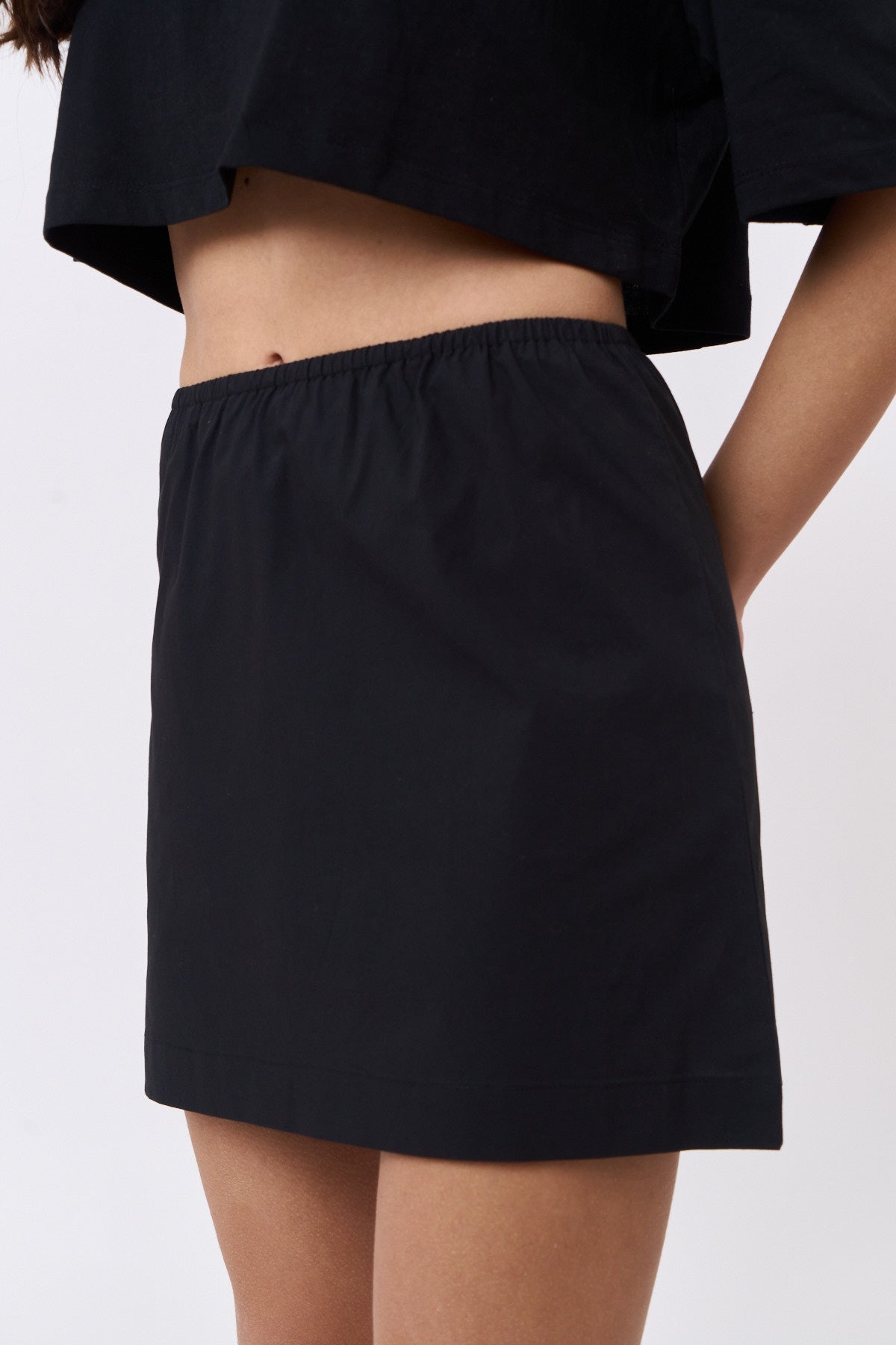 סטרפלס / חצאית קצרה פופלין שחור