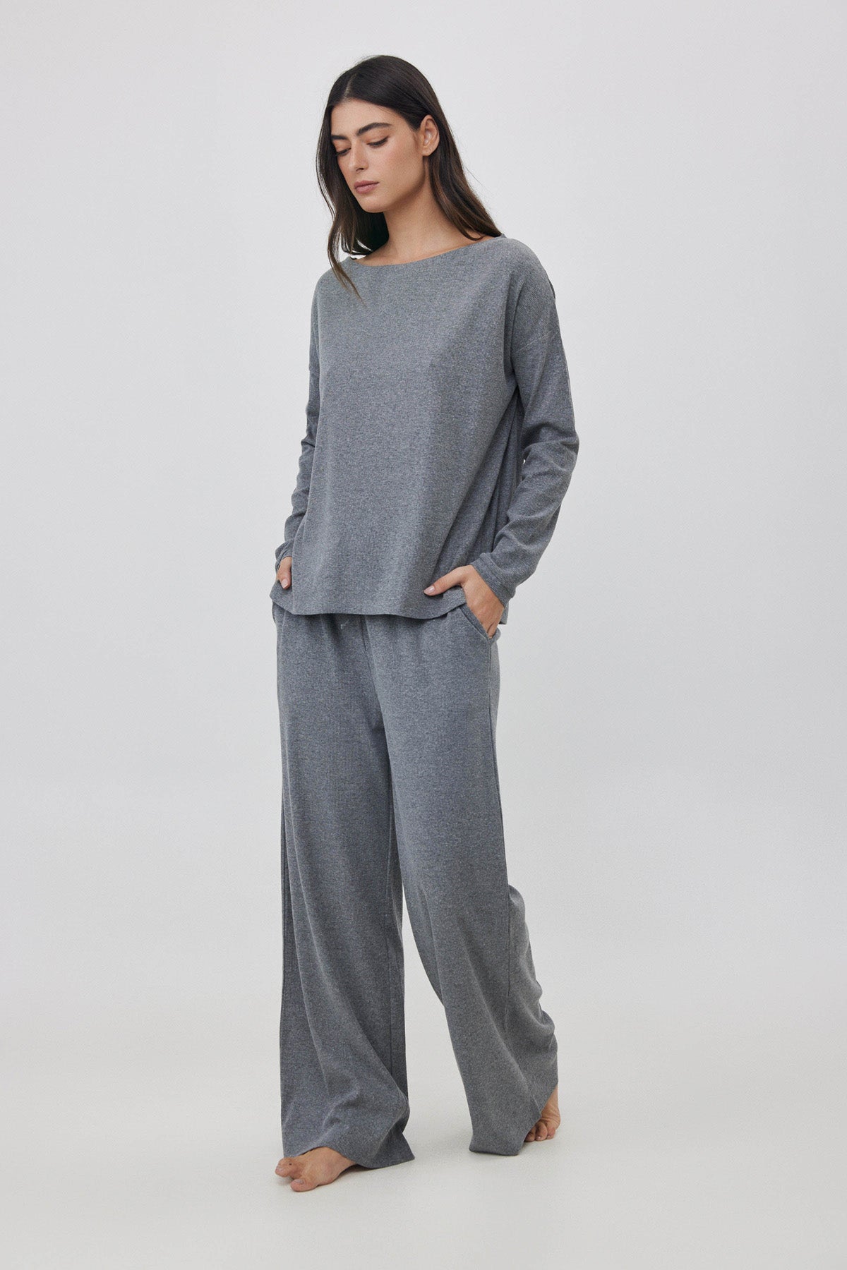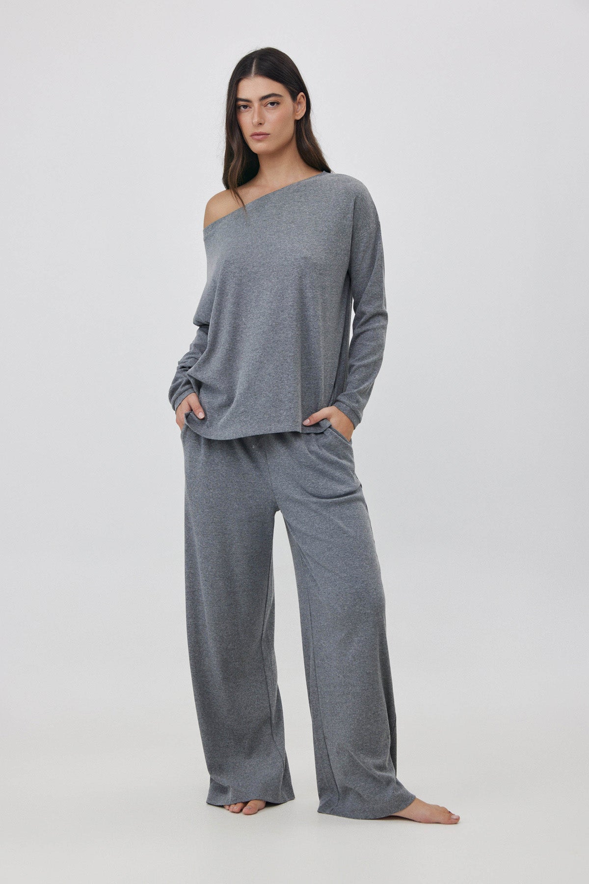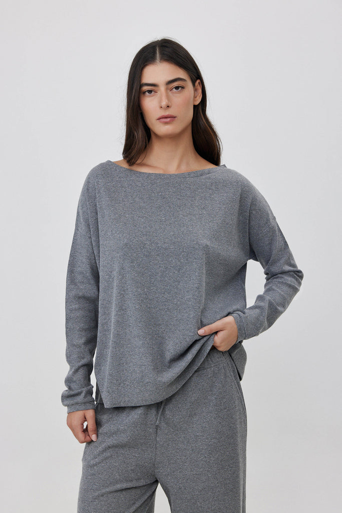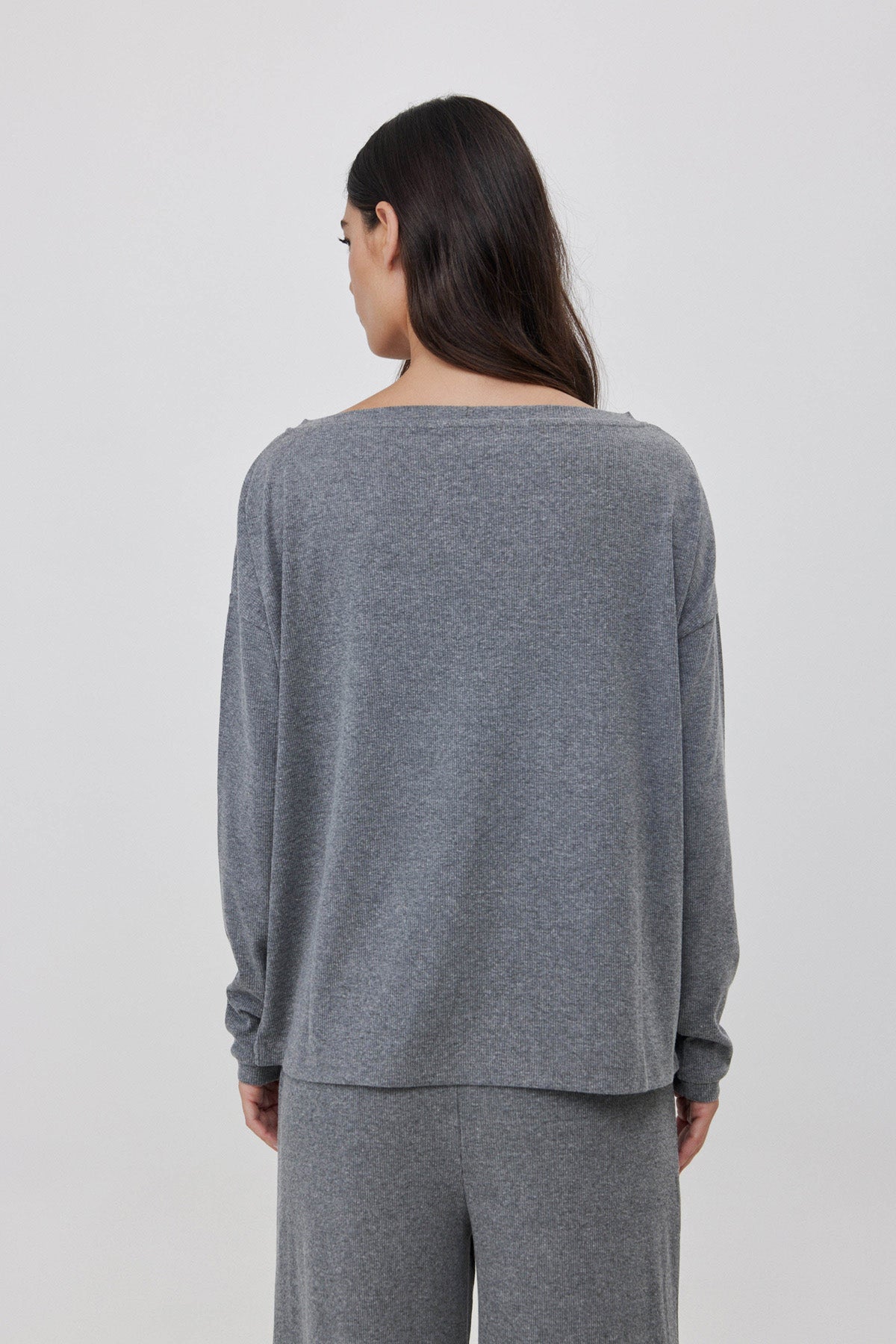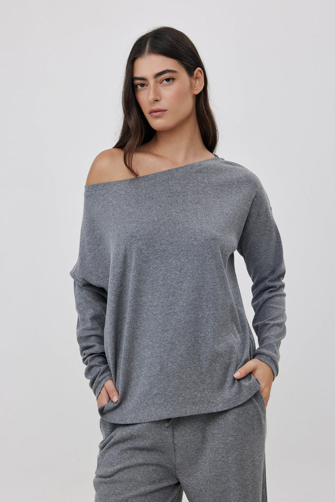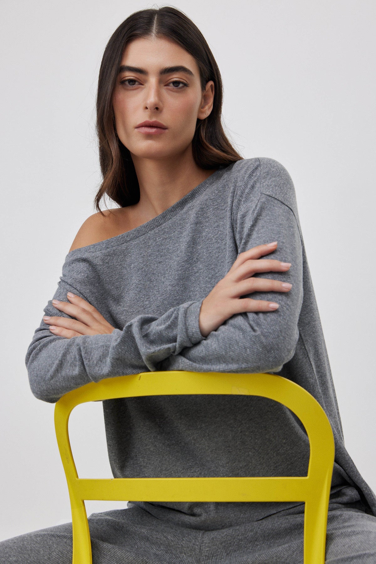 חולצת אוף-שולדר ריב אפור מלאנג'