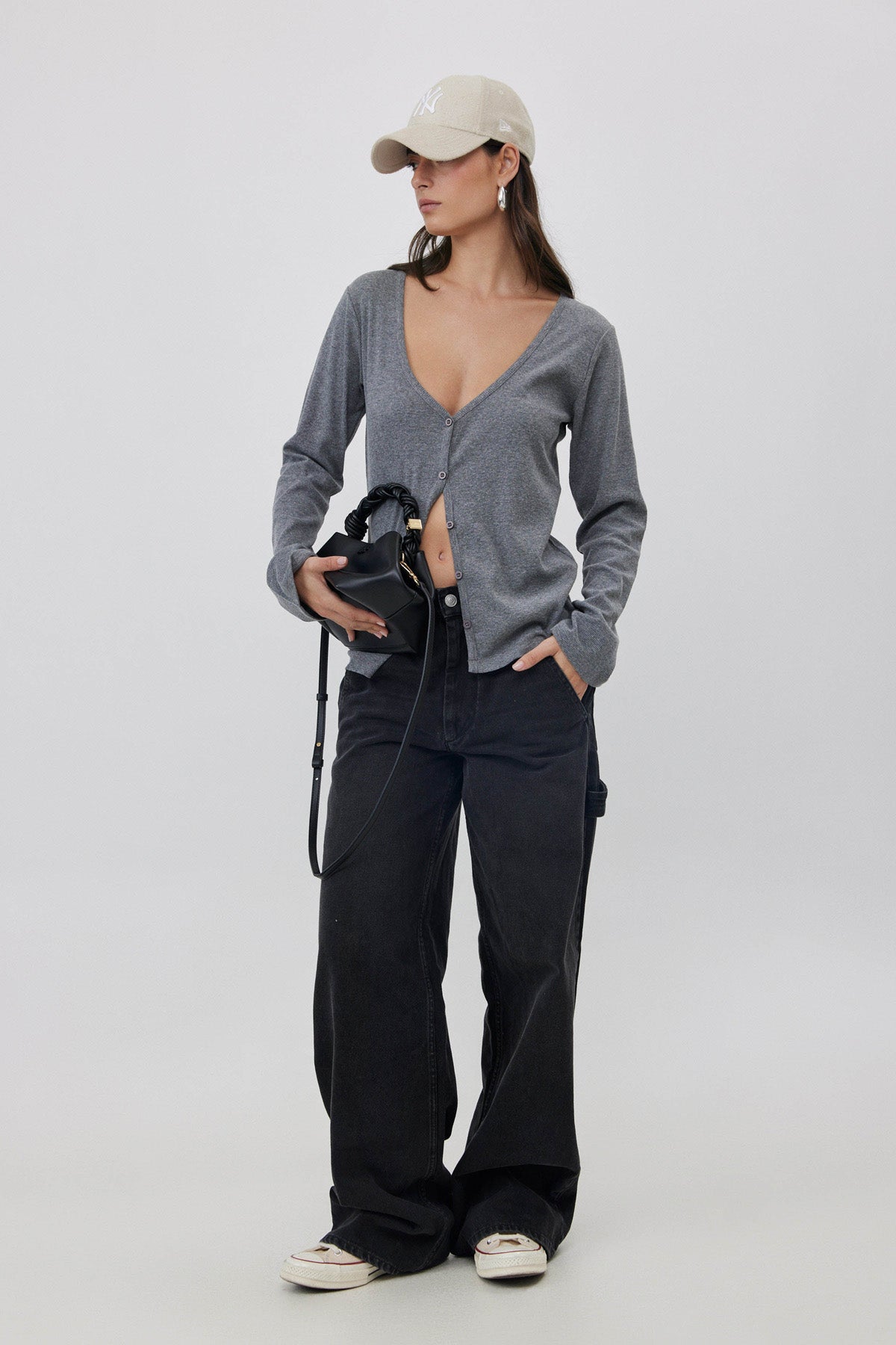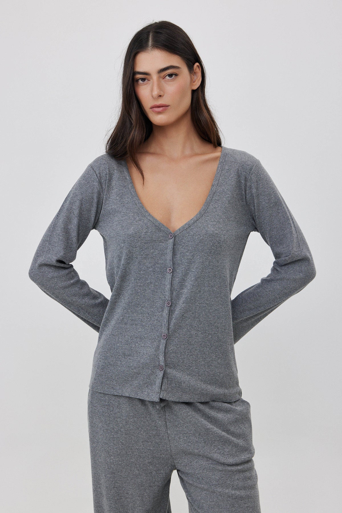 קרדיגן קצר מבד ריב ,שרוולים ארוכים, כפתורים בחזית