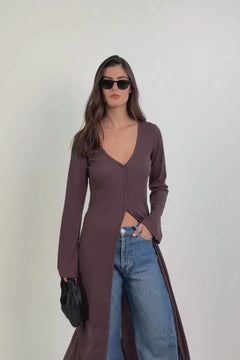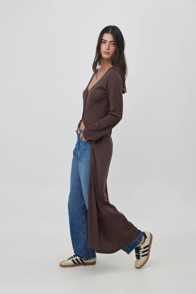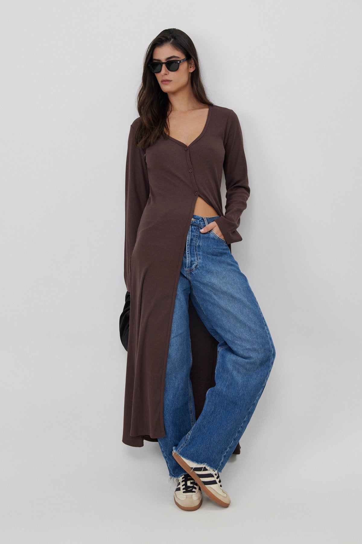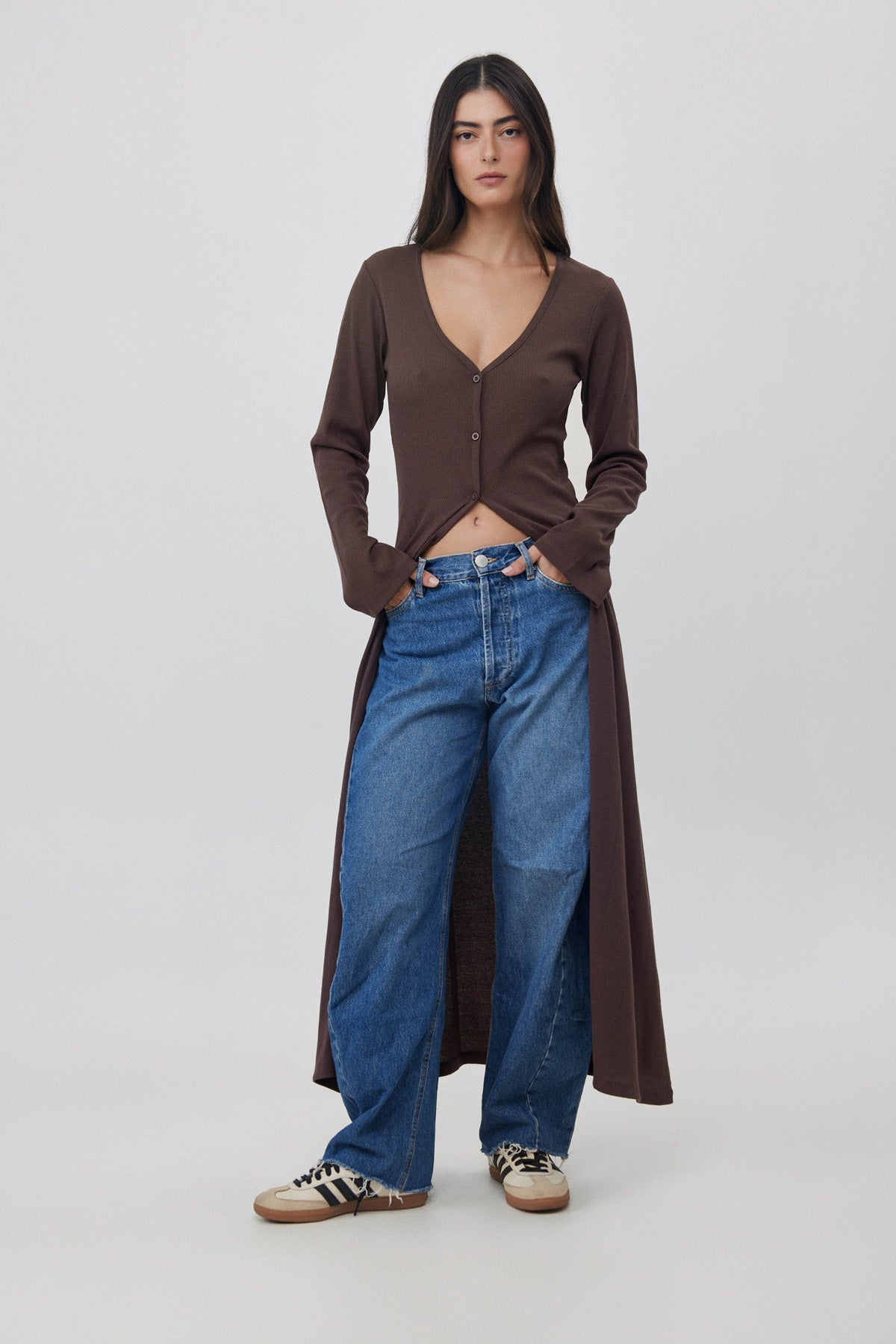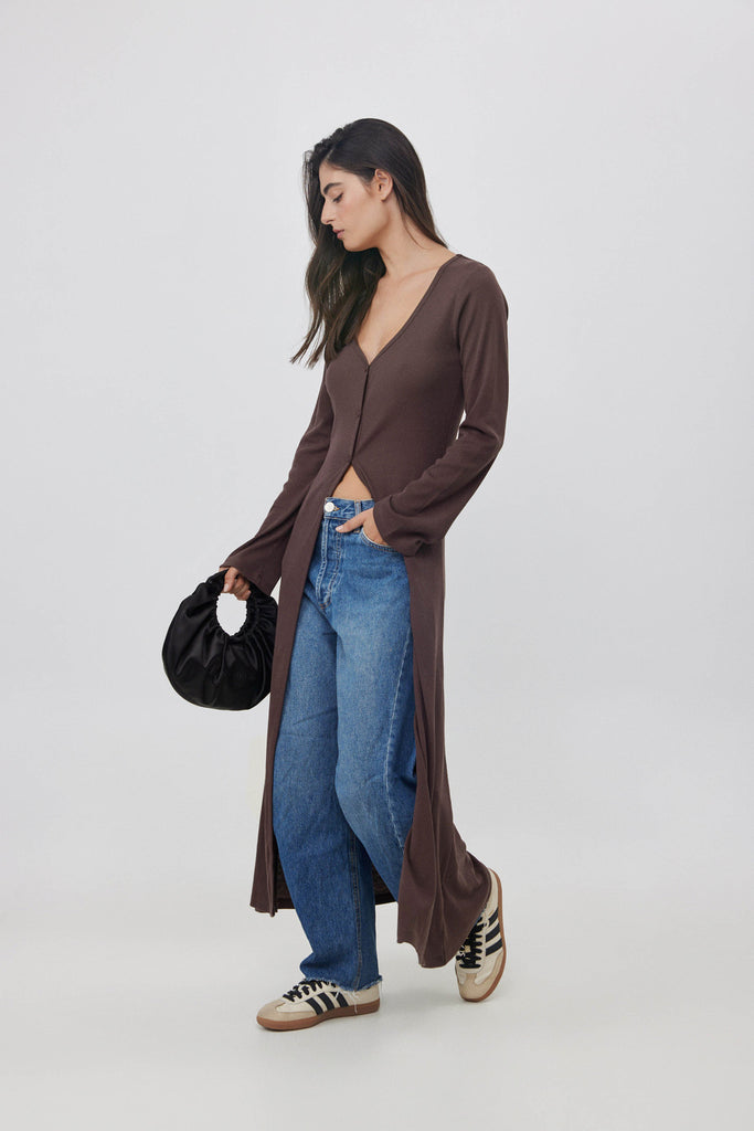 קרדיגן ארוך מבד ריב ,שרוולים ארוכים, 4 כפתורים בחלקו העליון