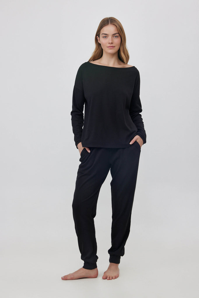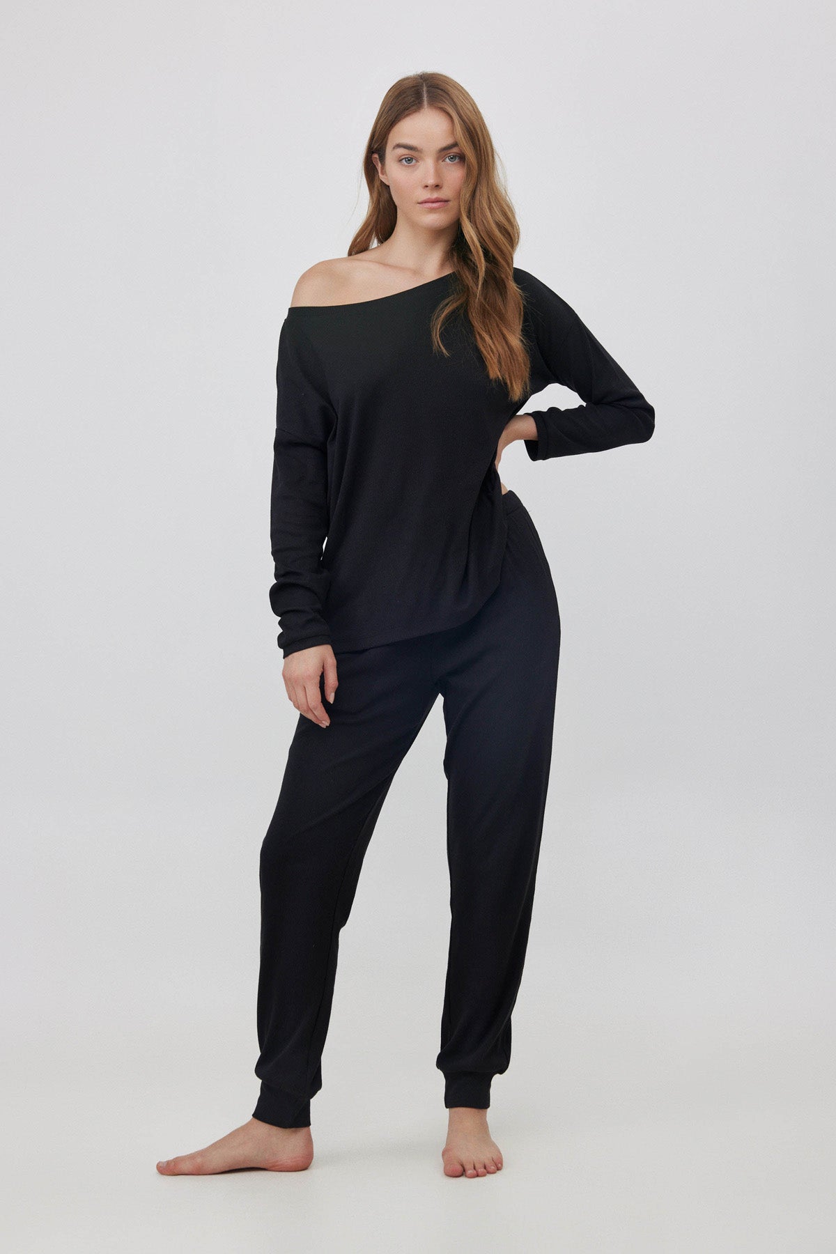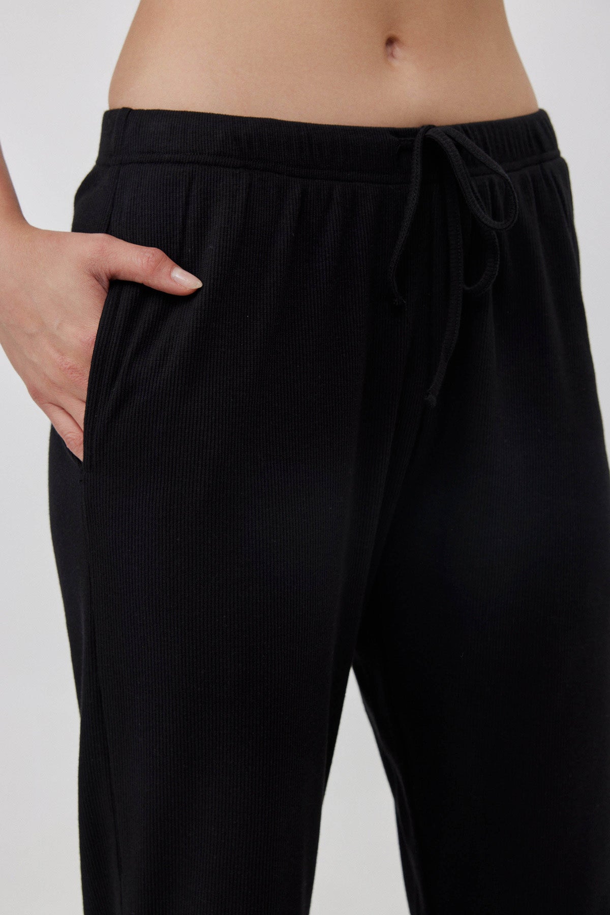 מכנסיים ארוכים בסיומת מנג'ט מבד ריב